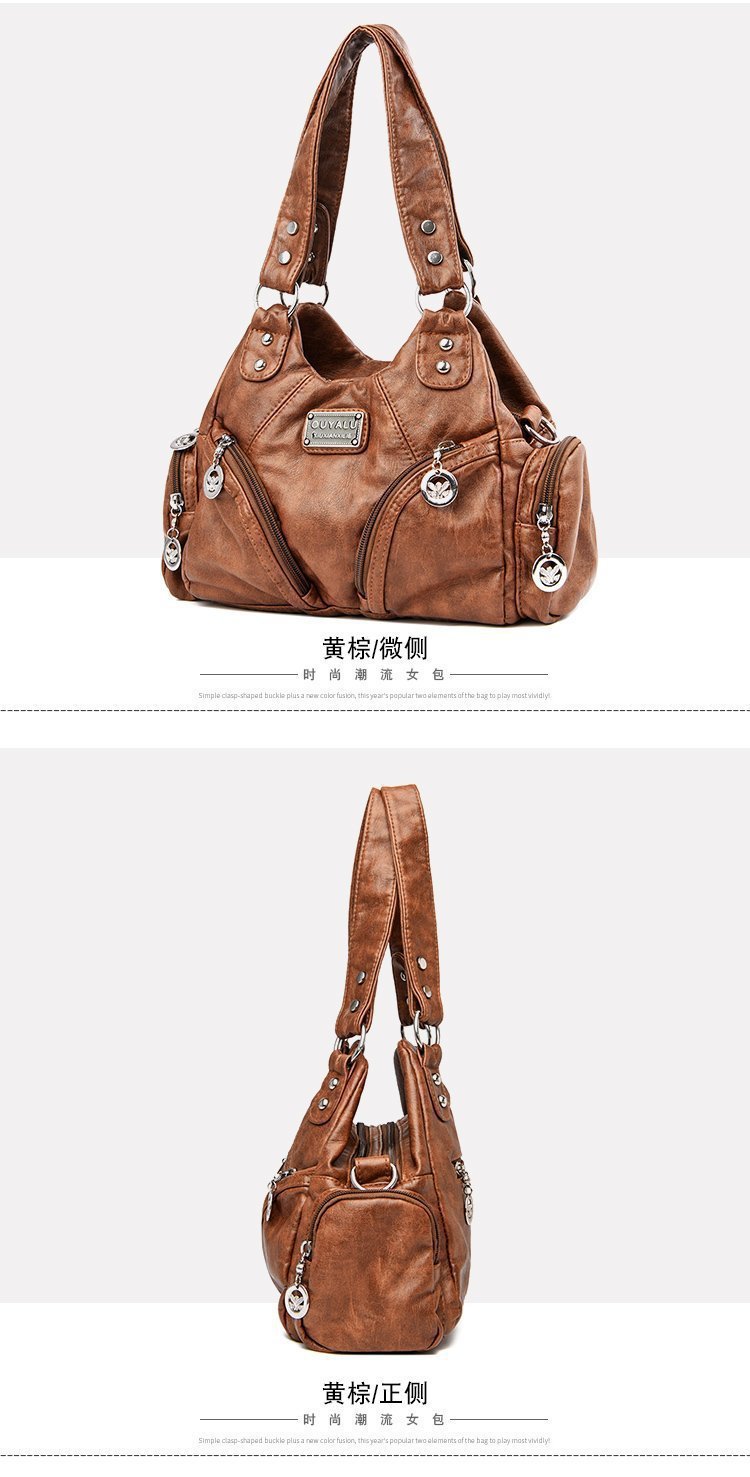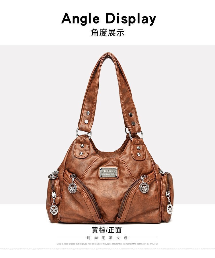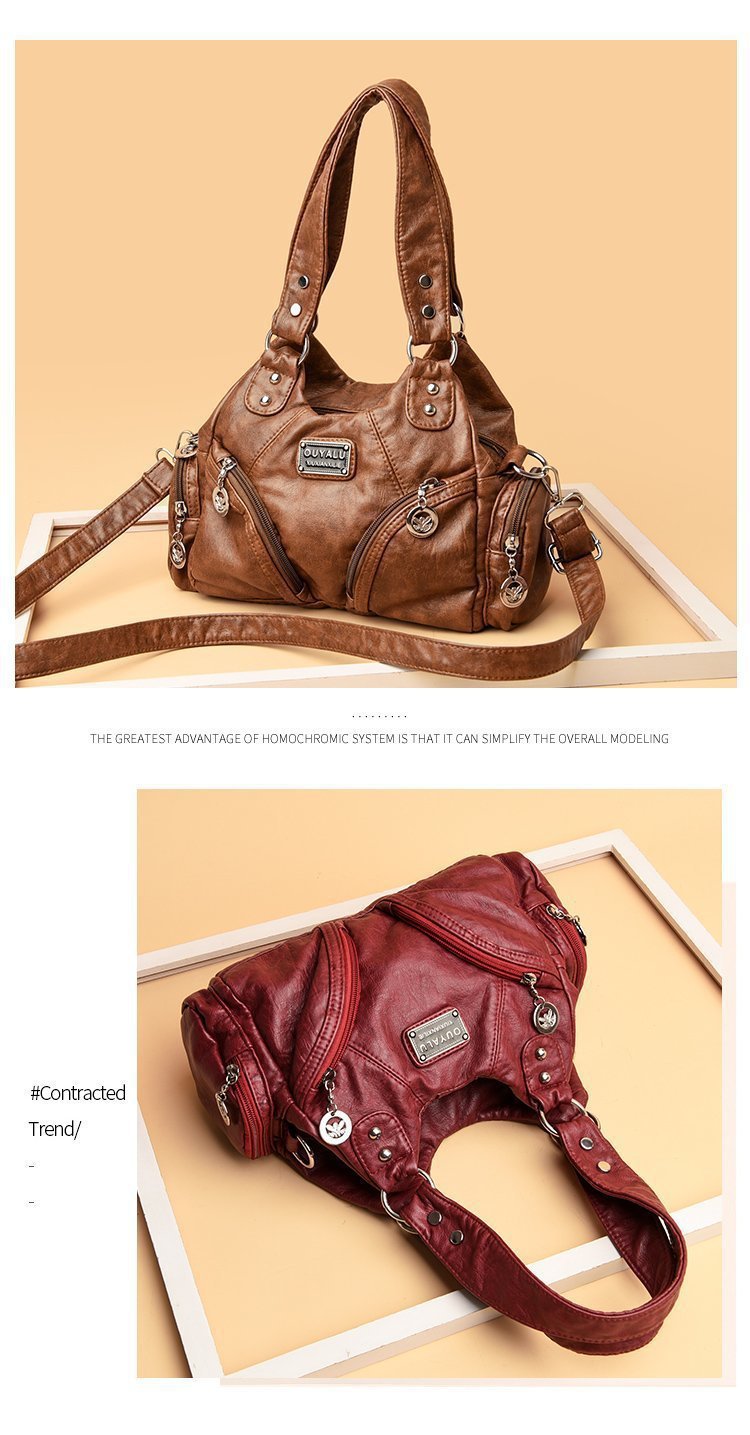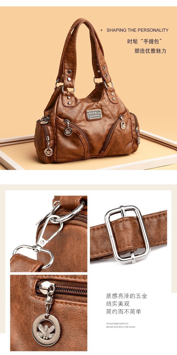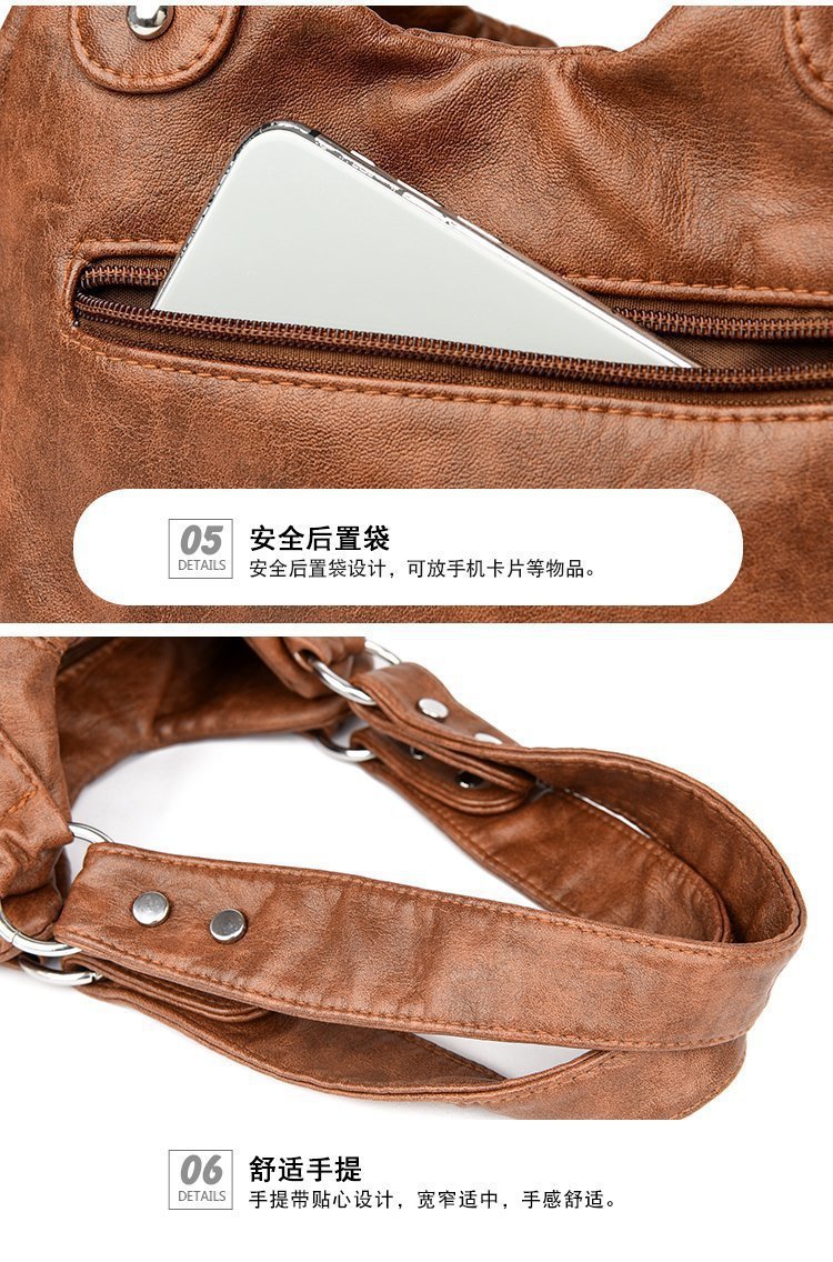 국경 간 복고풍 소프트 가죽 오토바이 가방 2024 새로운 유럽과 미국 패션 슬렁 숄더백 재고 아마존 품질의 여성 가방스토어 가기