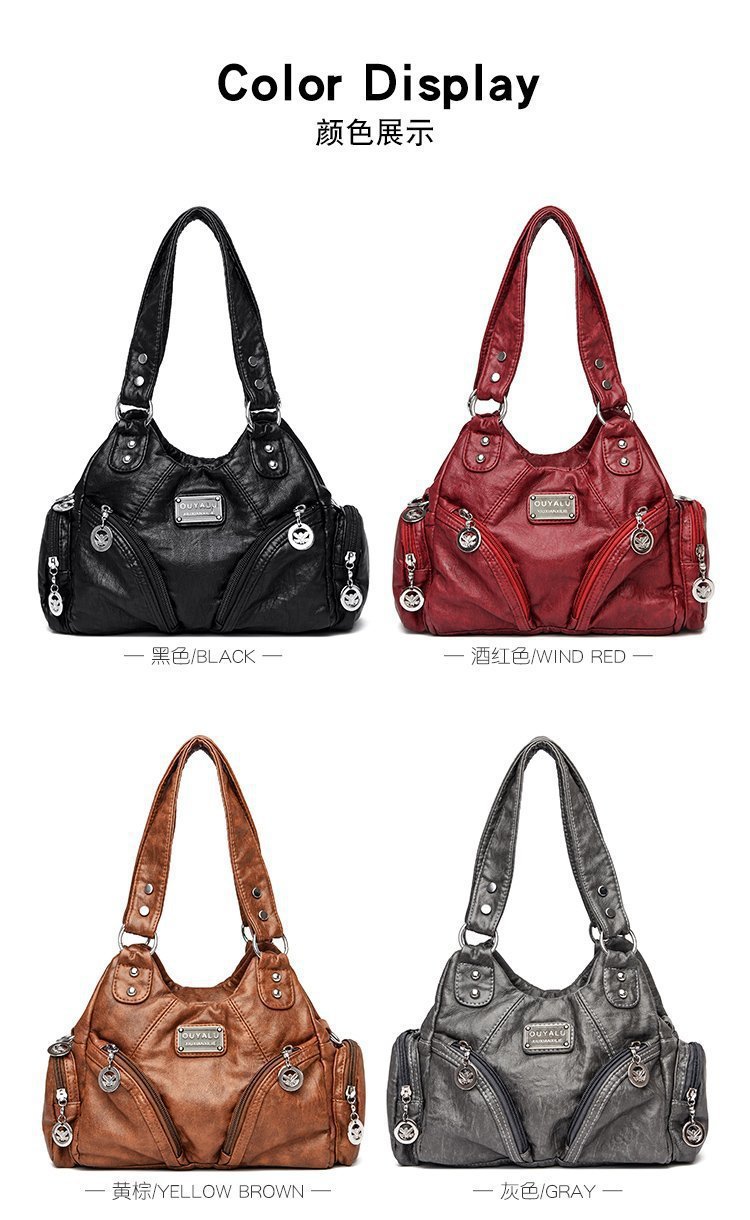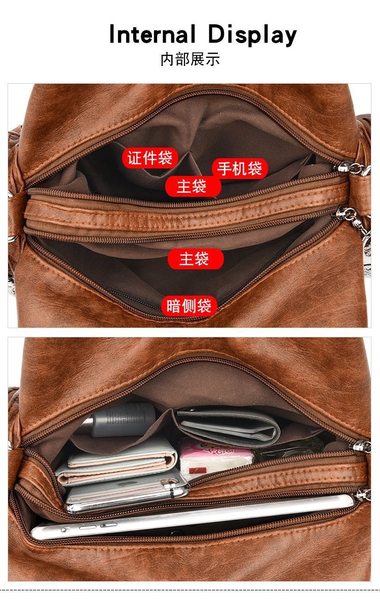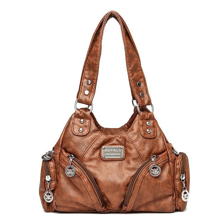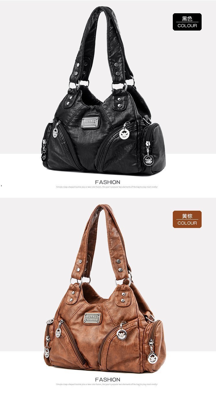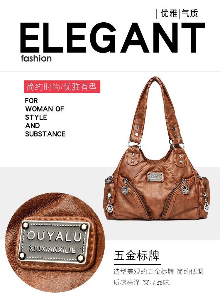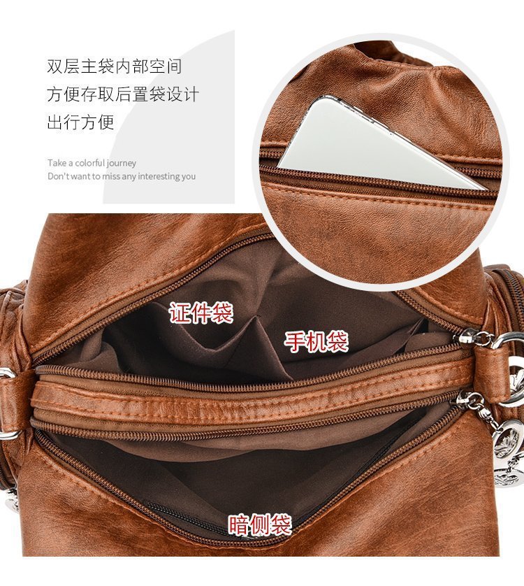 국경 간 복고풍 소프트 가죽 오토바이 가방 2024 새로운 유럽과 미국 패션 슬렁 숄더백 재고 아마존 품질의 여성 가방스토어 가기