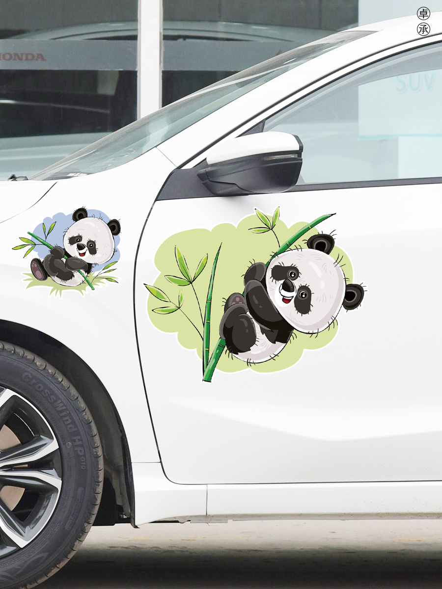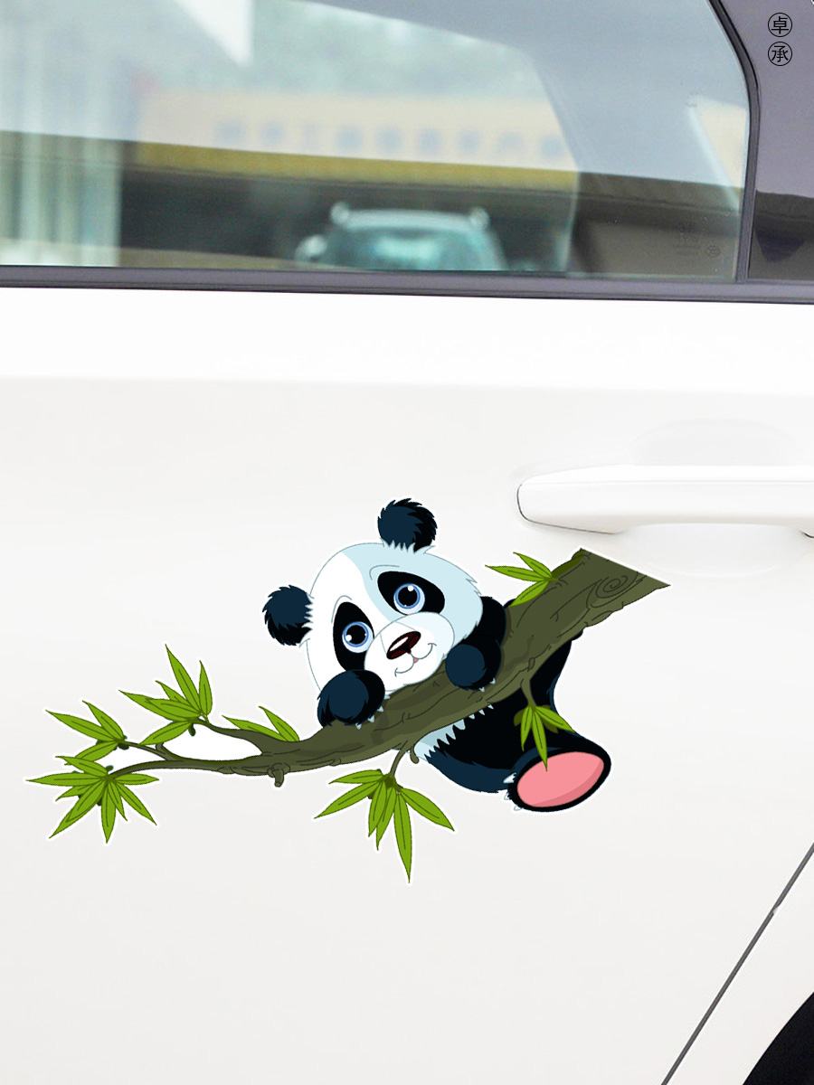 Zhuocheng 자동차 스티커 스크래치 커버 만화 귀여운 팬더 자동차 스티커 3D 방수 전기 자동차 스티커 Heng Ming
