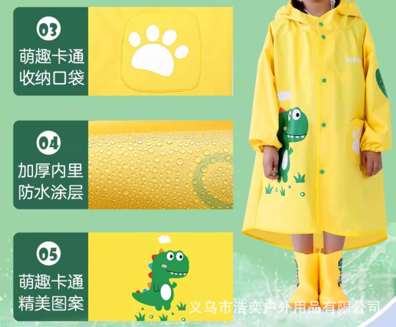 소년과 소녀를 위한 어린이 만화 비옷, 공룡 방수 의류, 두껍고 내마모성, 학교용 특수 도매 어린이 판초, 휴대용스토어 가기