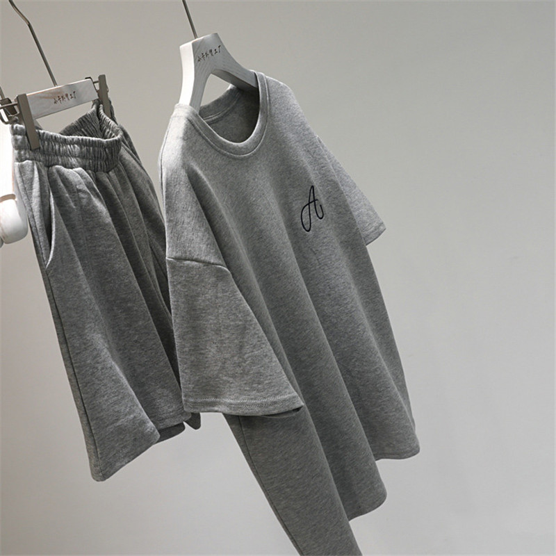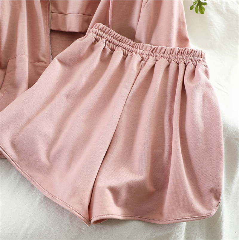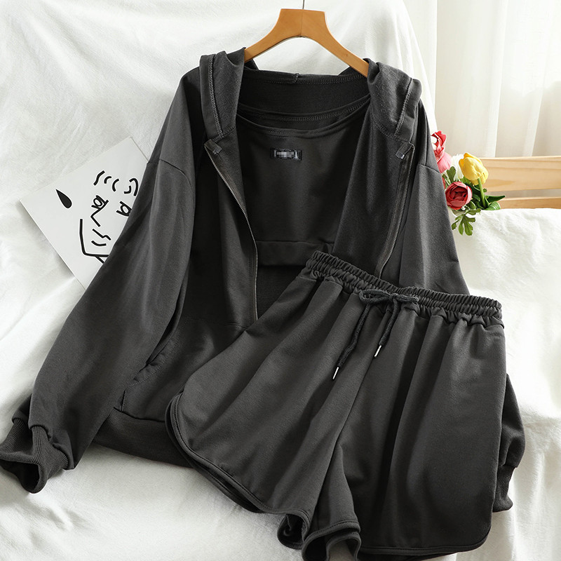 세련된 홍콩 스타일 스포츠 세트 여자 여름 새로운 한국 스타일 루즈 조끼 후드 스웨터 재킷 반바지 3 Heng Ming