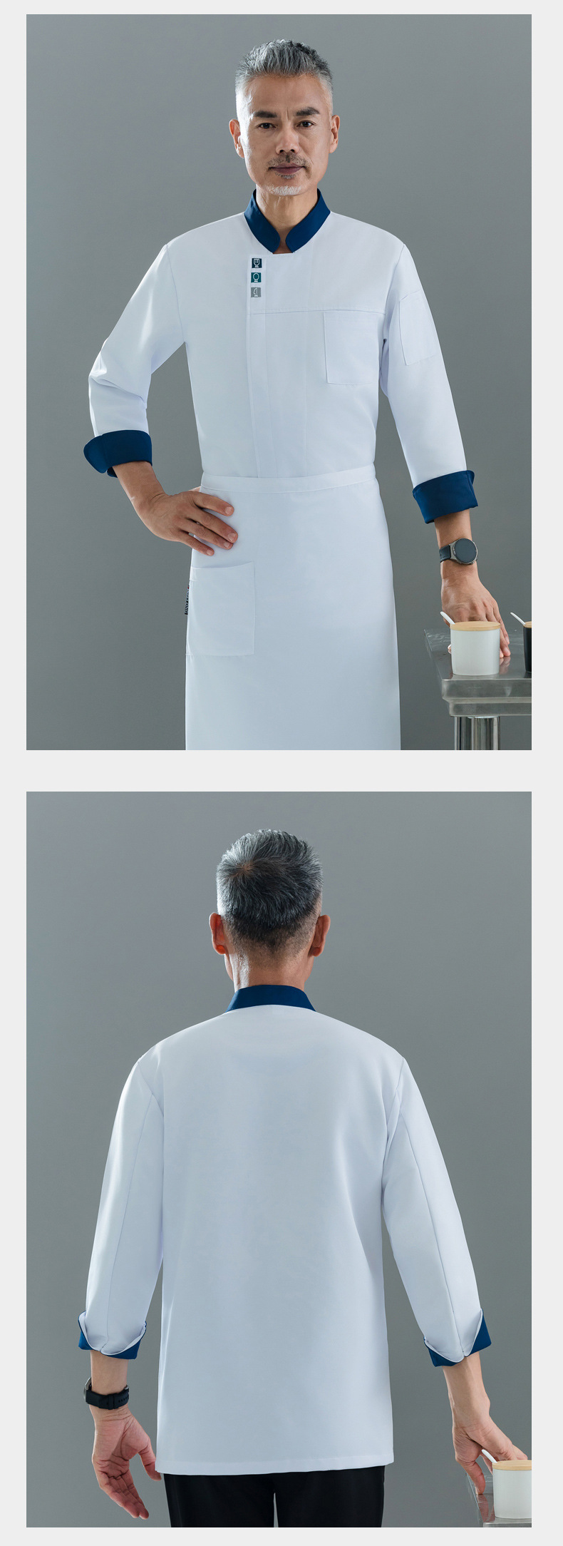 时尚潮流高端灰色厨师工作服长袖秋冬季高档厨师服装厨衣西餐logo