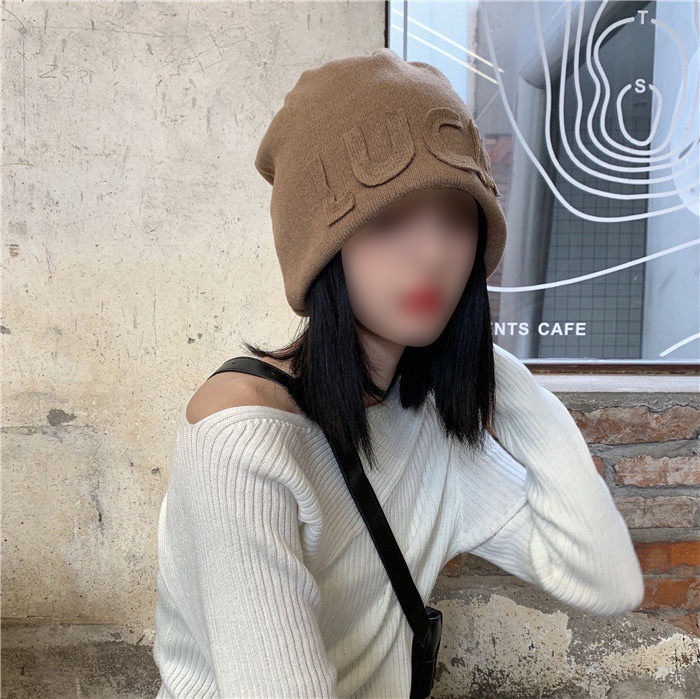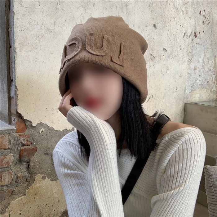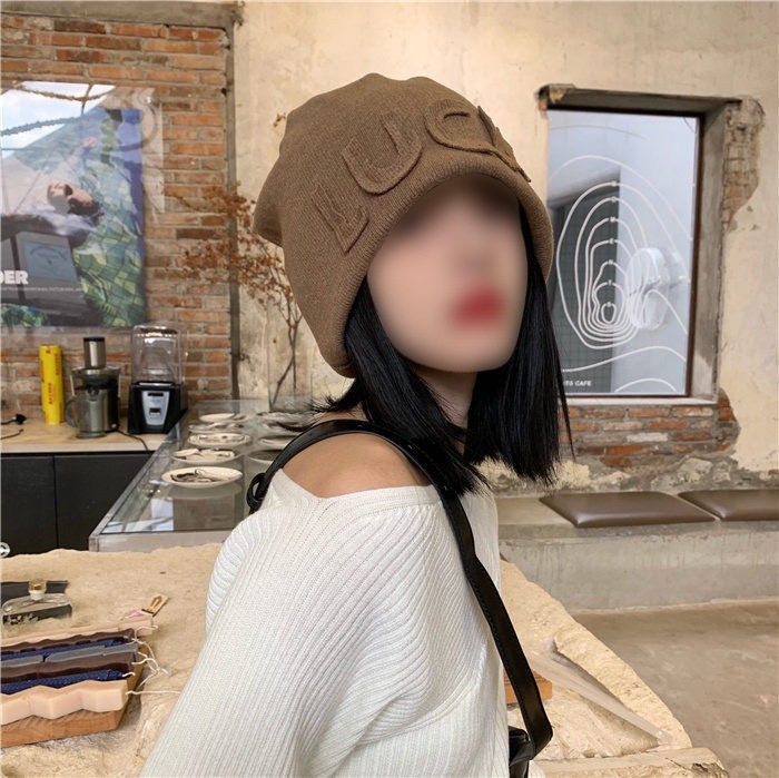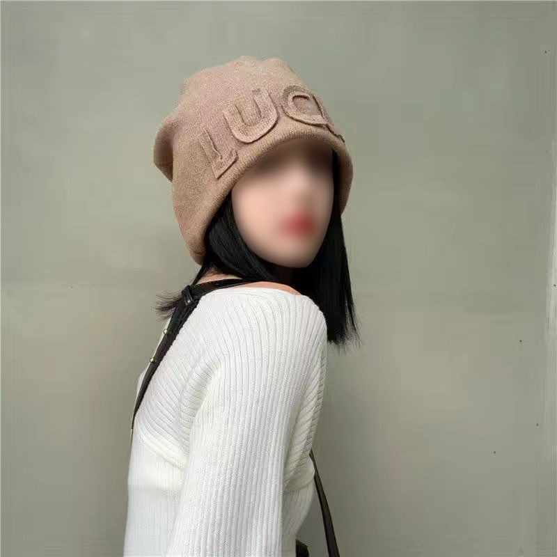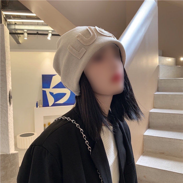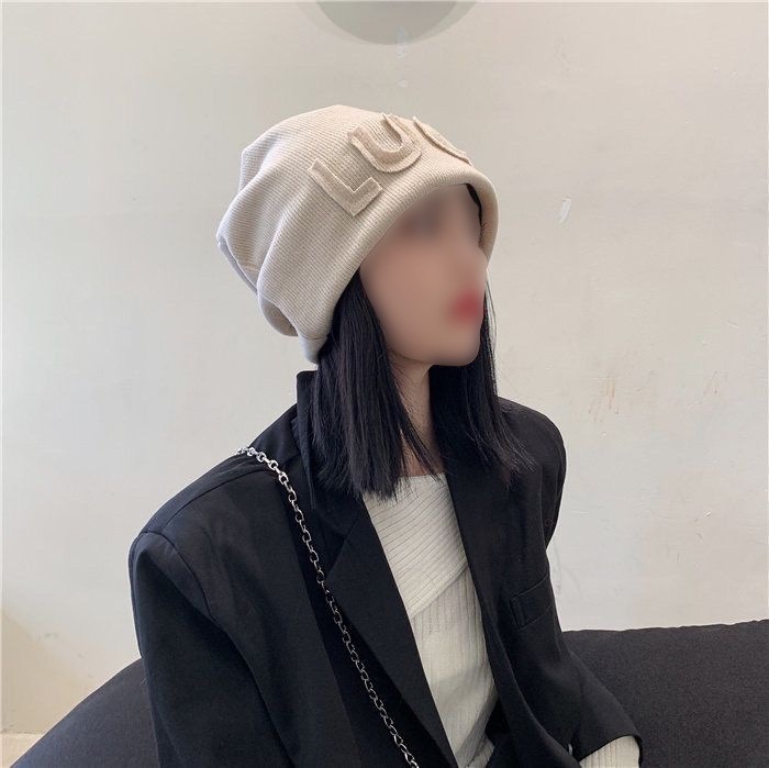 2024 일본식 가을 겨울 얼굴 작은 편지 힙 캡 여성 패션 귀 보호 캡 큰 머리 와이 빈티지 니트스토어 가기