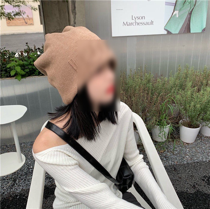 2024 일본식 가을 겨울 얼굴 작은 편지 힙 캡 여성 패션 귀 보호 캡 큰 머리 와이 빈티지 니트