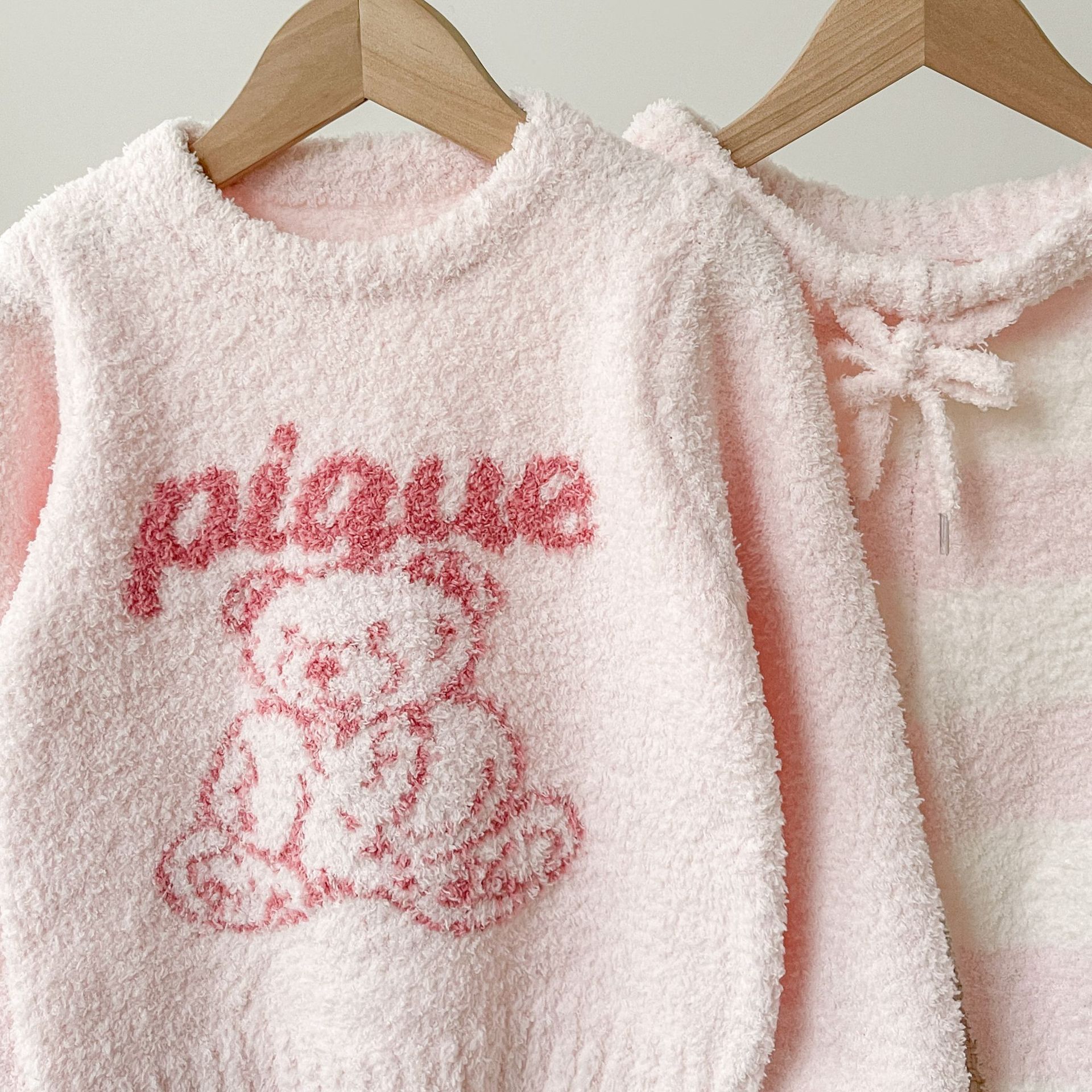 24 가을과 겨울 새로운 gp 부모-자식 남녀 소프트 하프 벨벳 어린이 만화 테디 홈 의류 잠옷 세트