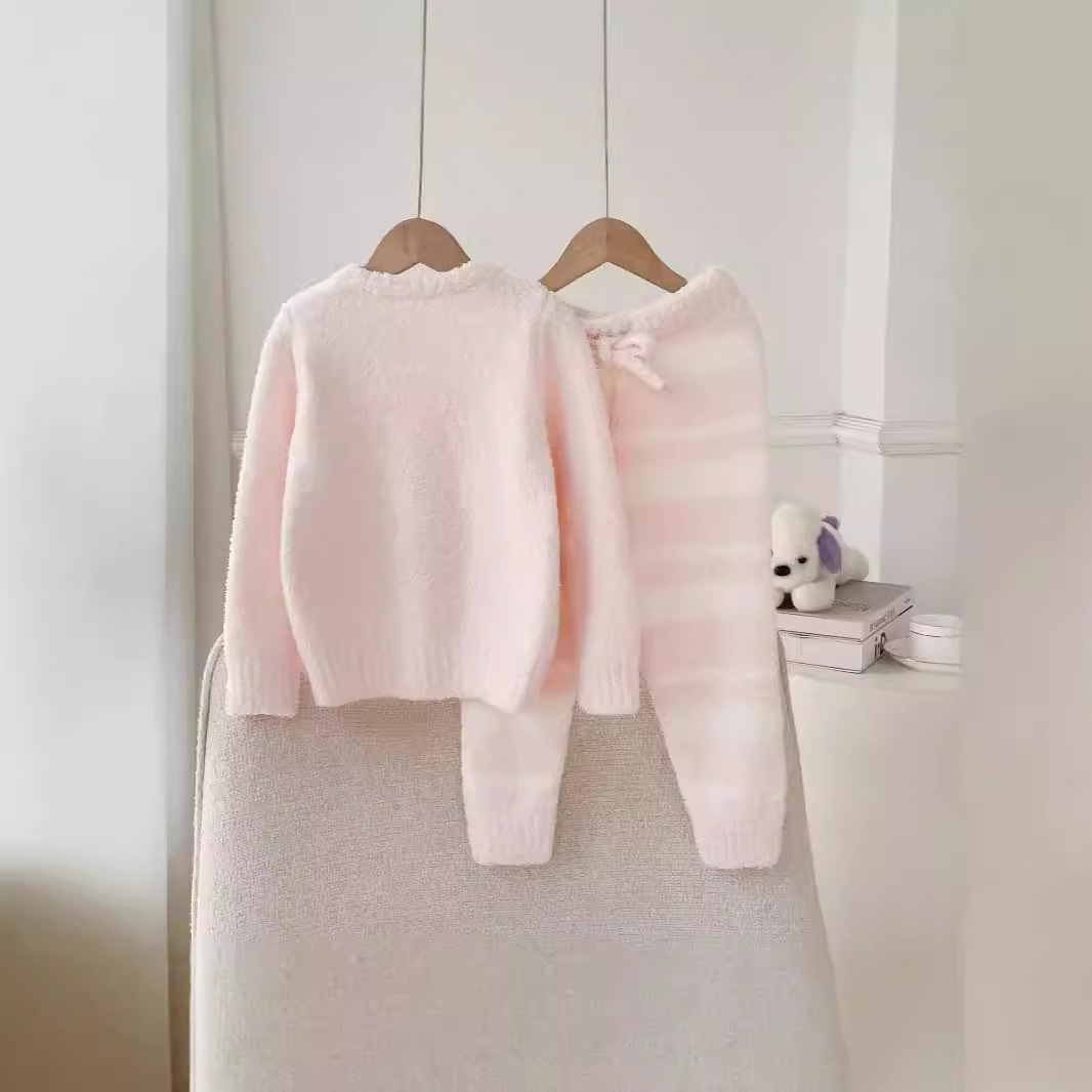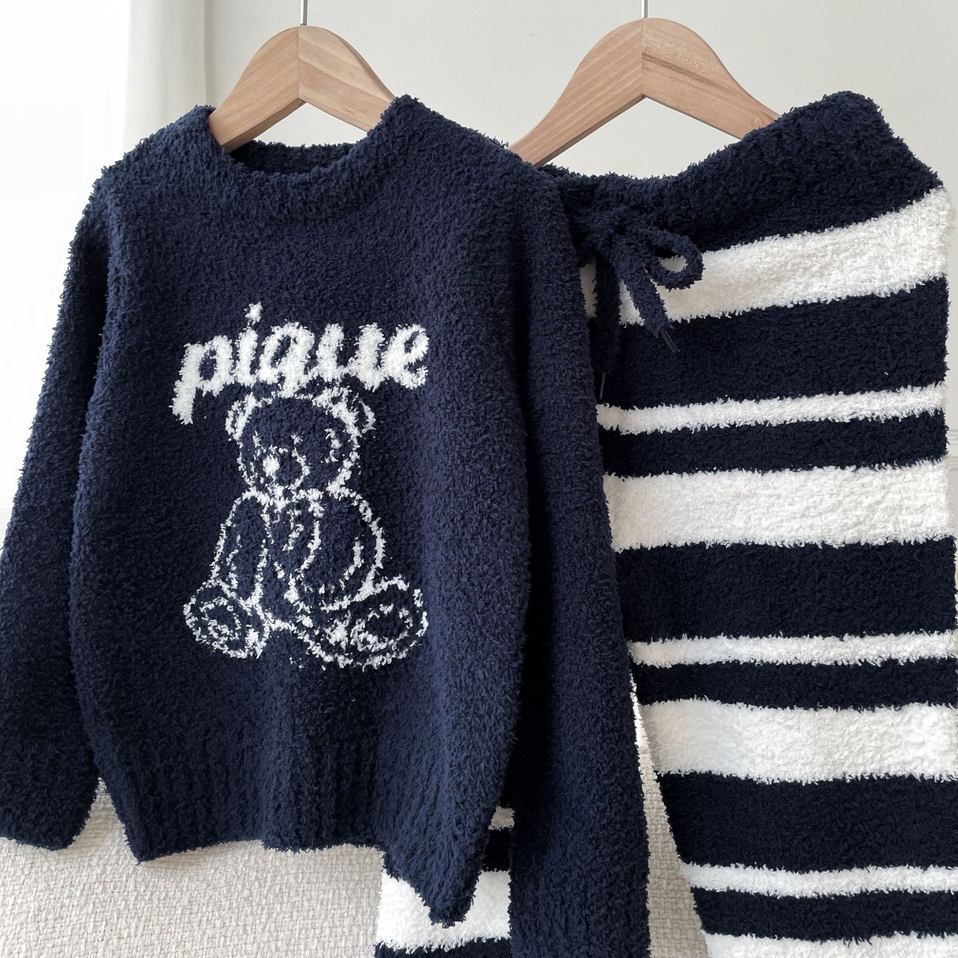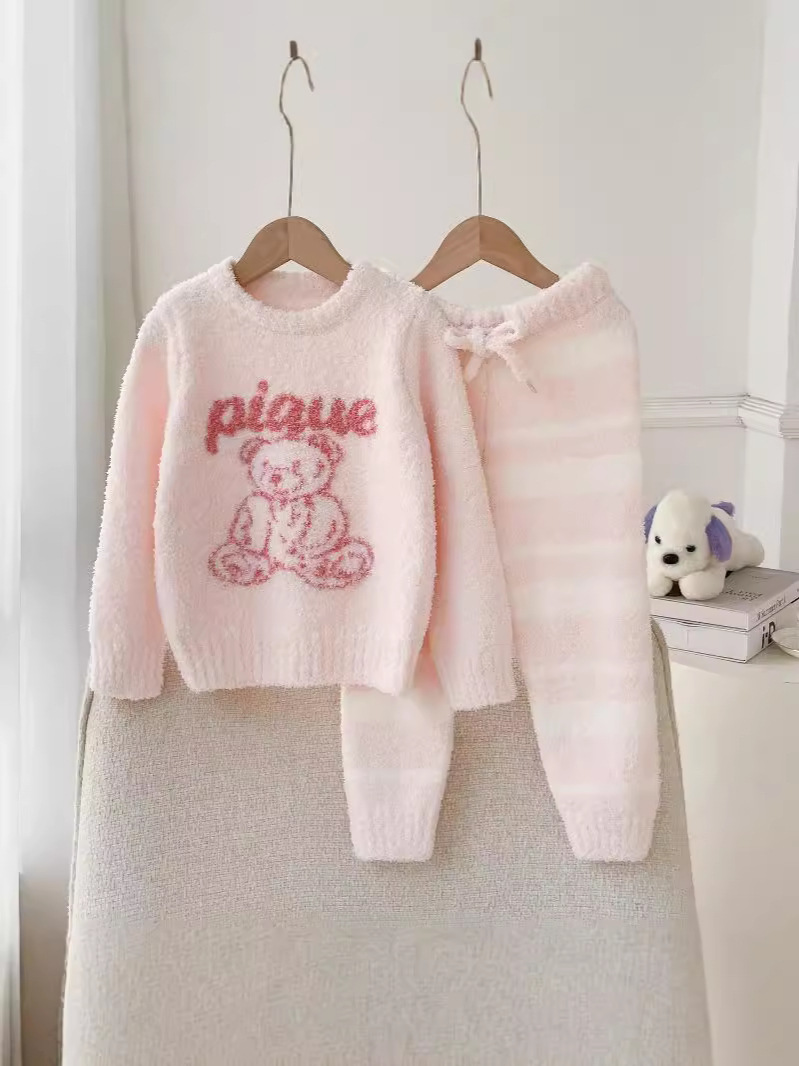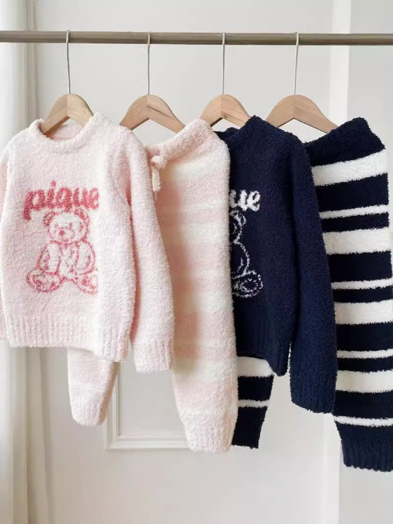 24 가을과 겨울 새로운 gp 부모-자식 남녀 소프트 하프 벨벳 어린이 만화 테디 홈 의류 잠옷 세트스토어 가기