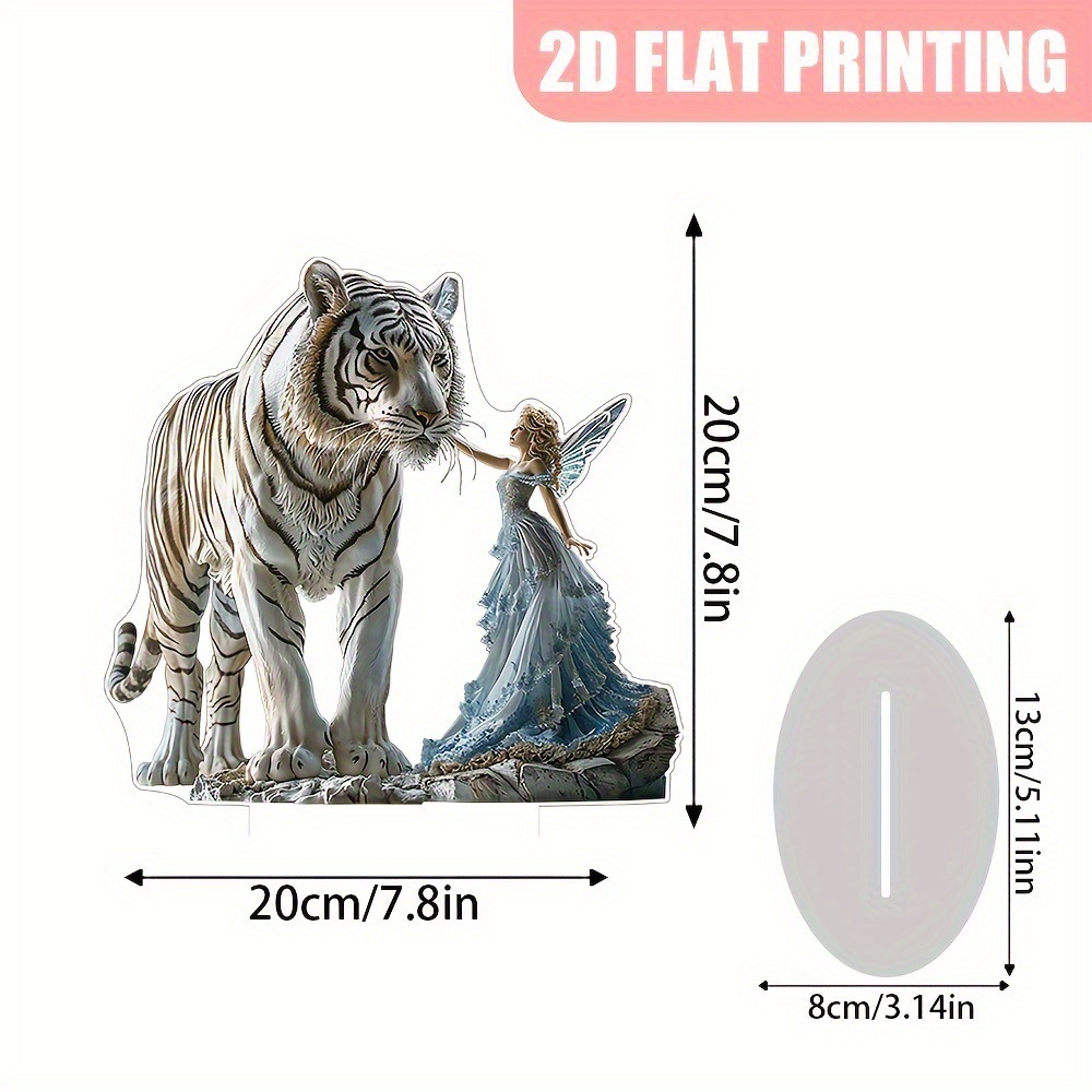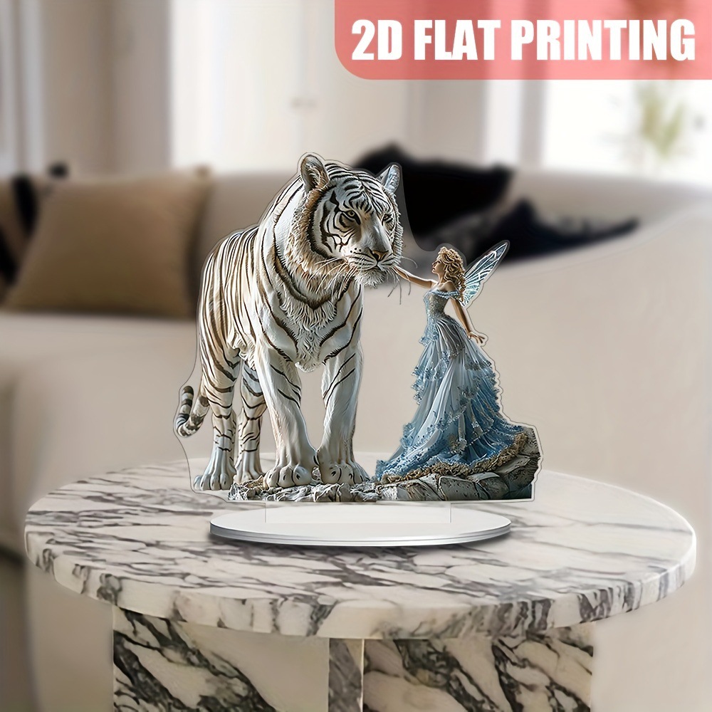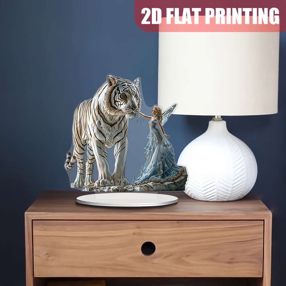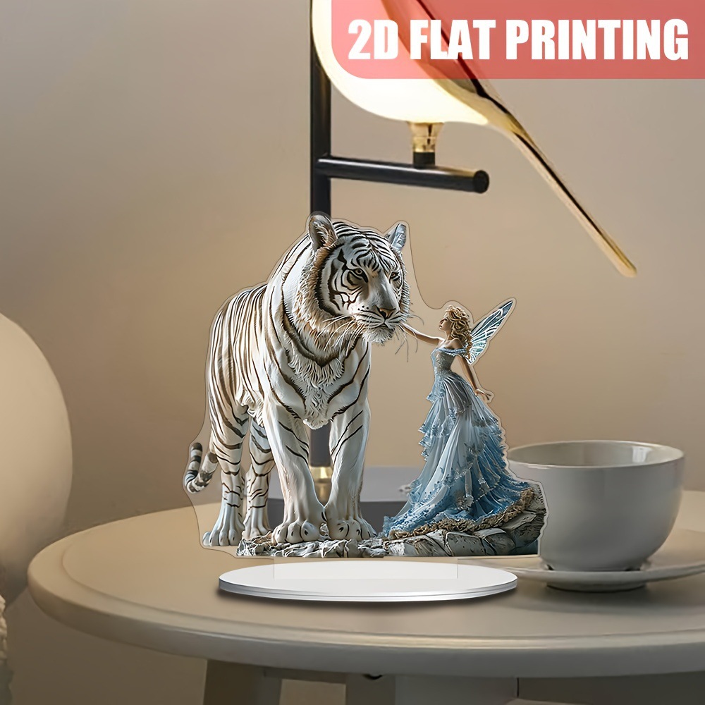국경 간 매력적인 요정과 흰색 호랑이 기본 아크릴 기호 영감 데스크탑 장식 보드 홈 장식