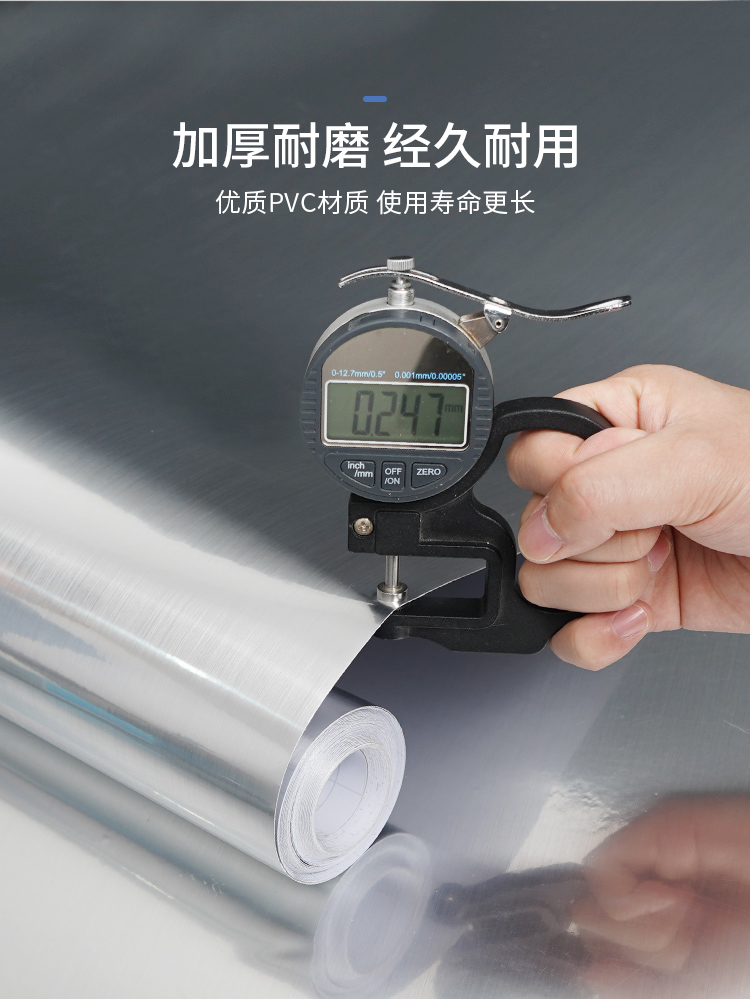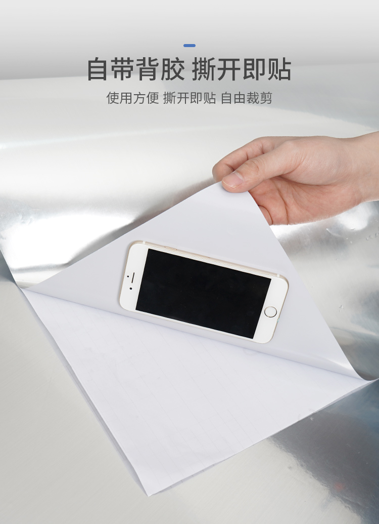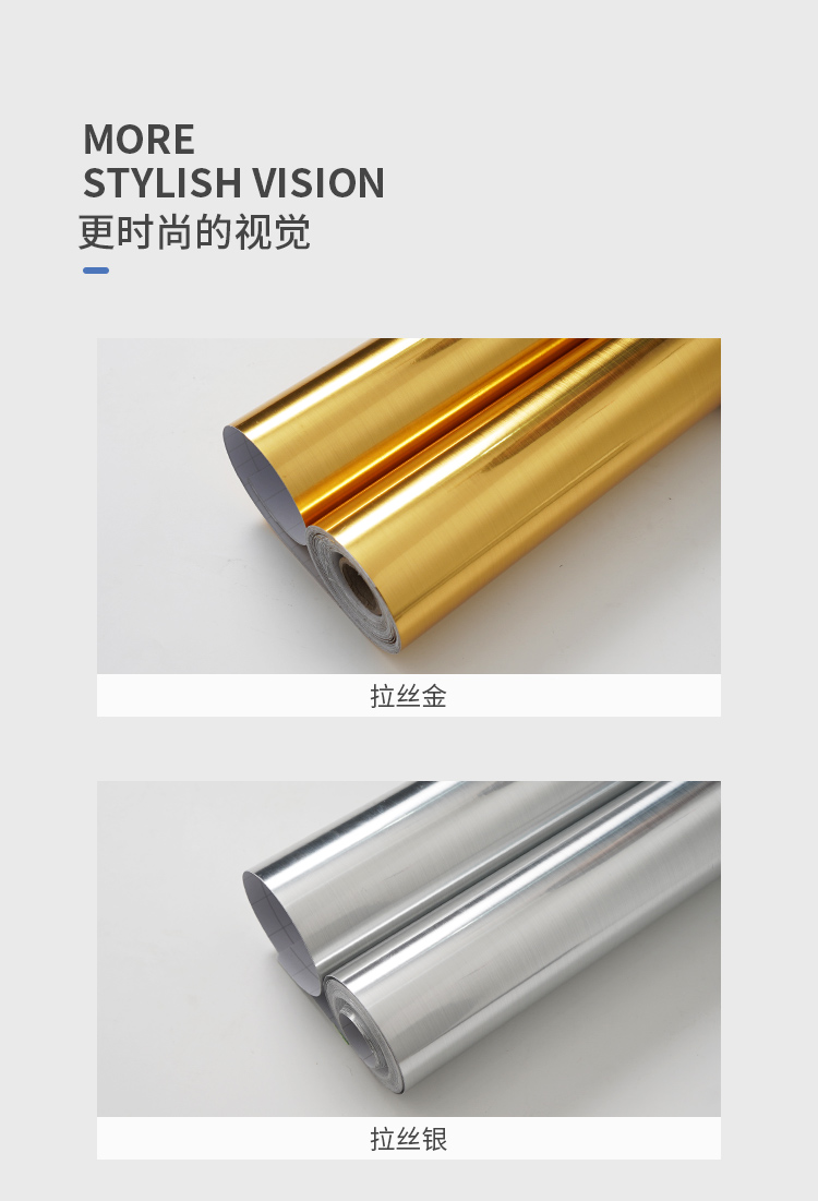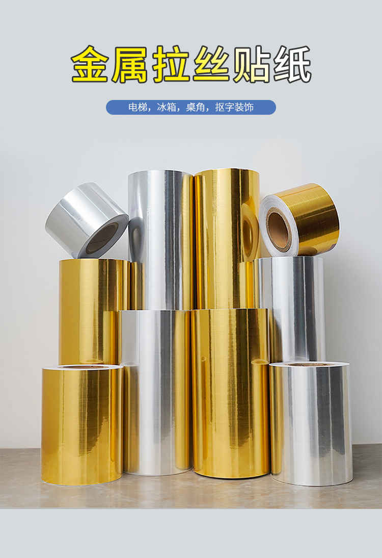 스테인레스 스틸 실버 스티커 거울 반사 금속 와이어 드로잉 필름 방수 자체 접착 접착제 골드 스티커 호닝 비문
