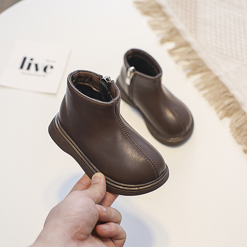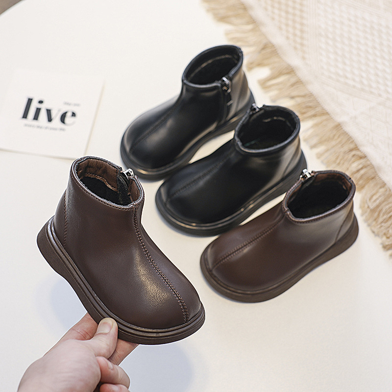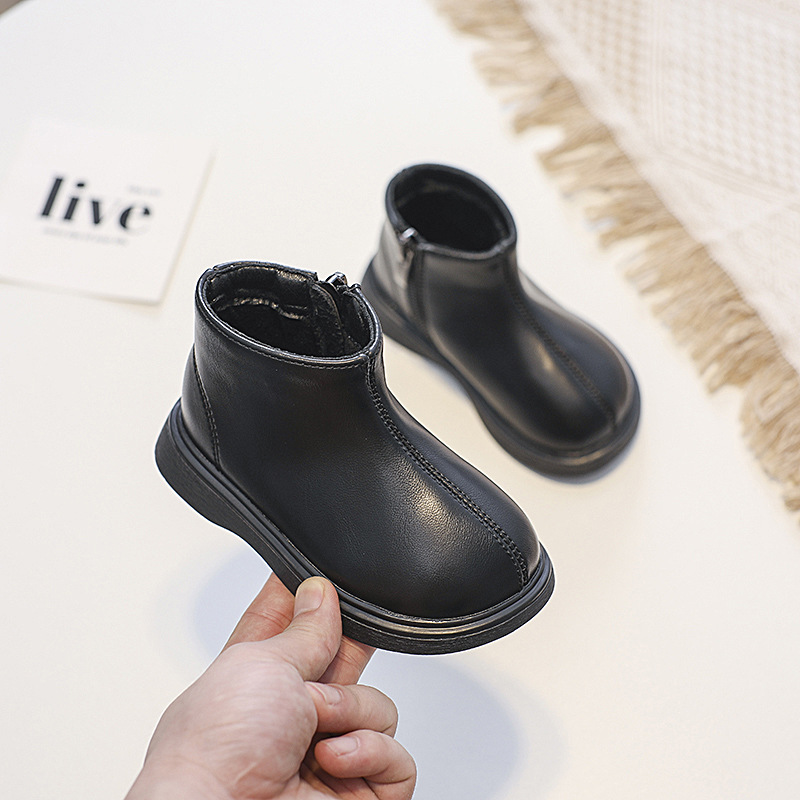 가을과 겨울 영국 스타일 아기의 편안한 부드러운 바닥 부츠 여자 어린이 짧은 부츠 어린이 마틴 부츠 블랙 싱글 부츠