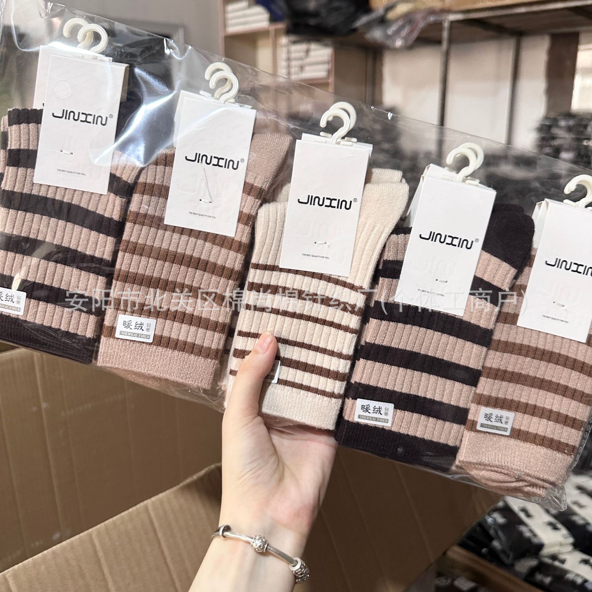 진신 여성 중장 양말 가을과 겨울 두꺼운 캐시미어 양말 따뜻한 상어 바지 한국 줄무늬 스택 양말 트렌디