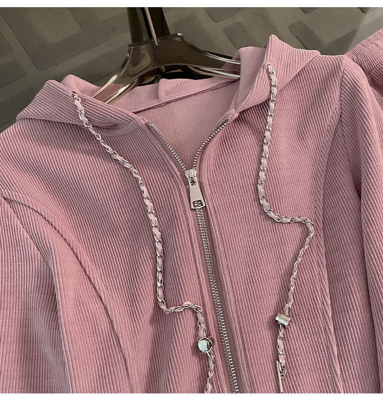 유럽풍 캐주얼 핑크 스포츠웨어 여성용 봄가을 2026 신상 루즈핏 드레이프 슬릿 와이드 팬츠 투피스 세트스토어 가기