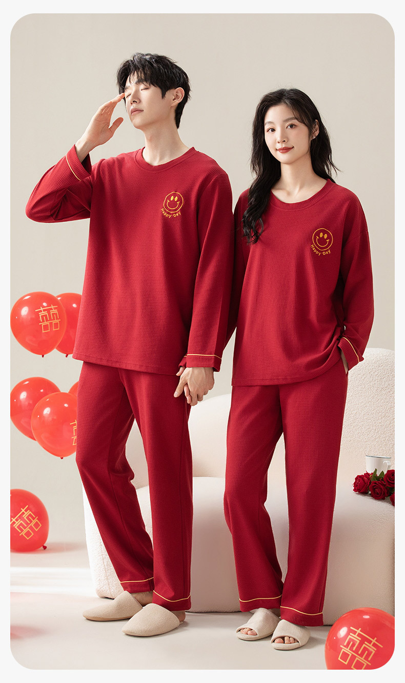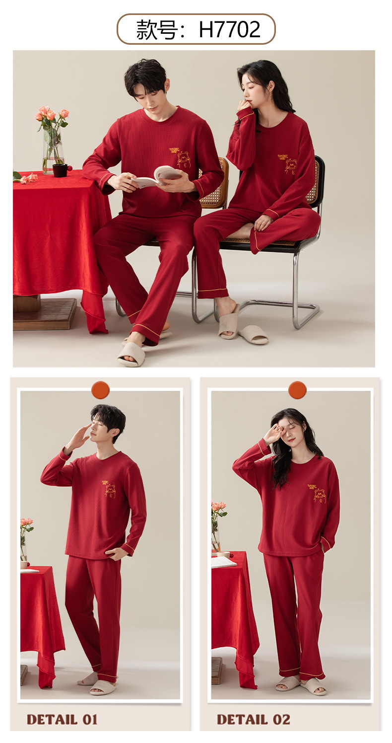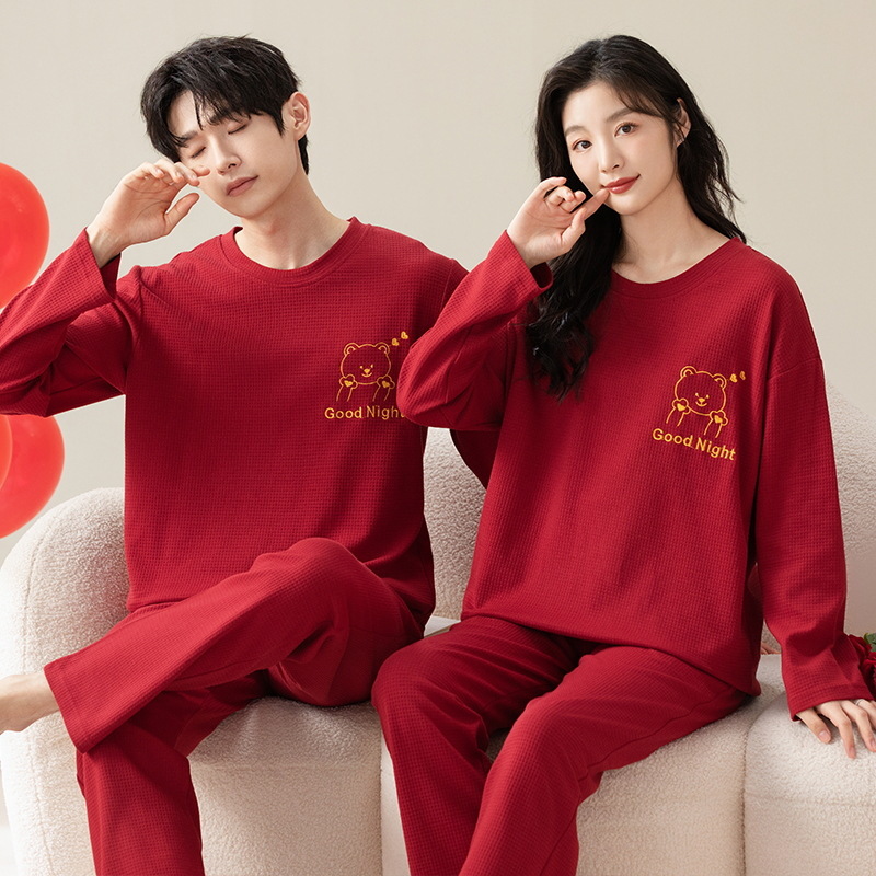 가을과 겨울 잠옷 커플의 긴 소매 레드 세트 남성과 여성의 웨딩 축제 풀오버 캐주얼 홈 의류스토어 가기