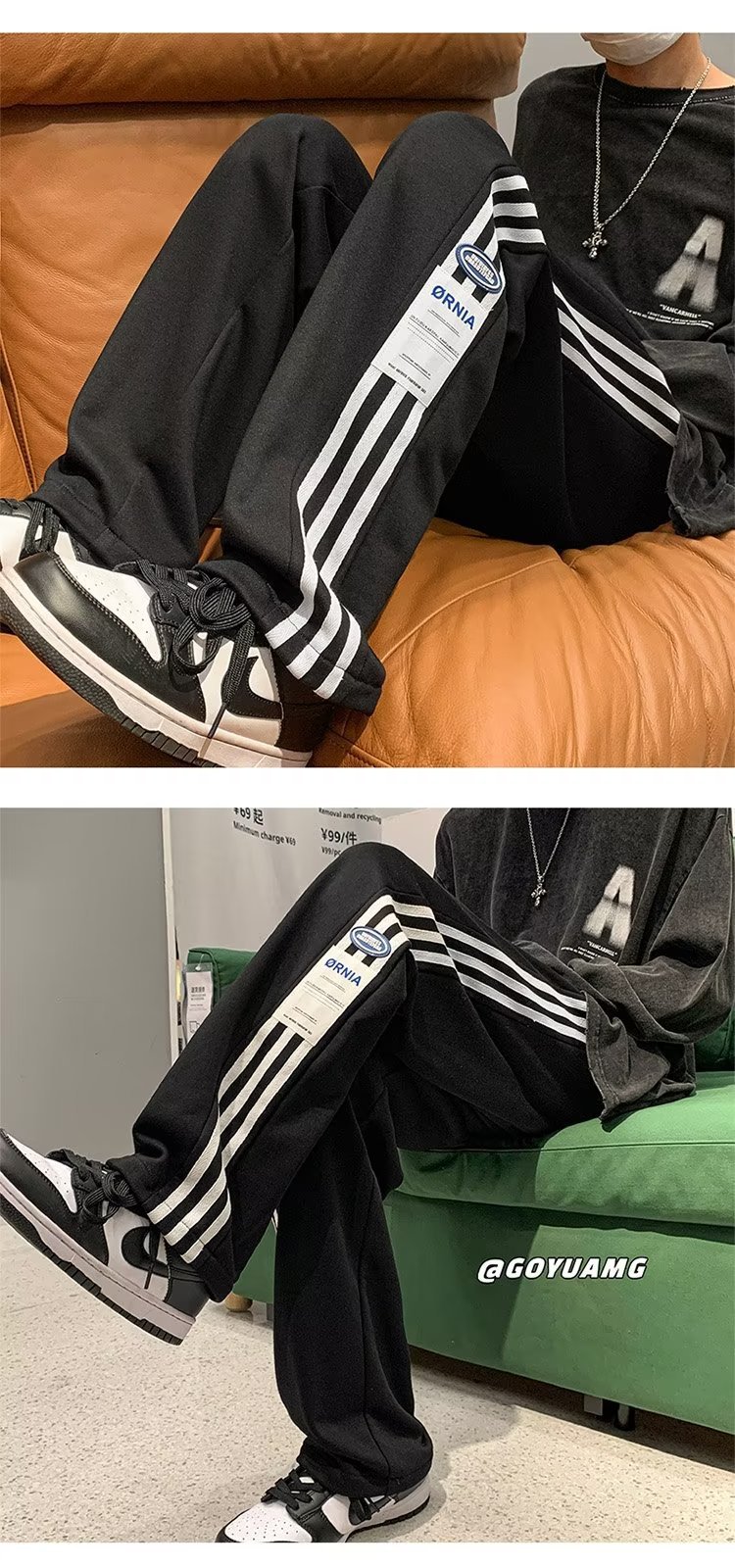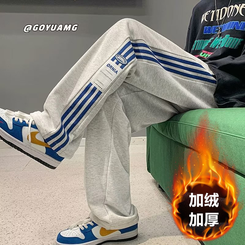 아메리칸 스타일 하이 스트리트 바지 남자 가을 겨울 패션 브랜드 기모 캐주얼 스포츠 스트라이프 스웨트 팬츠 느슨한 올매치 스트레이트 바지스토어 가기