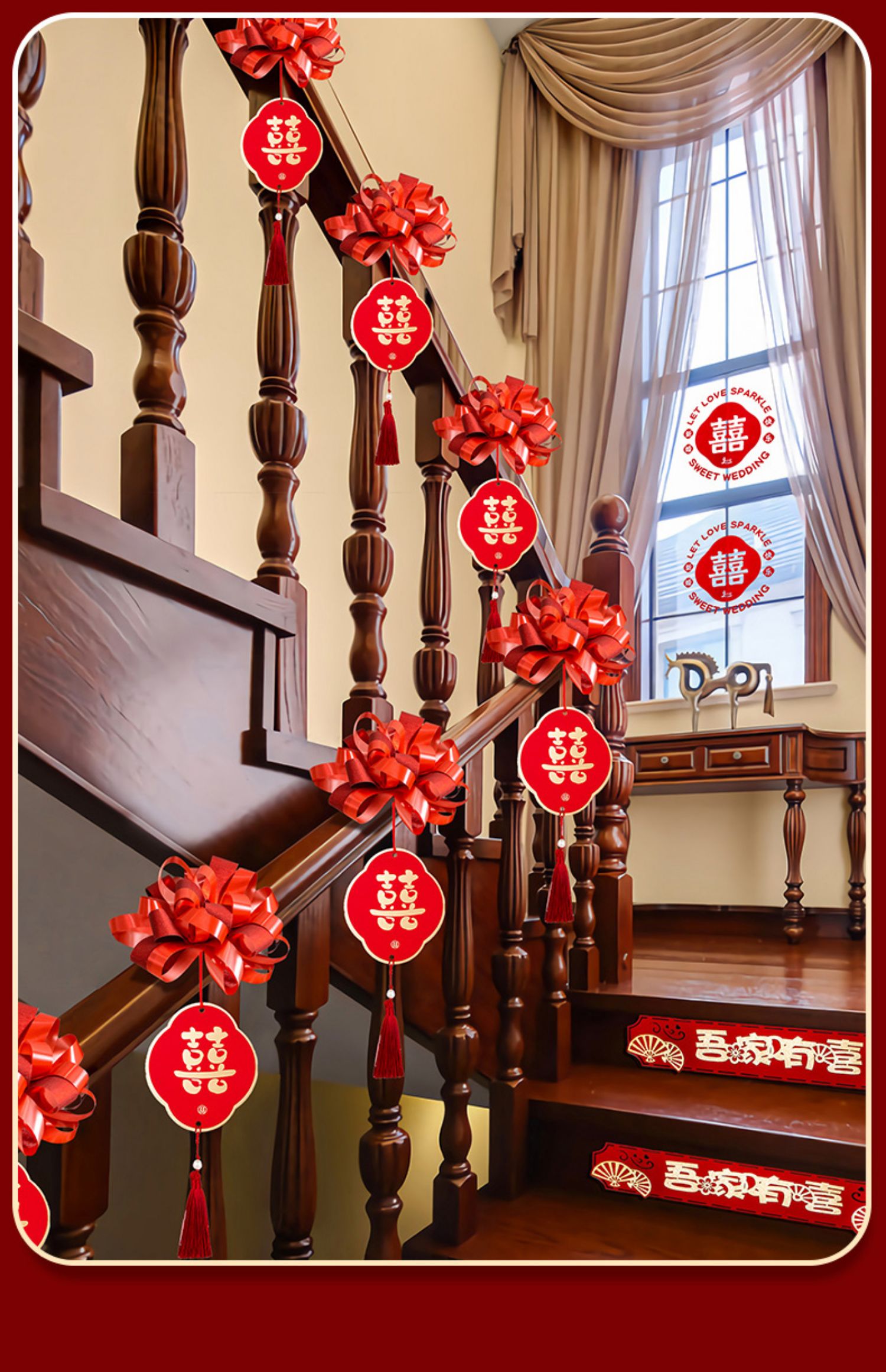 웨딩 계단 난간 장식 창조적 인 낭만적 인 여자의 결혼식 에스컬레이터 꽃 웨딩 룸 레이아웃 세트 결혼식 교수형 비문