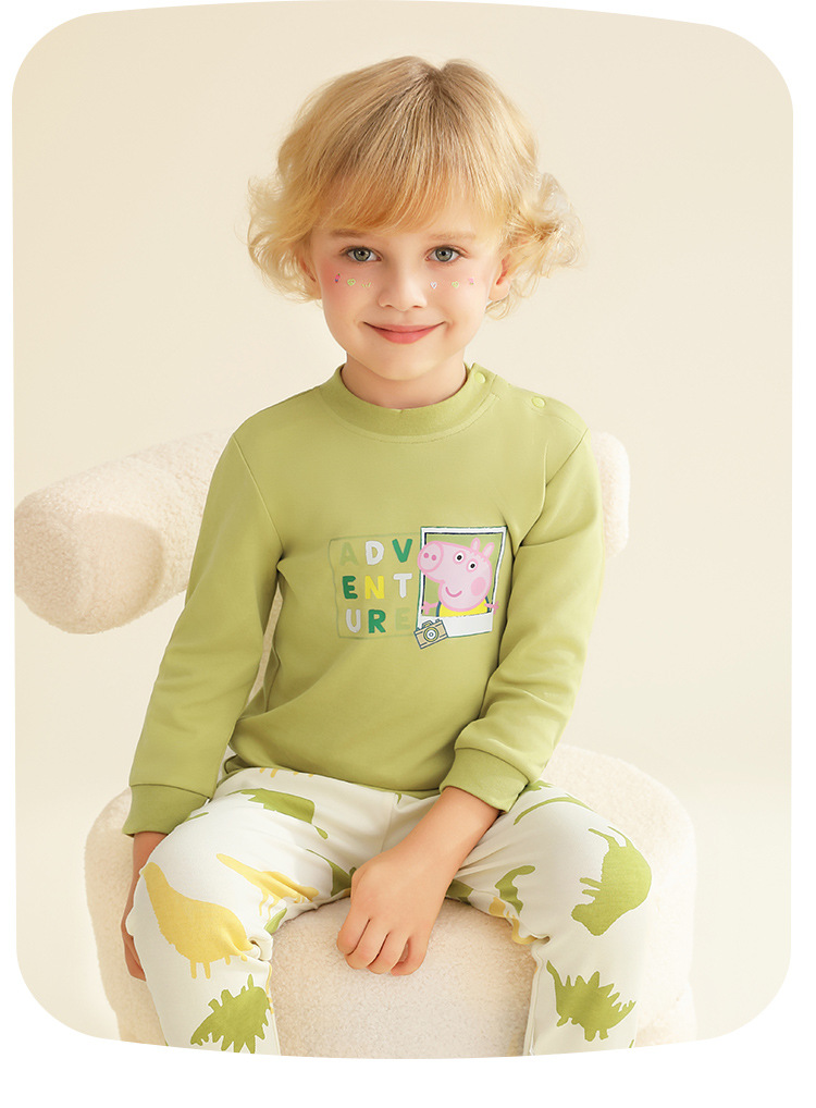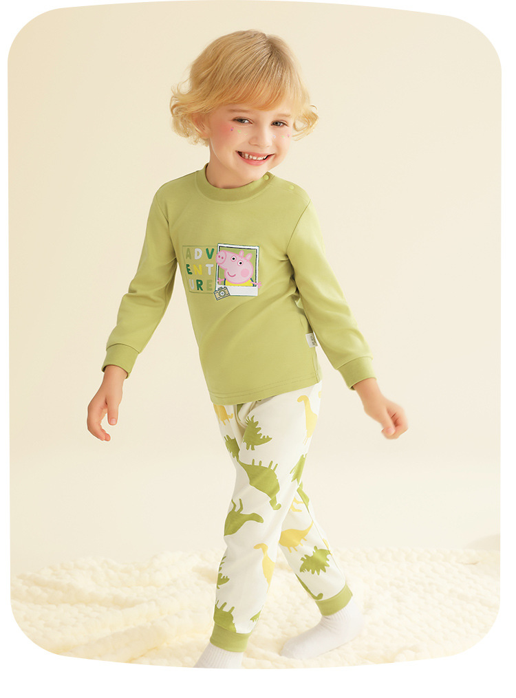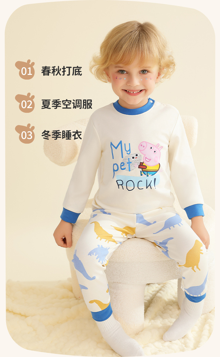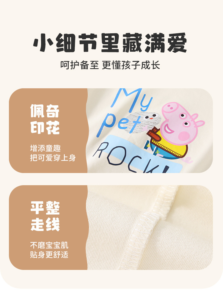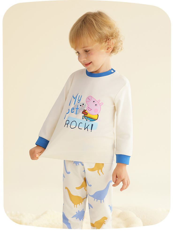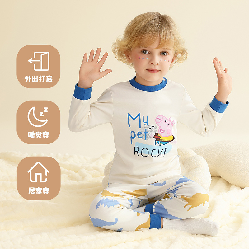 Peppa Pig 아동복 소년 홈웨어 세트 봄 신상품 유아용 라운드넥 배색 프린트 잠옷스토어 가기