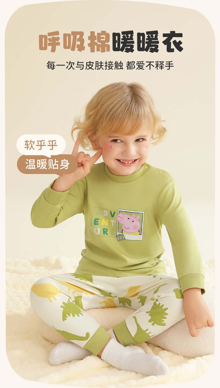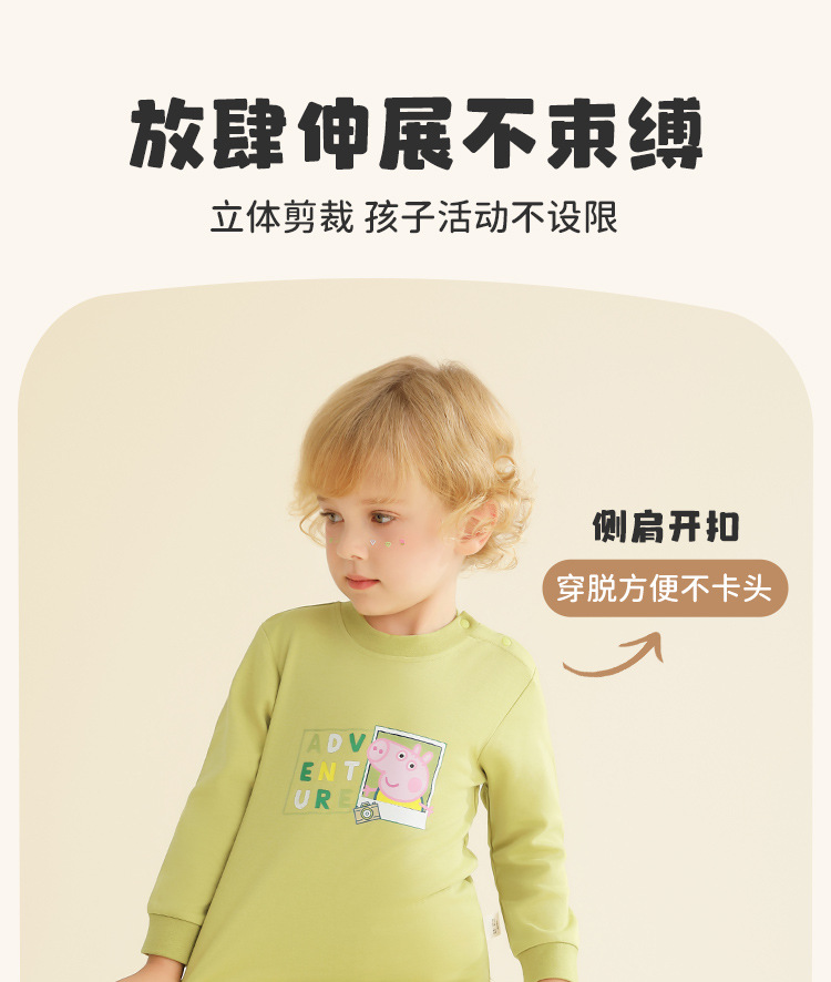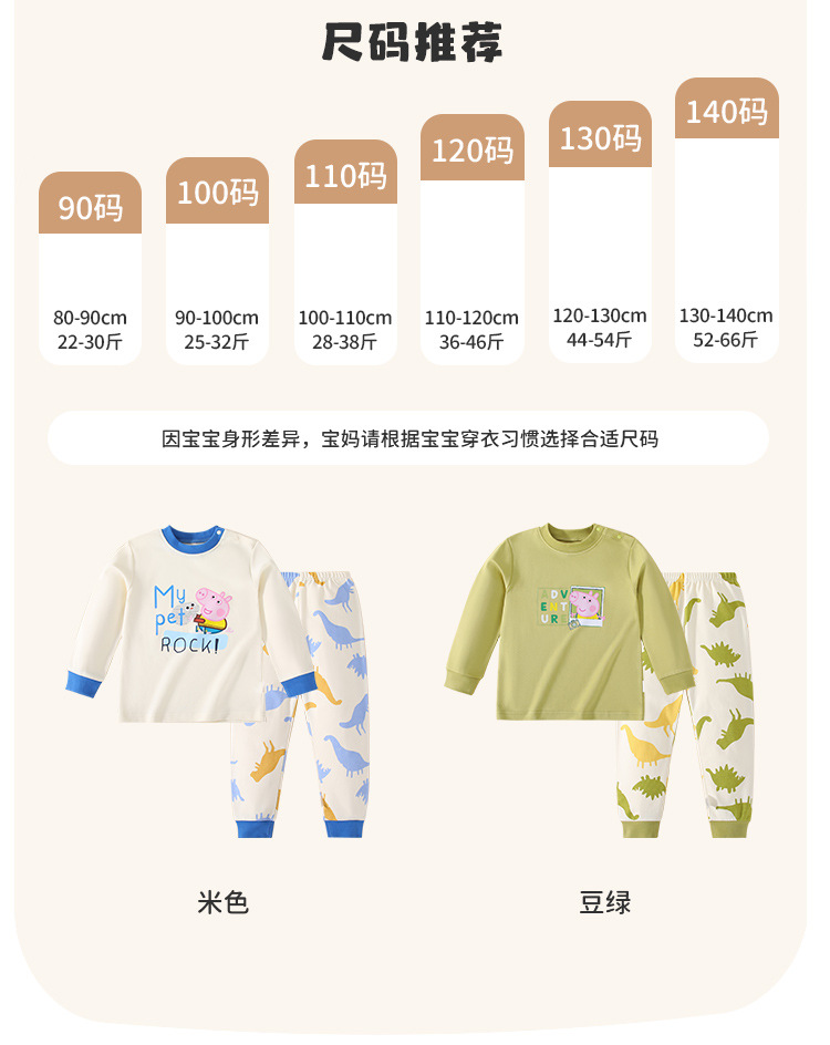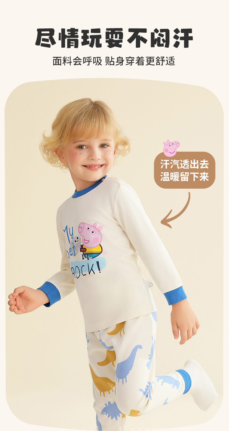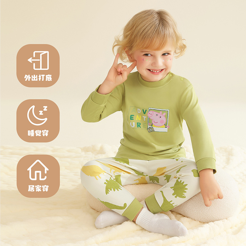 Peppa Pig 아동복 소년 홈웨어 세트 봄 신상품 유아용 라운드넥 배색 프린트 잠옷스토어 가기