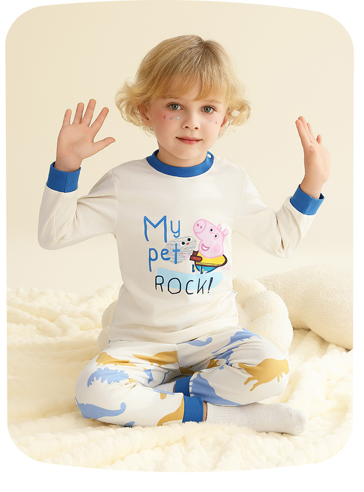 Peppa Pig 아동복 소년 홈웨어 세트 봄 신상품 유아용 라운드넥 배색 프린트 잠옷