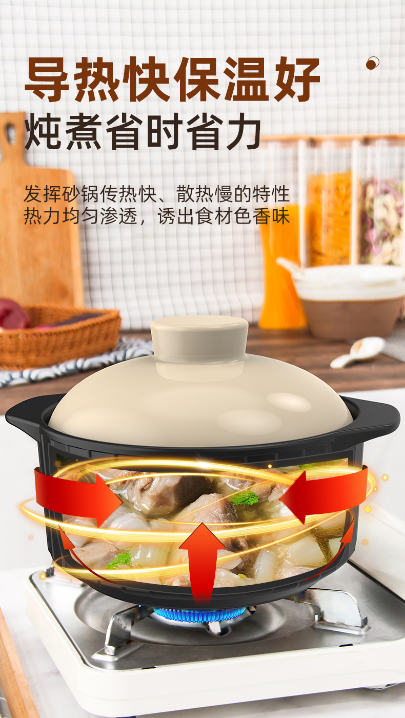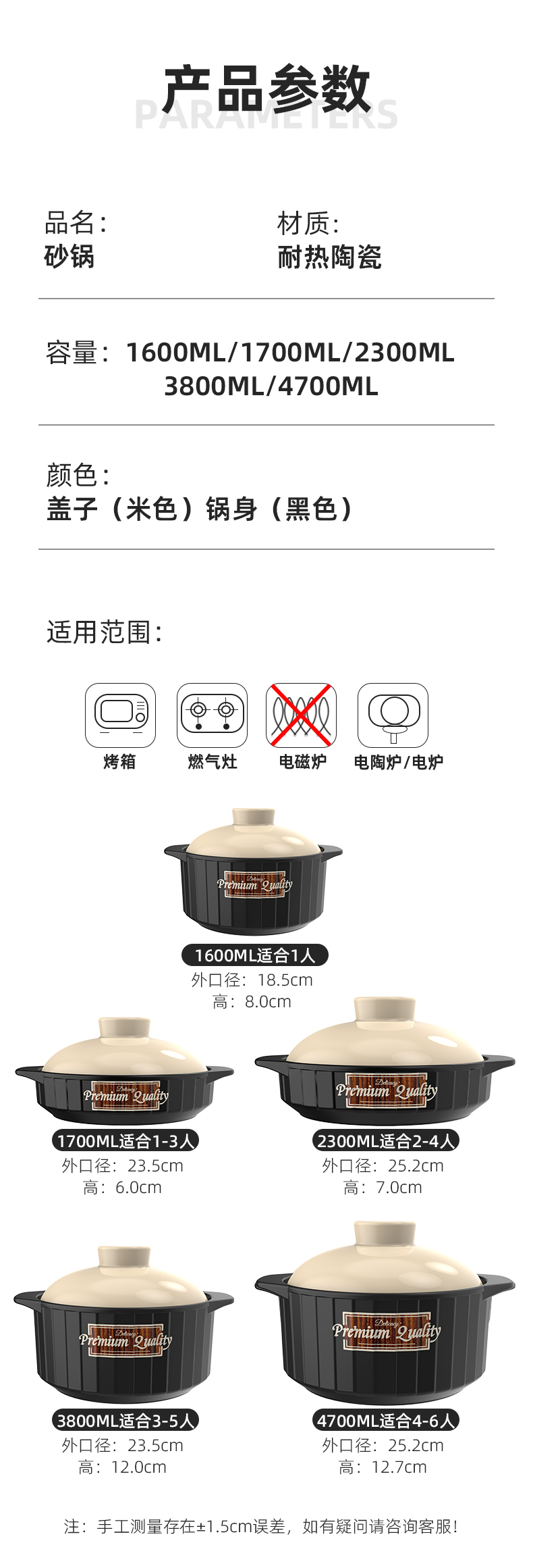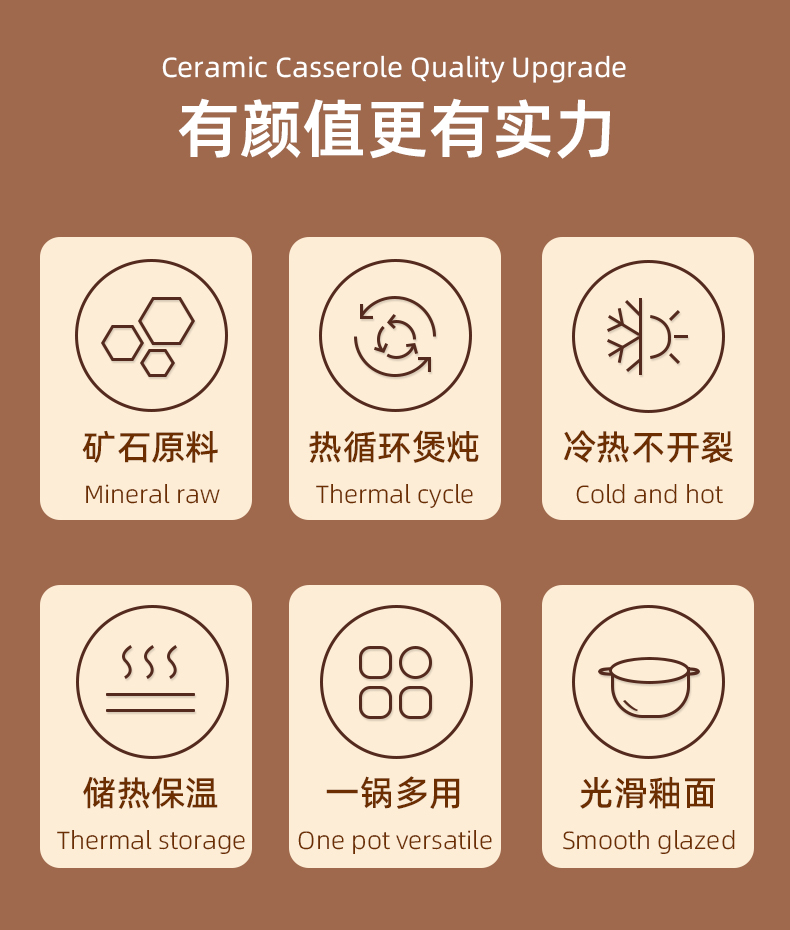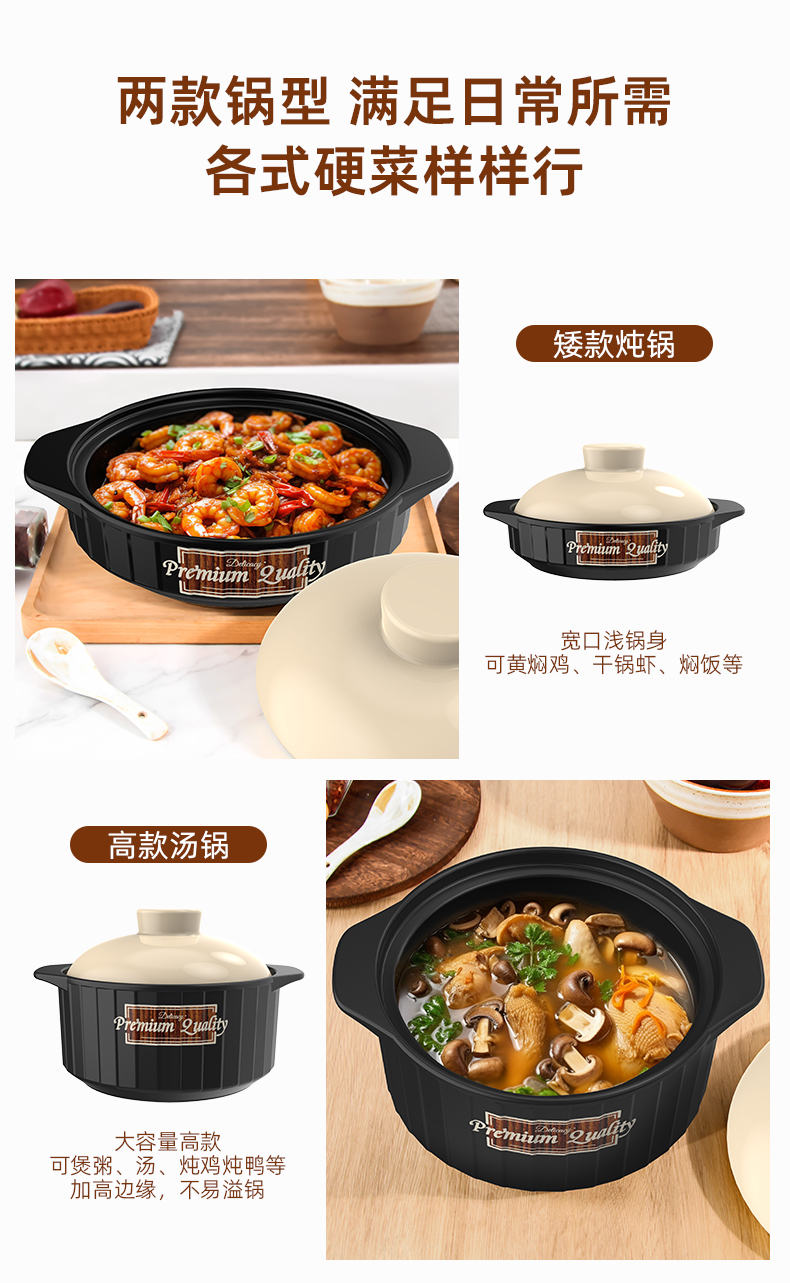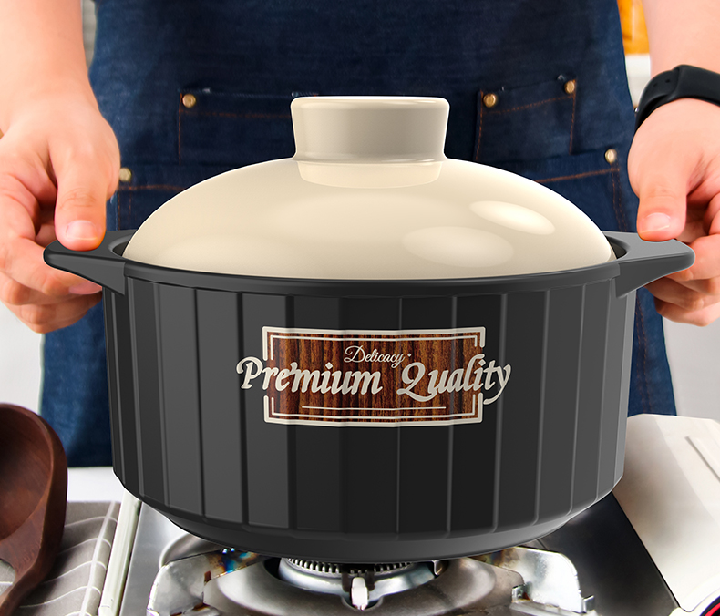 강슈 캐서롤 세라믹 Kui 블랙 우드 그레인 대용량 스튜 냄비 가정용 고온 저항성 수프 냄비 건조 연소 금통 교수형 비문