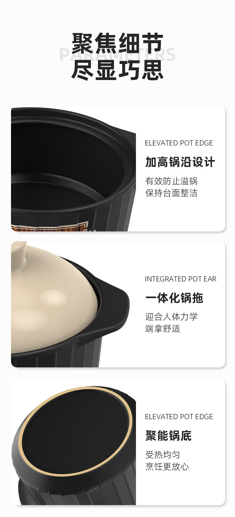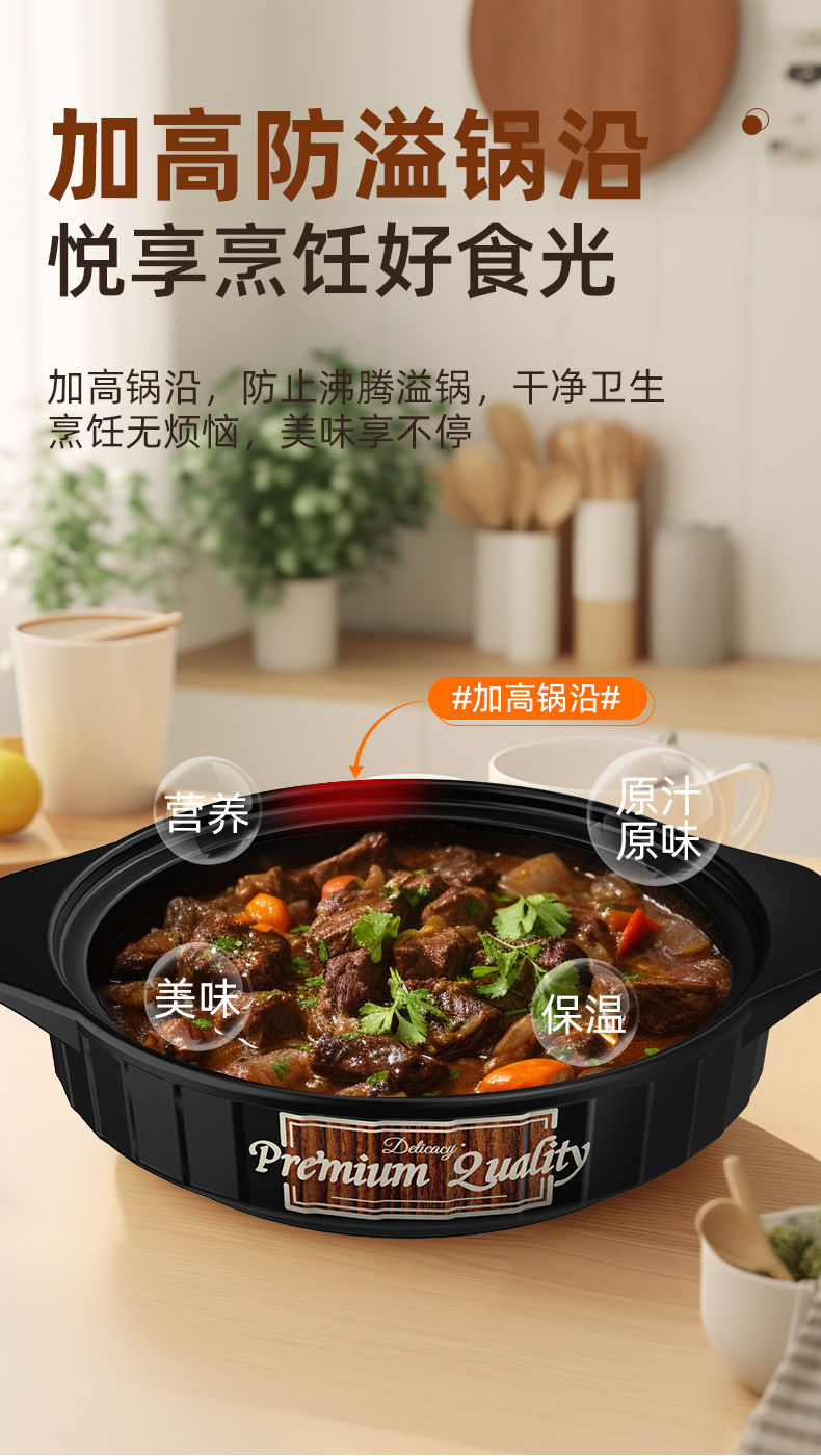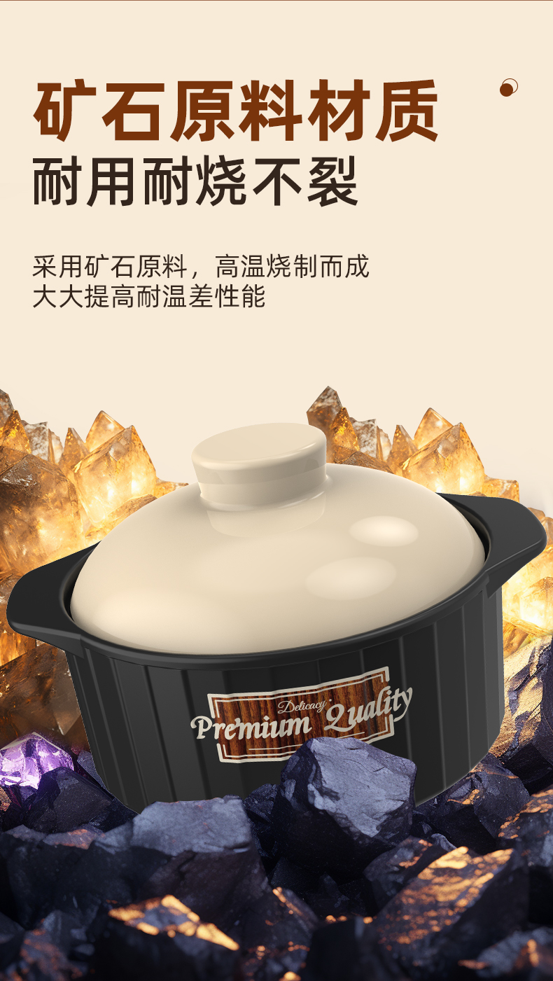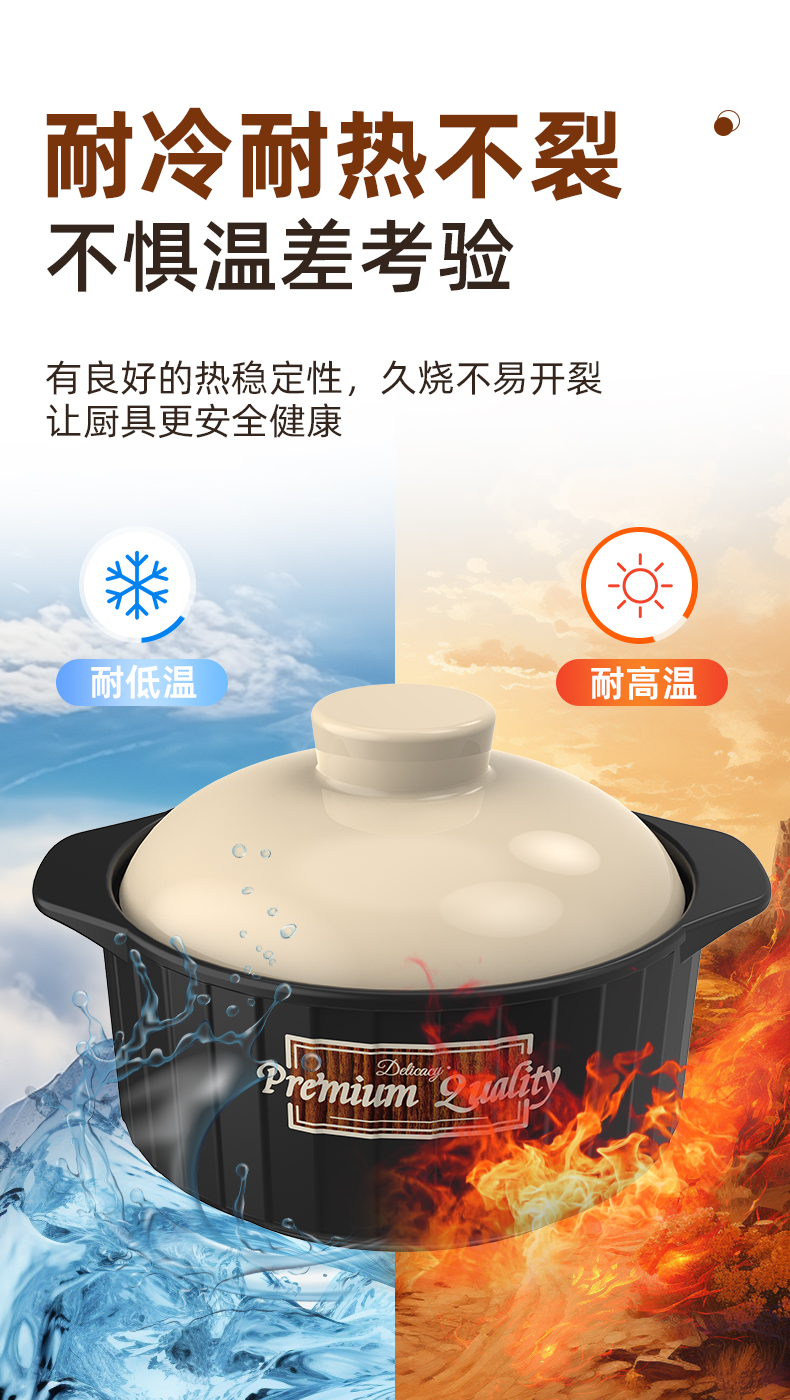 강슈 캐서롤 세라믹 Kui 블랙 우드 그레인 대용량 스튜 냄비 가정용 고온 저항성 수프 냄비 건조 연소 금통 교수형 비문