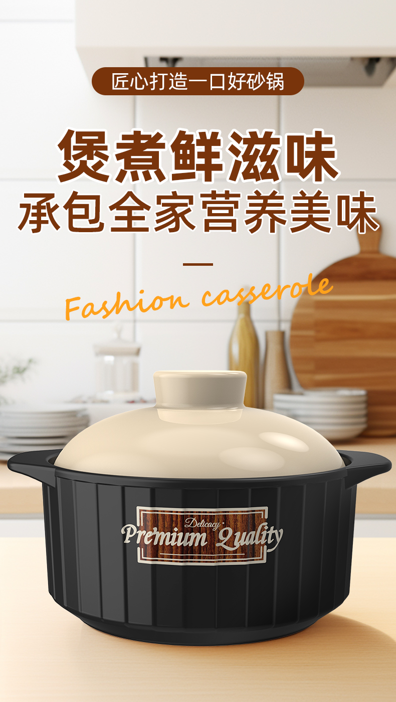 강슈 캐서롤 세라믹 Kui 블랙 우드 그레인 대용량 스튜 냄비 가정용 고온 저항성 수프 냄비 건조 연소 금통 교수형 비문스토어 가기
