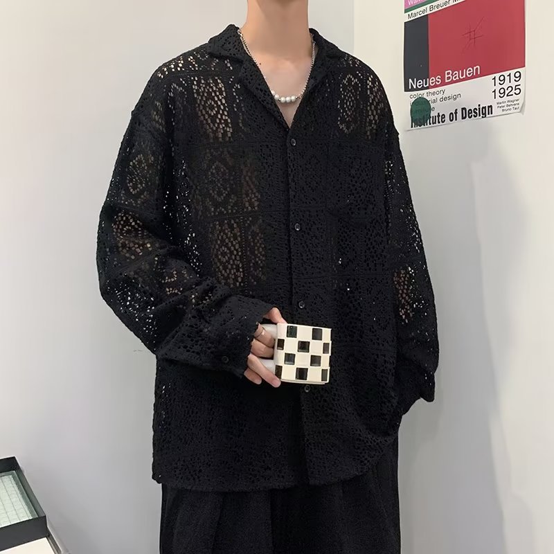 여름 전국 패션 아메리칸 스타일 레트로 디자인 센스 니치 탑 할로우 아웃 남성과 여성의 올 매치 긴팔 화이트 셔츠 패션 성격스토어 가기