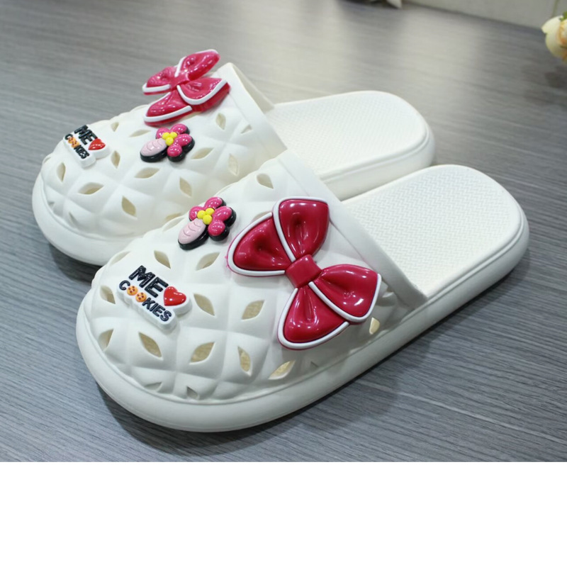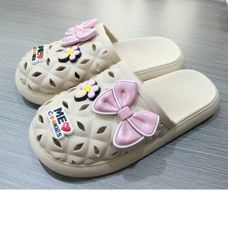PVC 활 구멍 슬리퍼 여성용 미끄럼 방지 비치 샌들 외부 착용 소녀 부드러운 바닥 Baotou 슬리퍼 홈