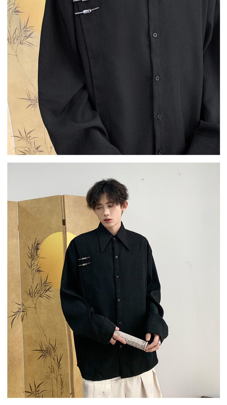 새로운 중국 스타일 흰색 긴 소매 셔츠 남성과 여성의 패션 디자인 센스 아이언 버클 하이 엔드 라이트 럭셔리 트렌디 한 중국 스타일 틈새 셔츠스토어 가기