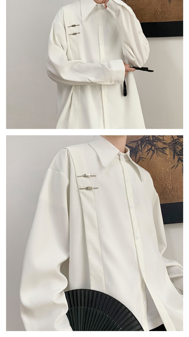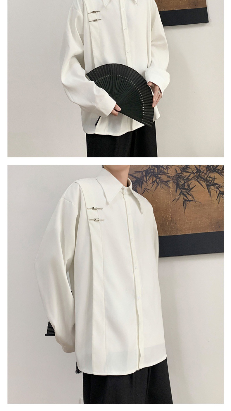 새로운 중국 스타일 흰색 긴 소매 셔츠 남성과 여성의 패션 디자인 센스 아이언 버클 하이 엔드 라이트 럭셔리 트렌디 한 중국 스타일 틈새 셔츠