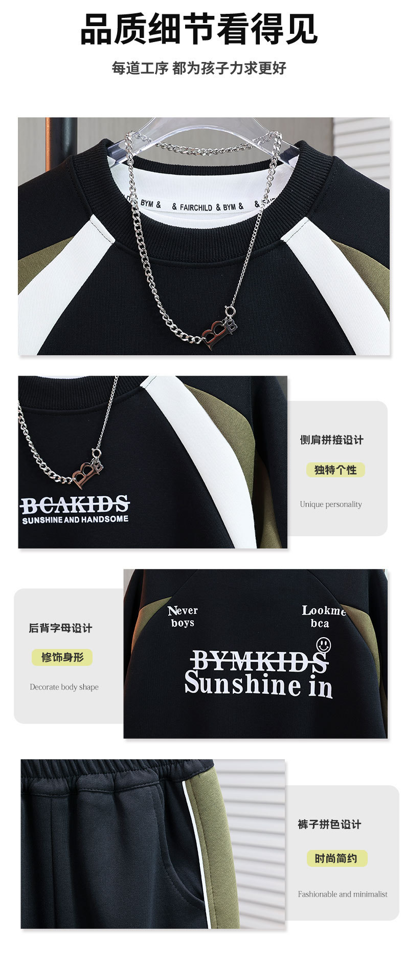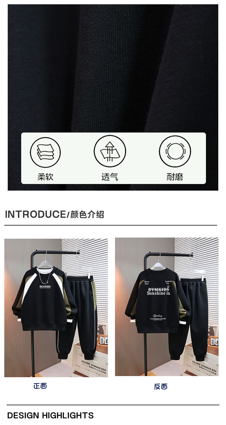 남아용 봄가을 캐주얼 스웨트셔츠 세트 2025 신상 패션 멋진 중대형 아동용 한국 스타일 배색 프린트 투피스 세트스토어 가기