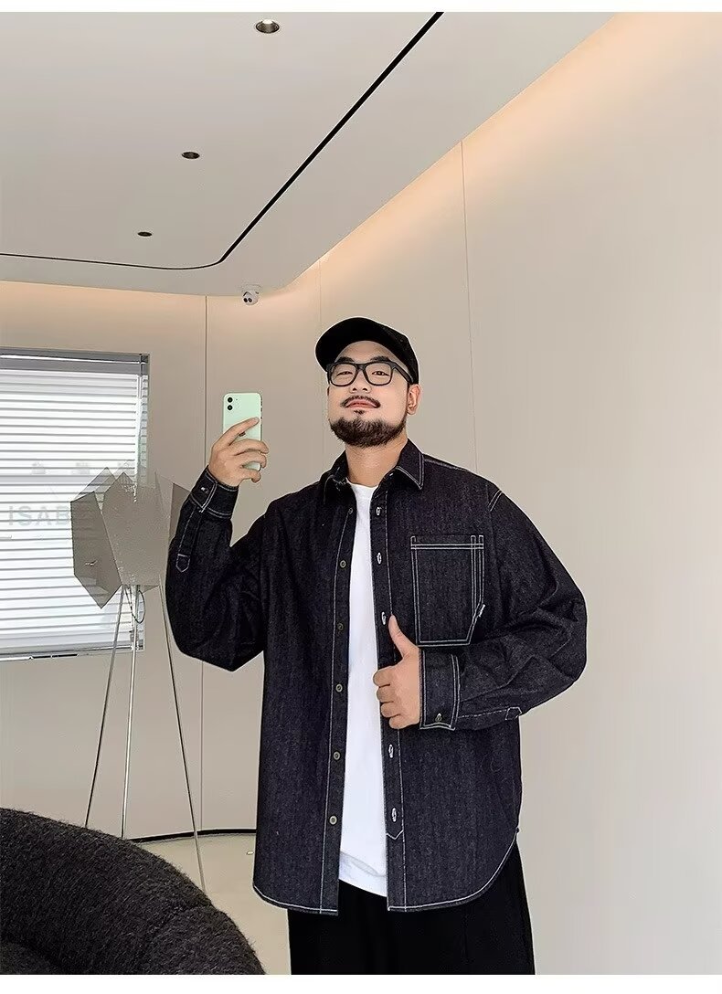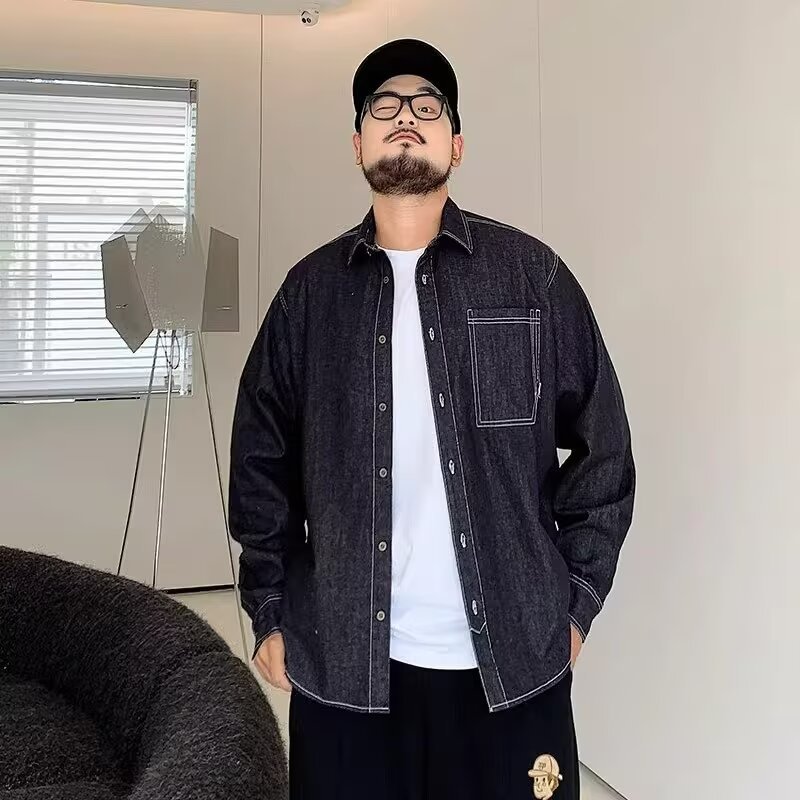 가벼운 성숙한 바람 봄과 가을 새로운 유행 남성 셔츠 재킷 캐주얼 레트로 남성용 유행 브랜드 셔츠 데님 셔츠스토어 가기