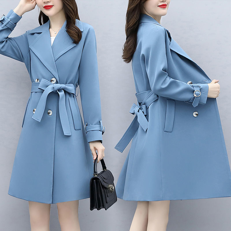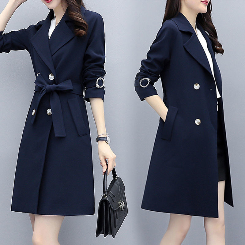 윈드 브레이커 여성의 중간 길이의 봄과 가을 옷 새로운 여성복 타이트한 허리 슬리밍 유행 이른 가을 코트스토어 가기