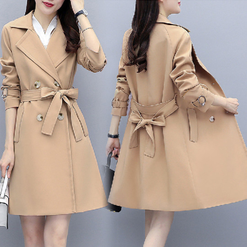 윈드 브레이커 여성의 중간 길이의 봄과 가을 옷 새로운 여성복 타이트한 허리 슬리밍 유행 이른 가을 코트