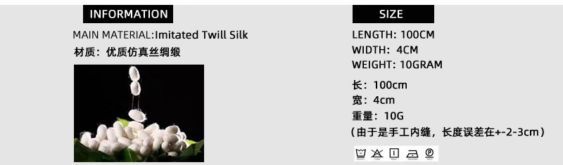 使用优质重磅斜纹缎面,手工制作,一条丝巾经过裁剪,手工缝制,手工整烫,包装等精心环节