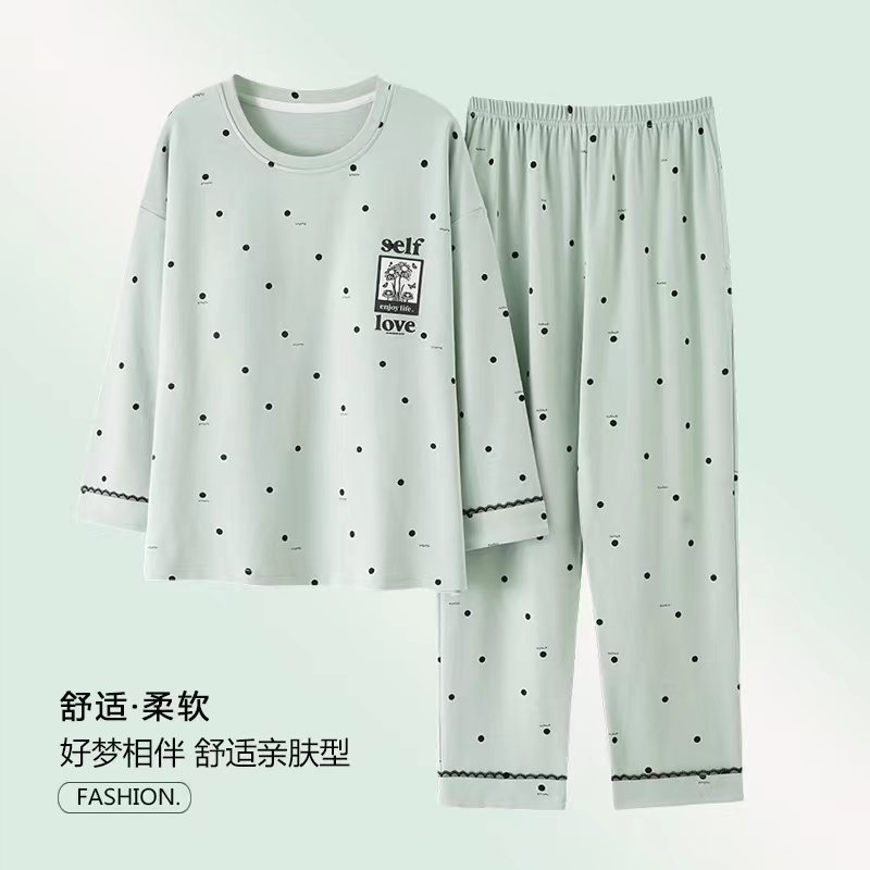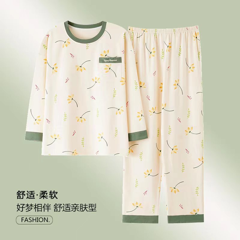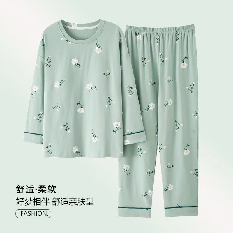 잠옷 여성의 봄과 가을 면화 긴 소매 5XL 초대형 중년 어머니 집 옷 얇은 세트 도매 착용 가능스토어 가기