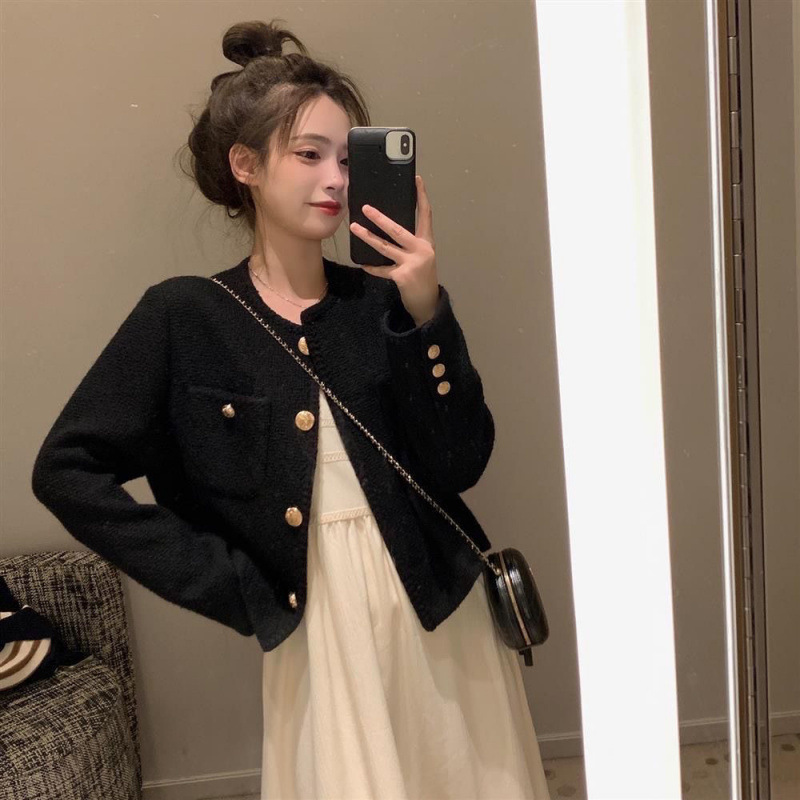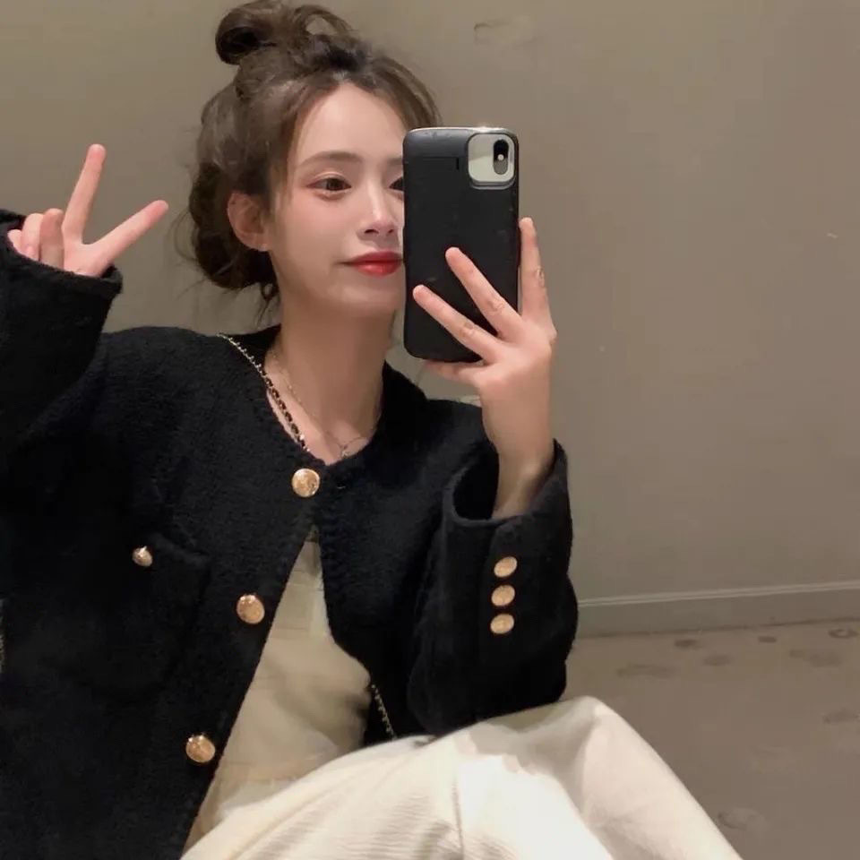 샤넬 스타일 코트 여자 봄과 가을 2024 여성을위한 새로운 한국 느슨한 올매치 우아한 짧은 짠 재킷 탑
