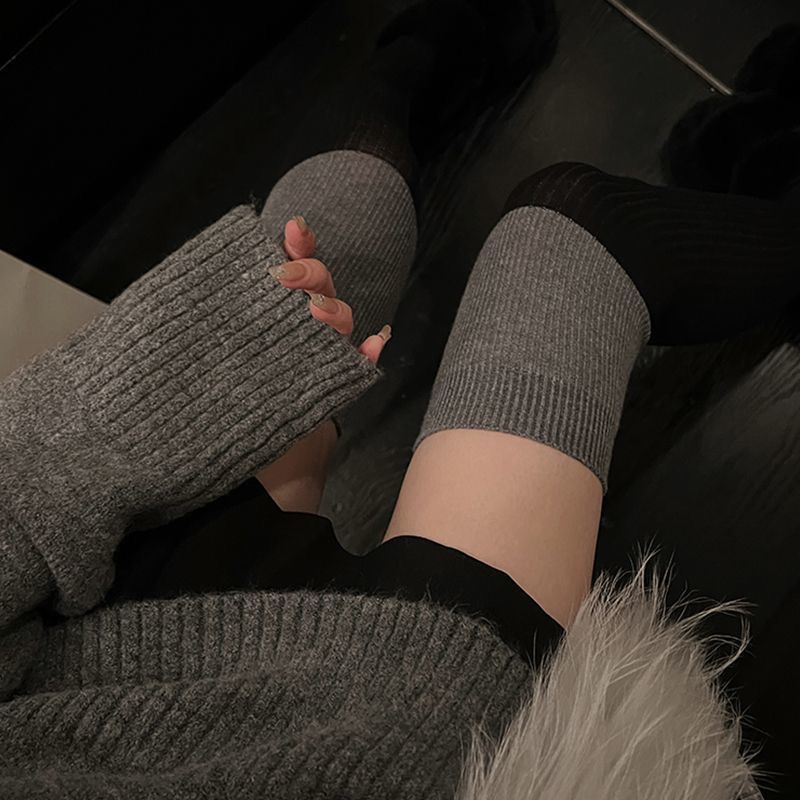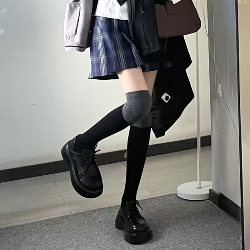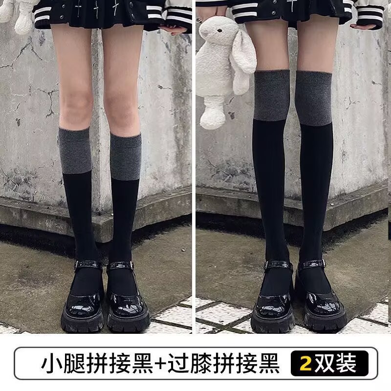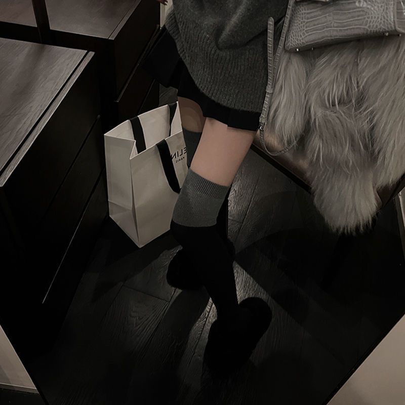 중간 배럴 블랙 그레이 바느질 긴 배럴 무릎 반 다리 Ins 트렌디 한 학생 블랙 송아지 양말 가을 겨울 여성을위한 컬러 매칭 양말