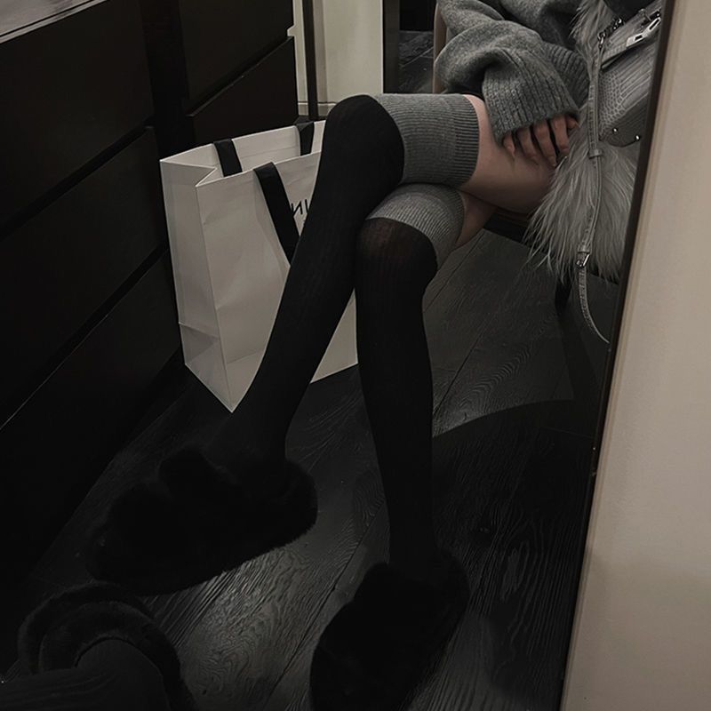 중간 배럴 블랙 그레이 바느질 긴 배럴 무릎 반 다리 Ins 트렌디 한 학생 블랙 송아지 양말 가을 겨울 여성을위한 컬러 매칭 양말스토어 가기