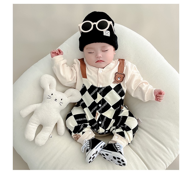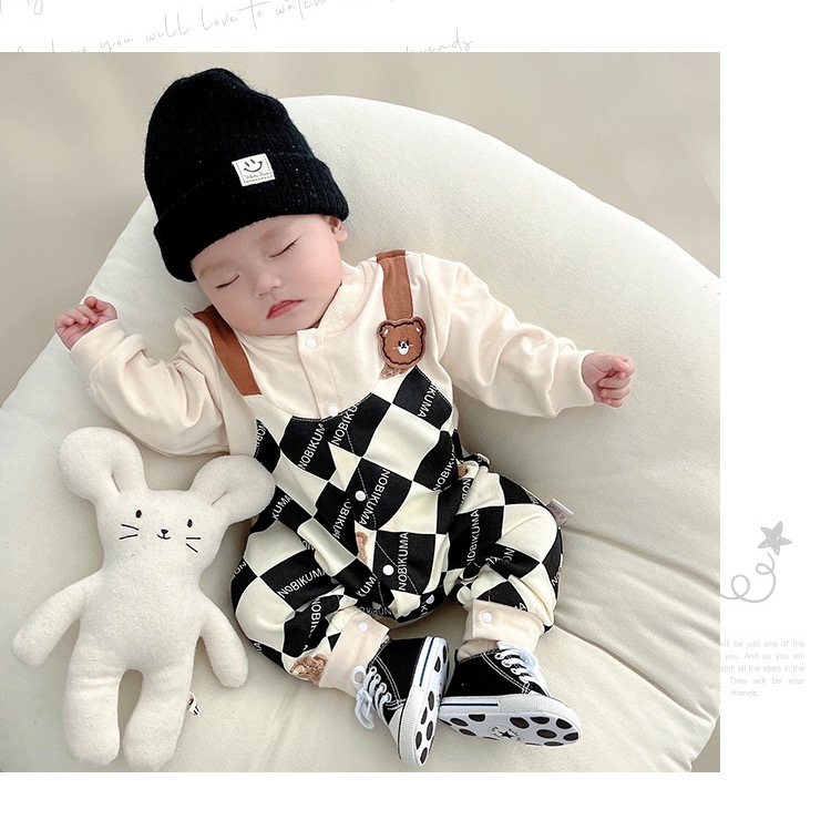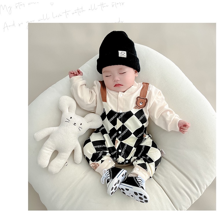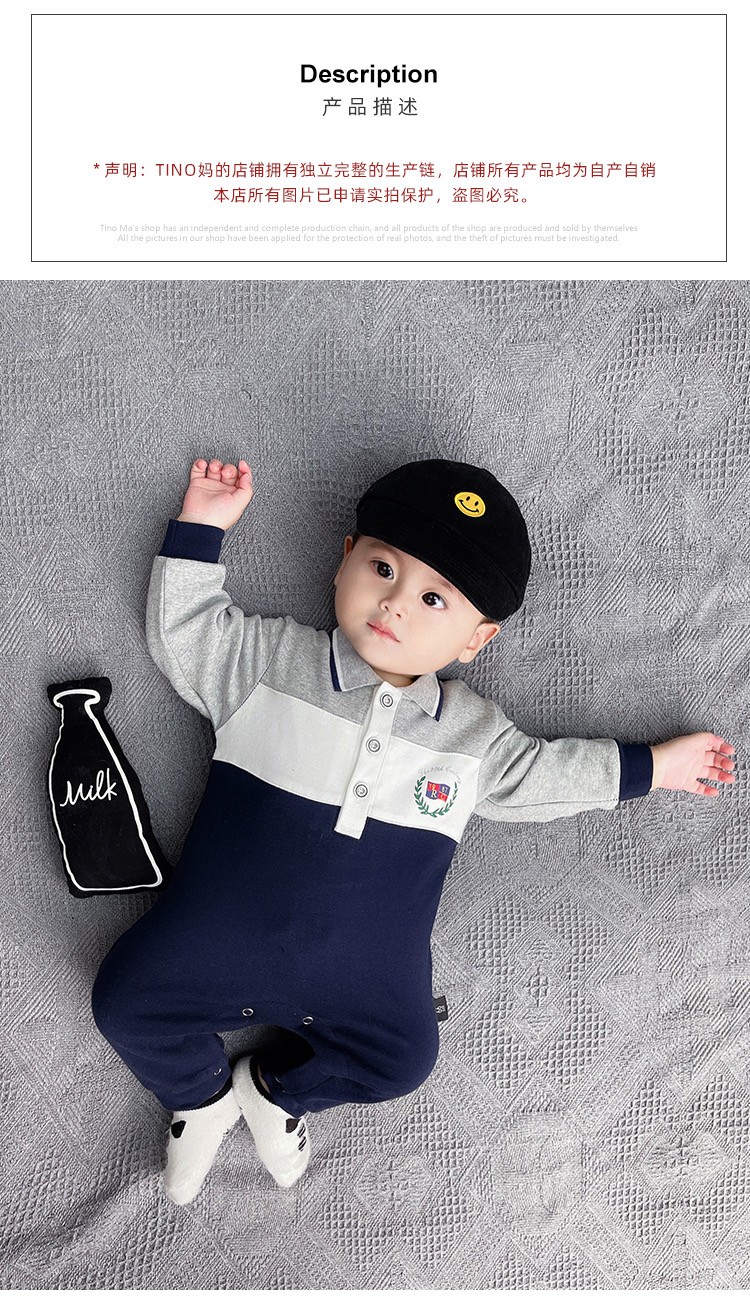 아기 점프 수트 봄과 가을 순면 신생아 슈퍼 귀여운 하하 옷 남성 아기 잘 생긴 등반 옷 봄 복장 Heng Ming