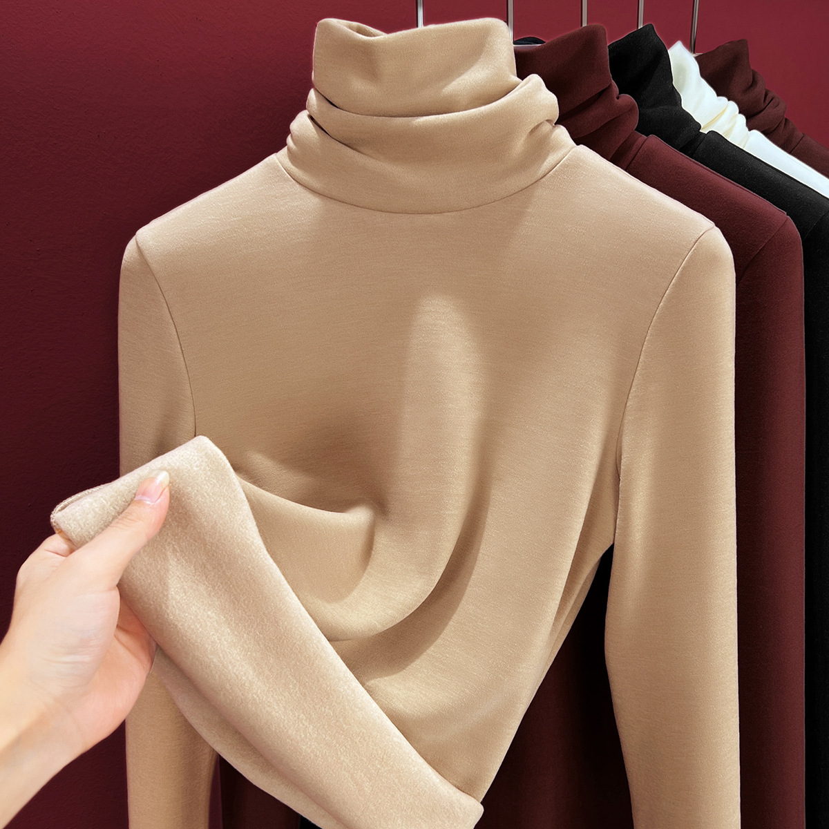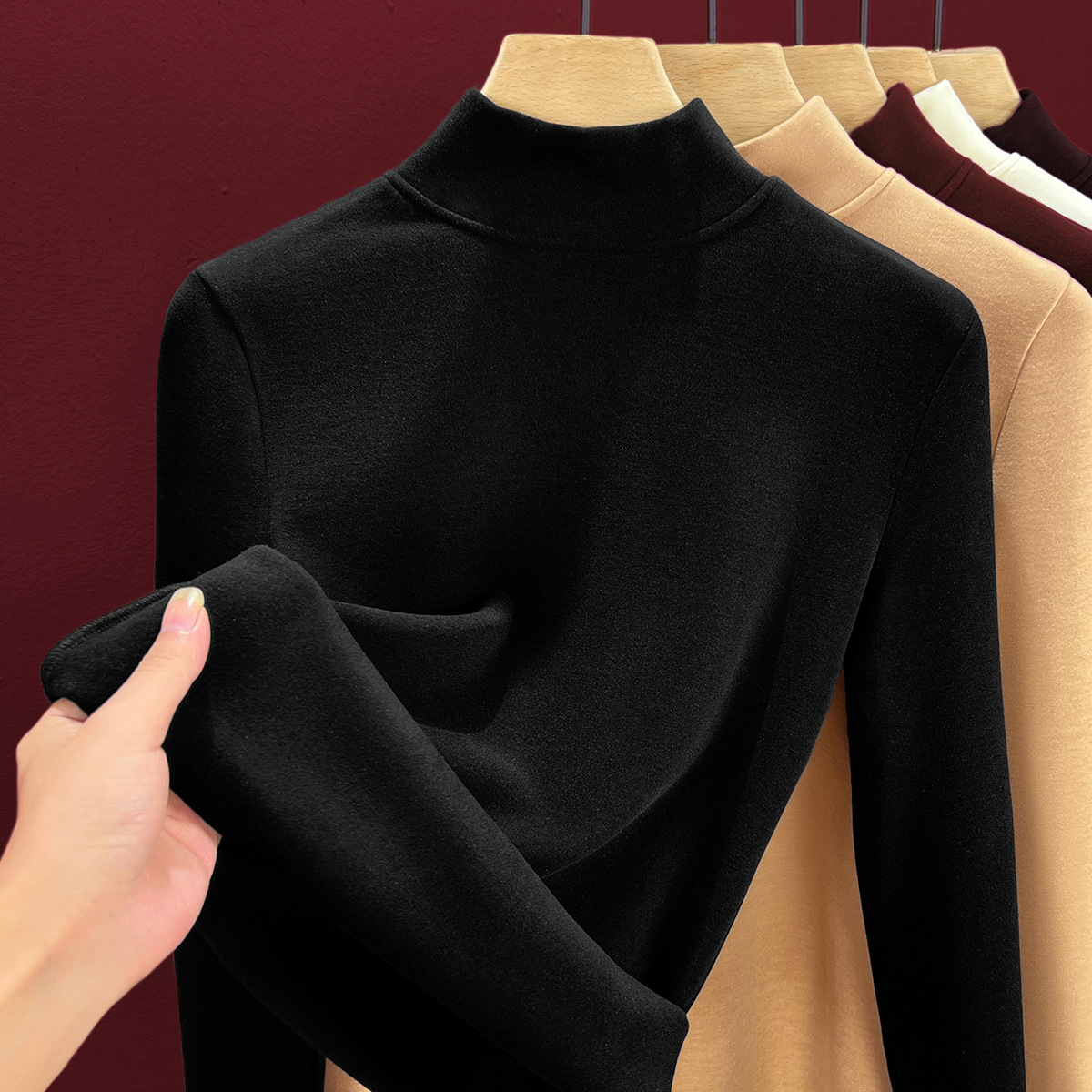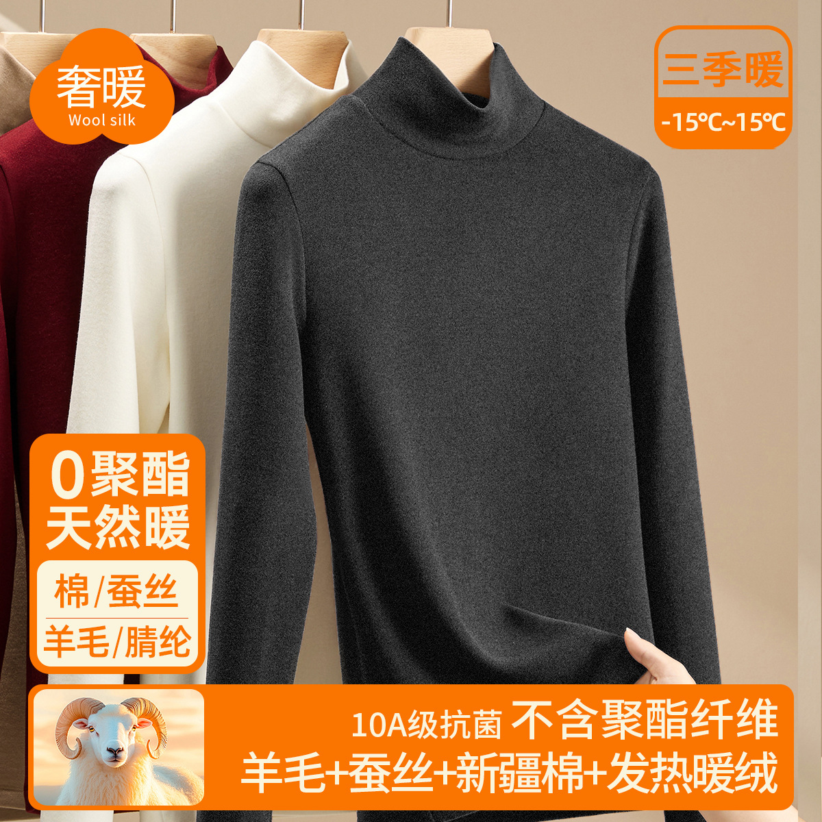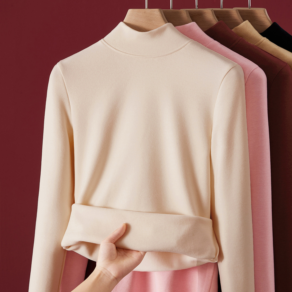 반하이넥 실크 보온 내의 여성용 상의, 양털 안감으로 두꺼워진 이너웨어, 울 혼방 기모 내의, 발열 기능성 가을/겨울 옷스토어 가기