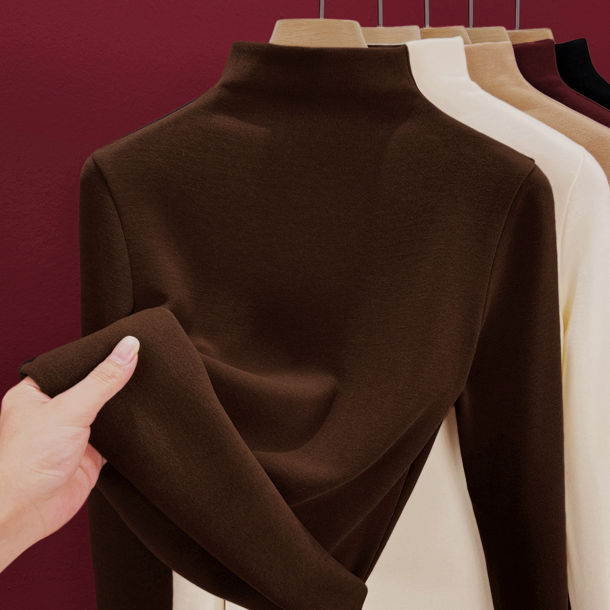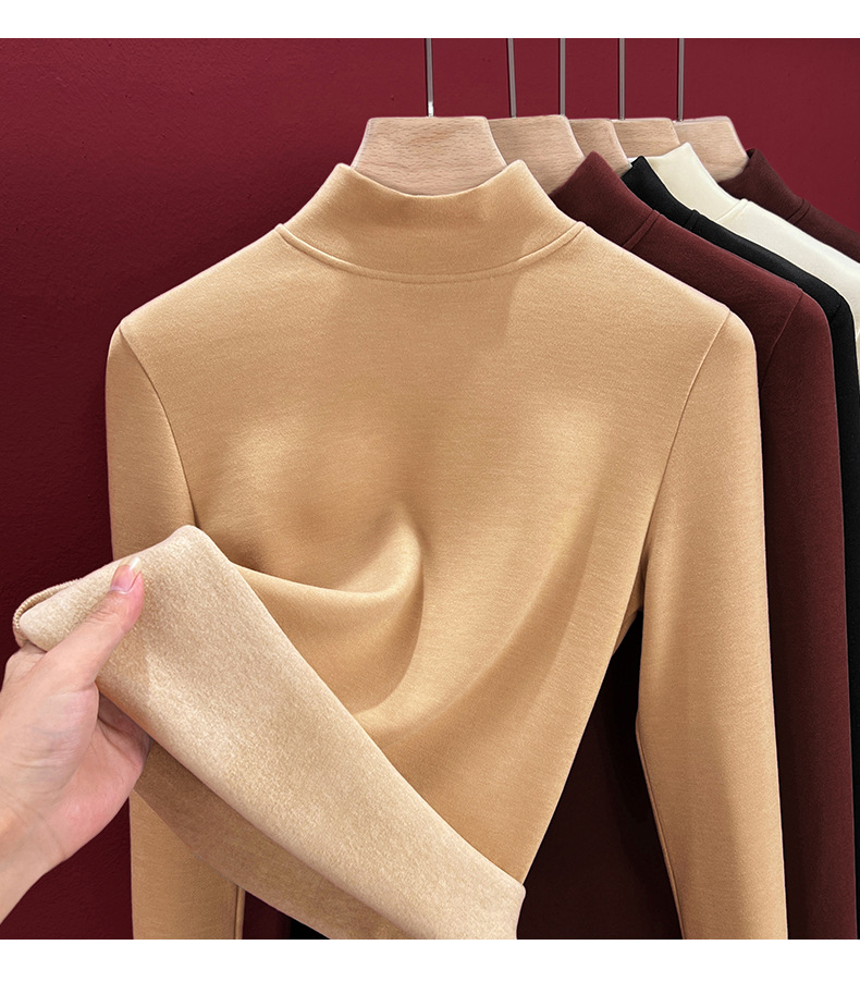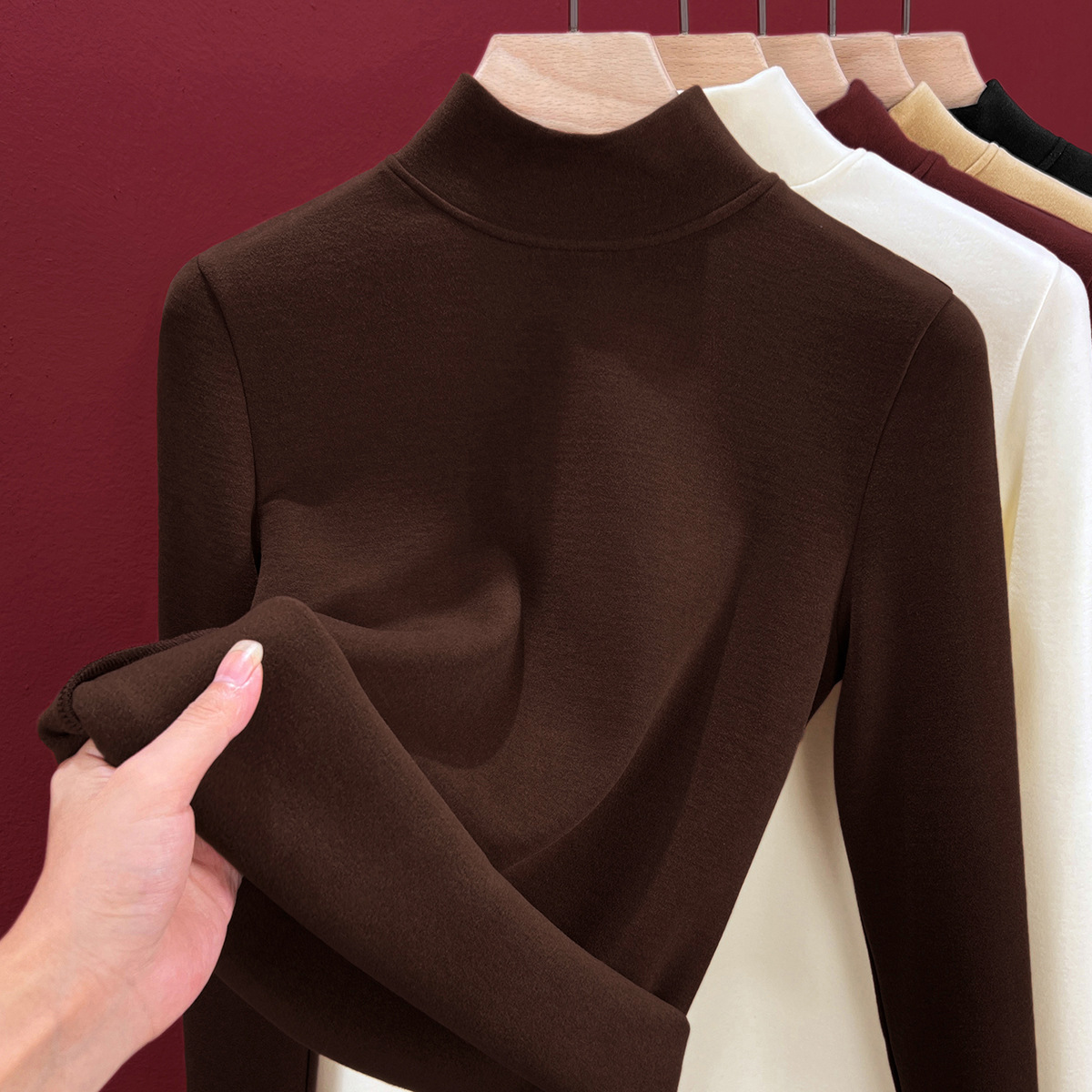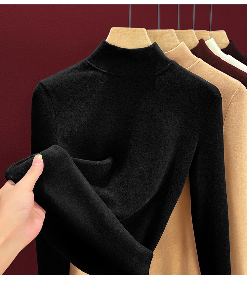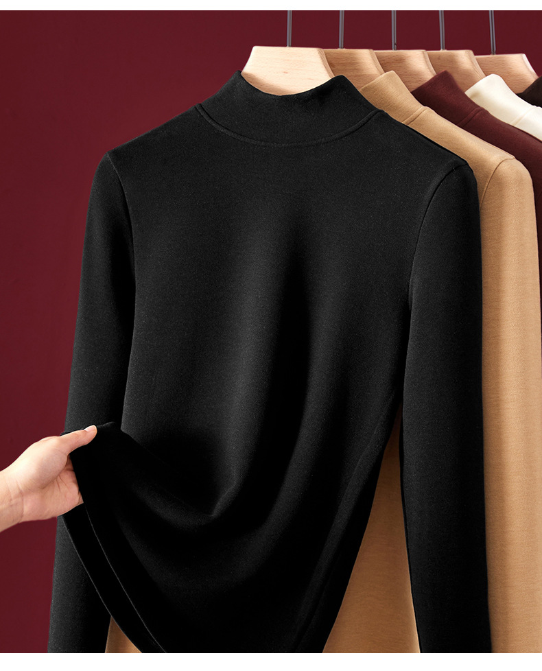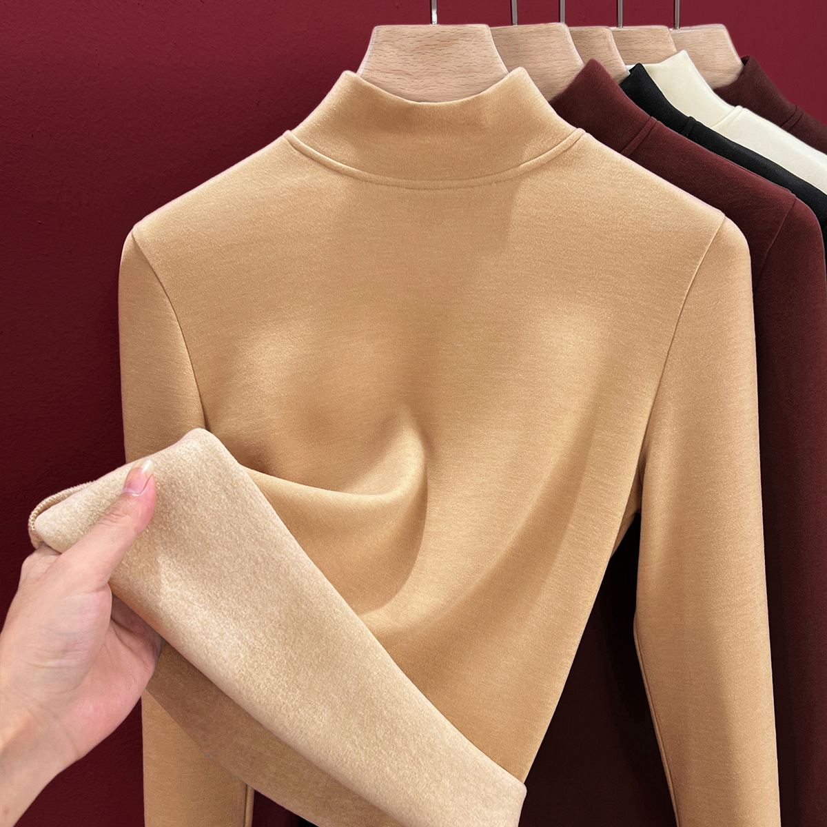 반하이넥 실크 보온 내의 여성용 상의, 양털 안감으로 두꺼워진 이너웨어, 울 혼방 기모 내의, 발열 기능성 가을/겨울 옷스토어 가기