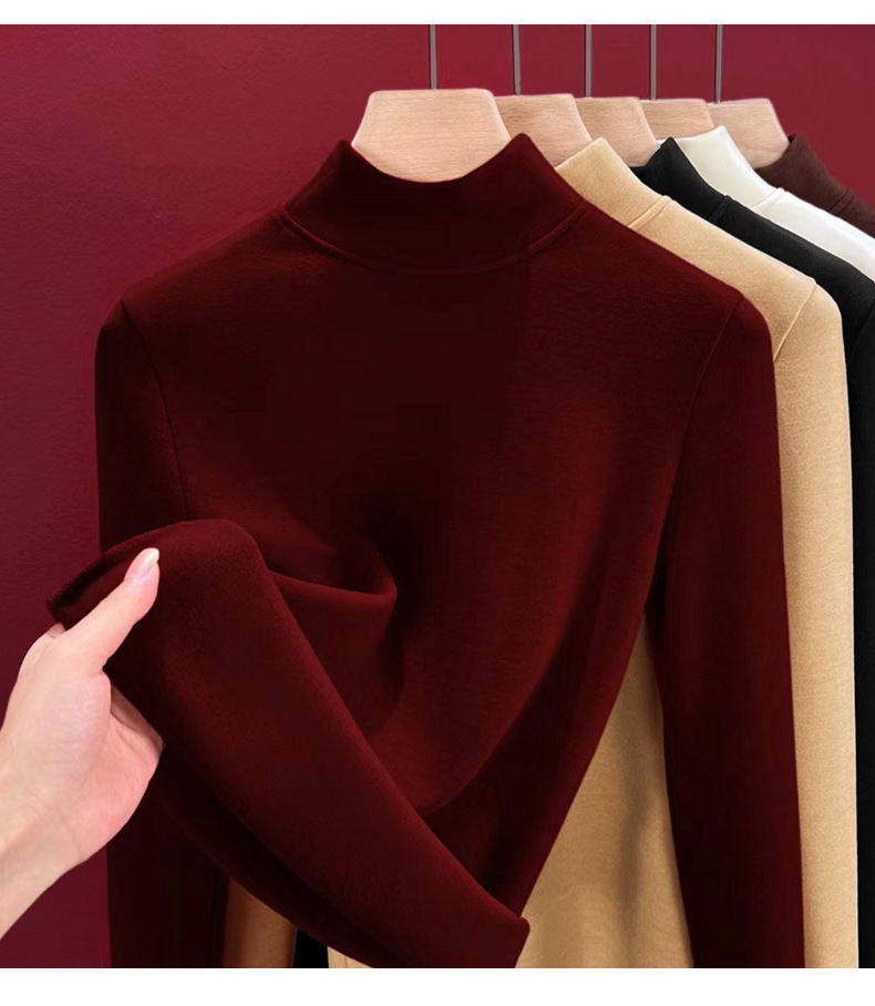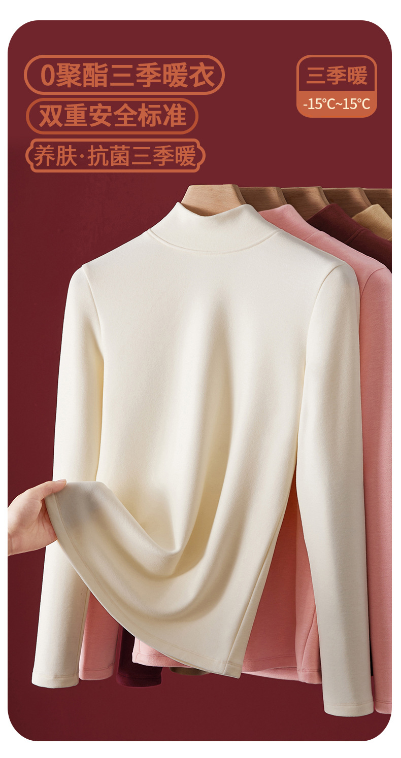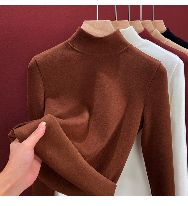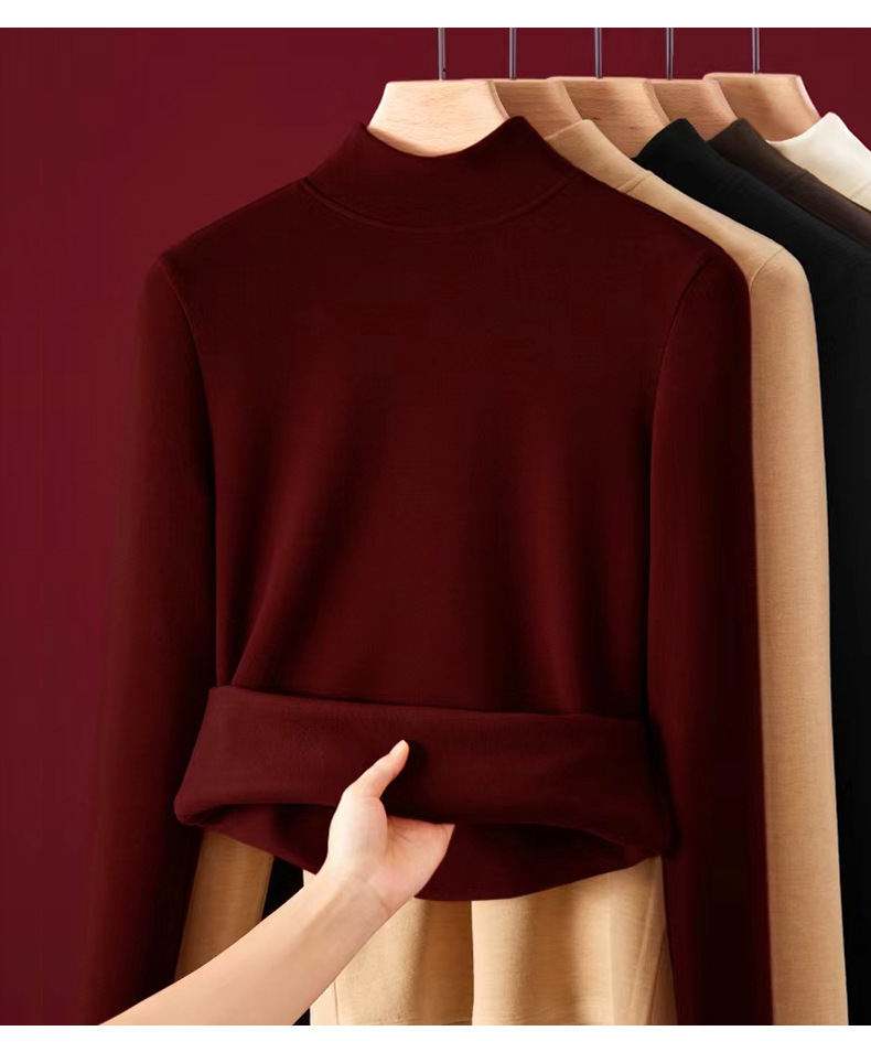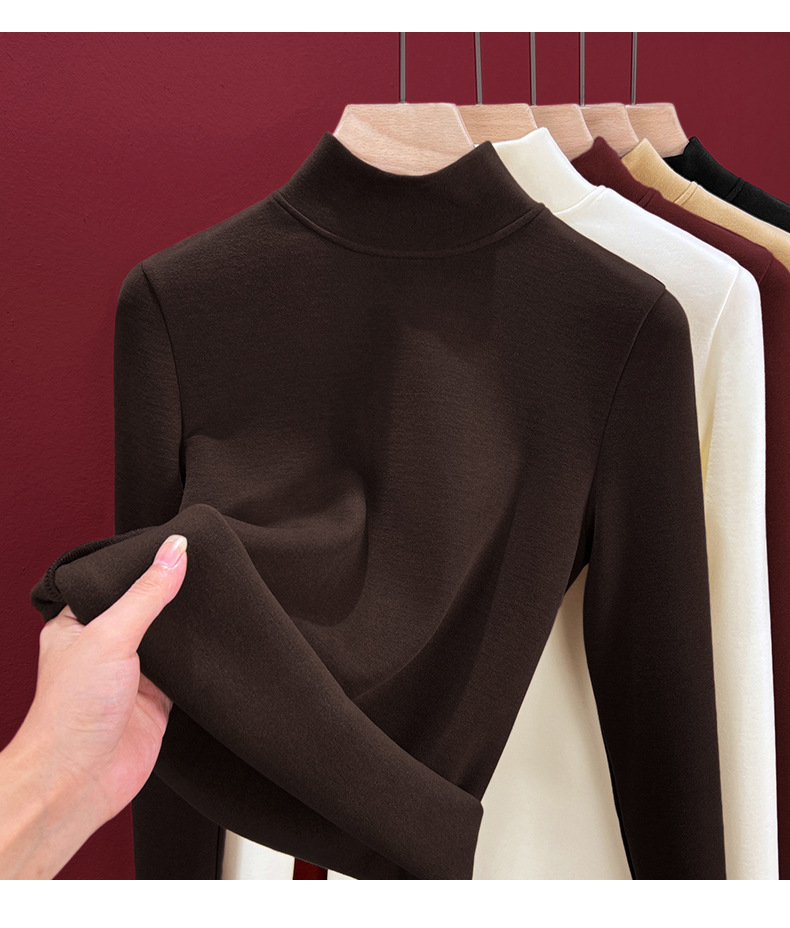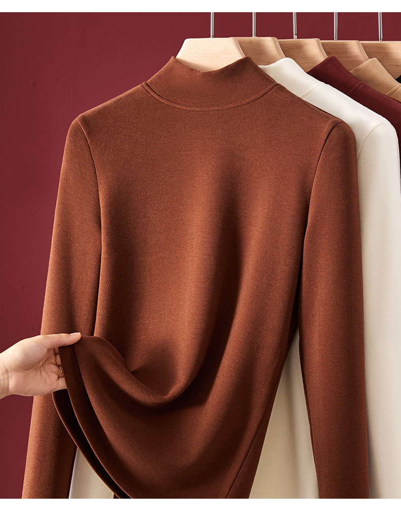 반하이넥 실크 보온 내의 여성용 상의, 양털 안감으로 두꺼워진 이너웨어, 울 혼방 기모 내의, 발열 기능성 가을/겨울 옷스토어 가기