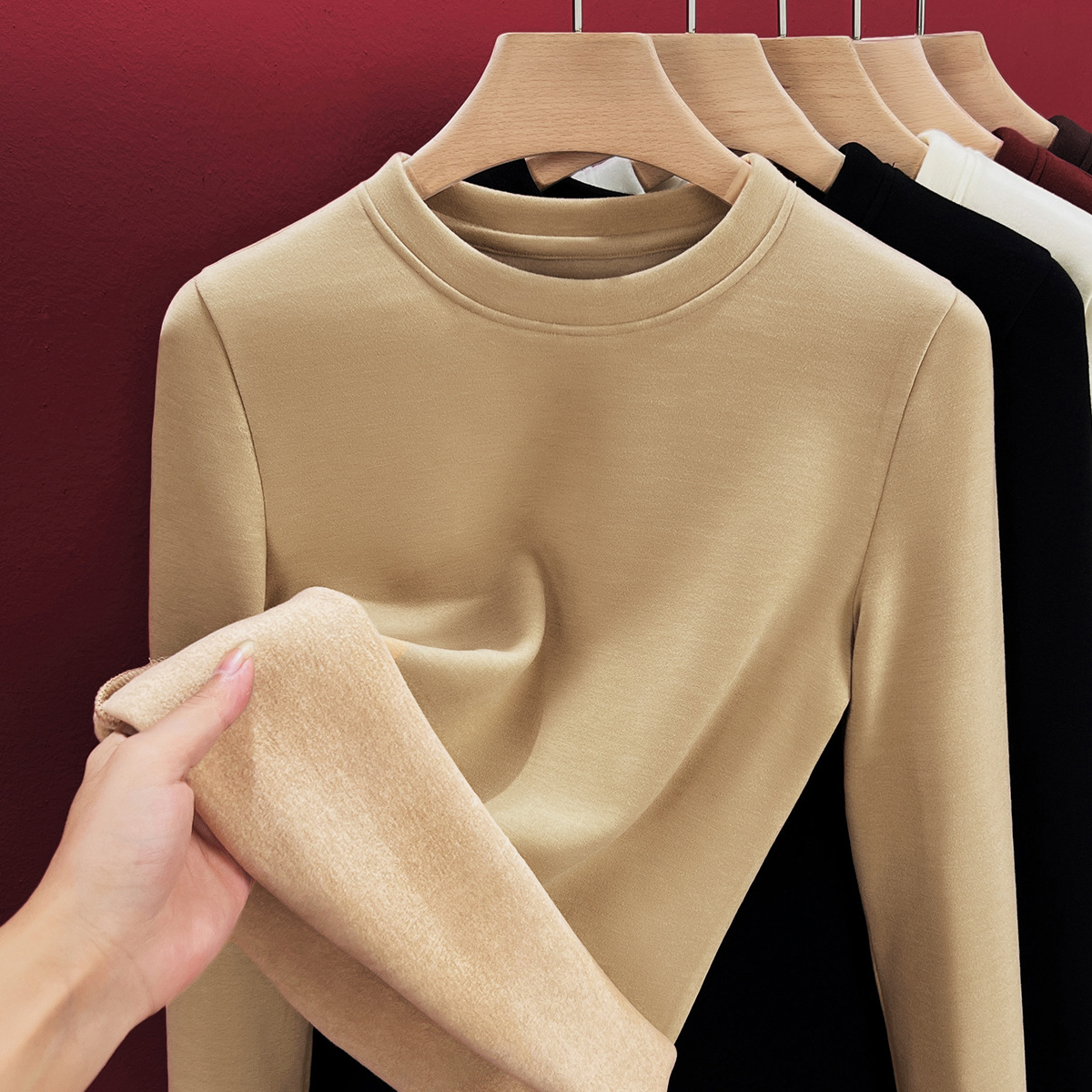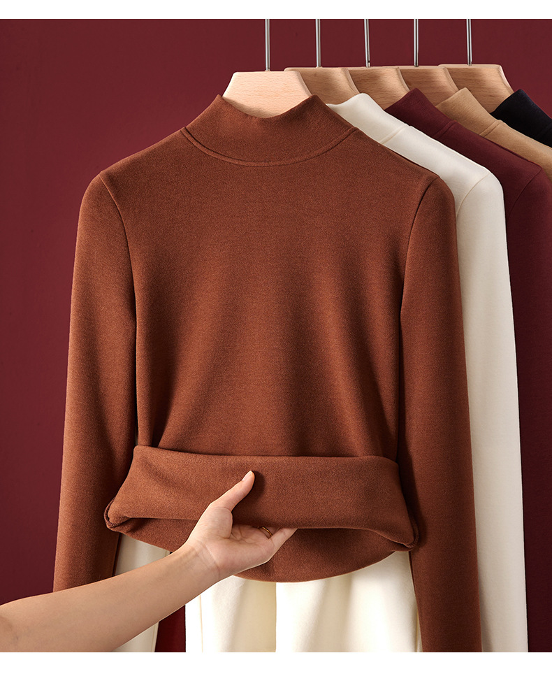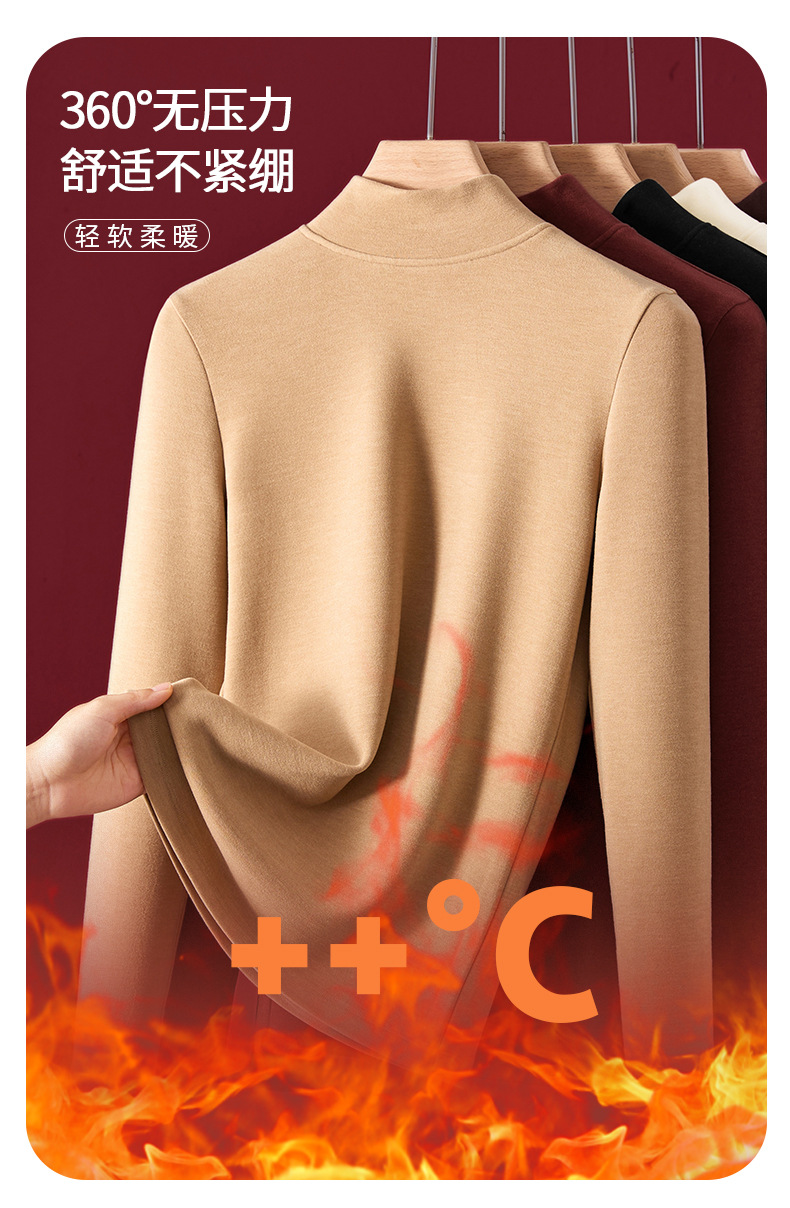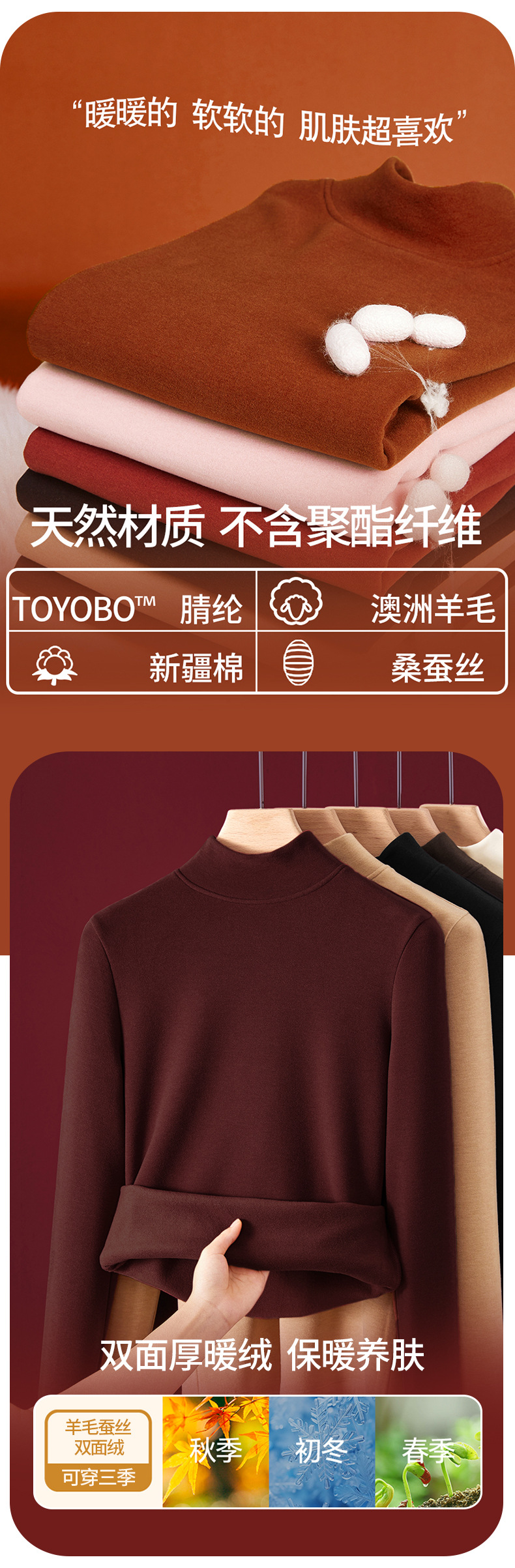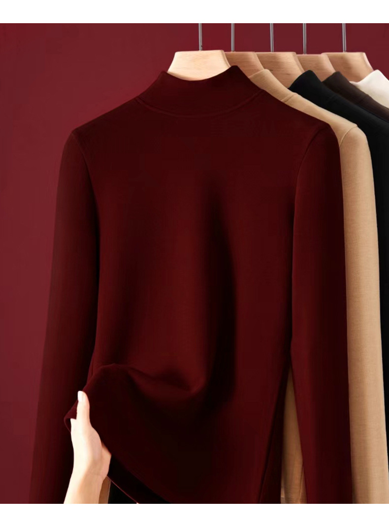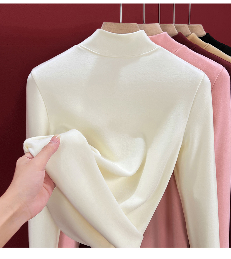 반하이넥 실크 보온 내의 여성용 상의, 양털 안감으로 두꺼워진 이너웨어, 울 혼방 기모 내의, 발열 기능성 가을/겨울 옷스토어 가기