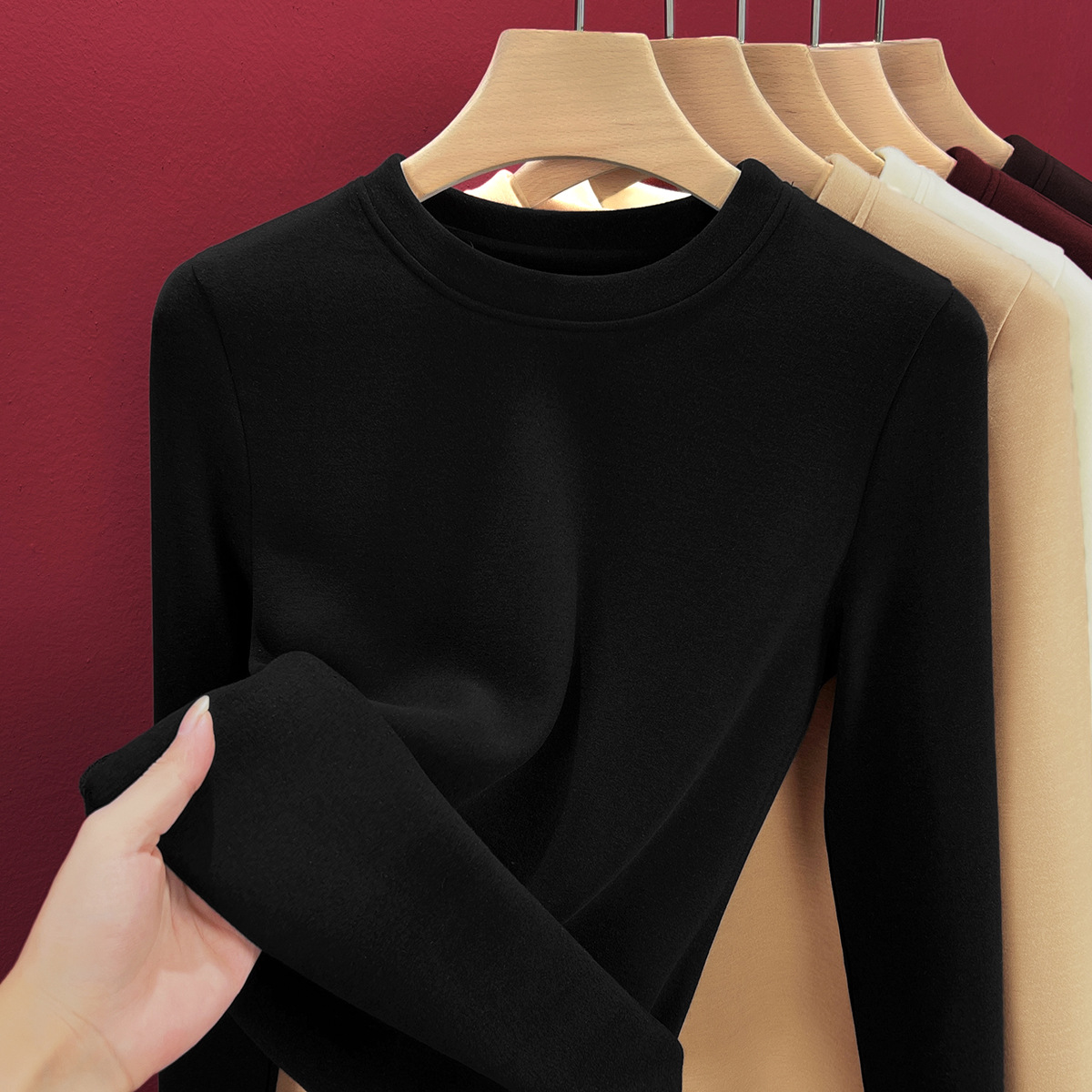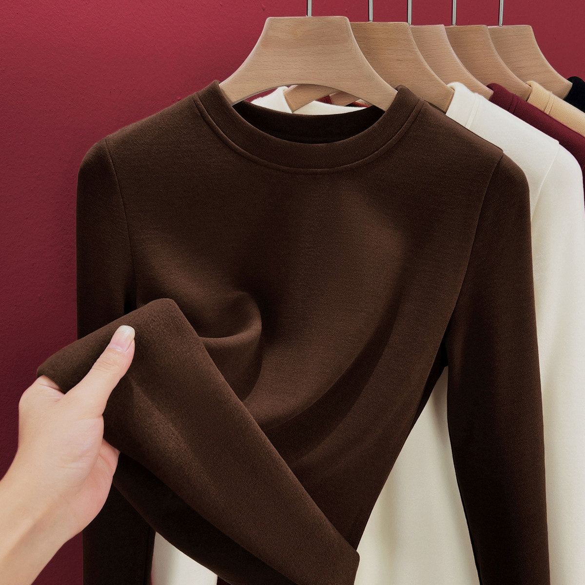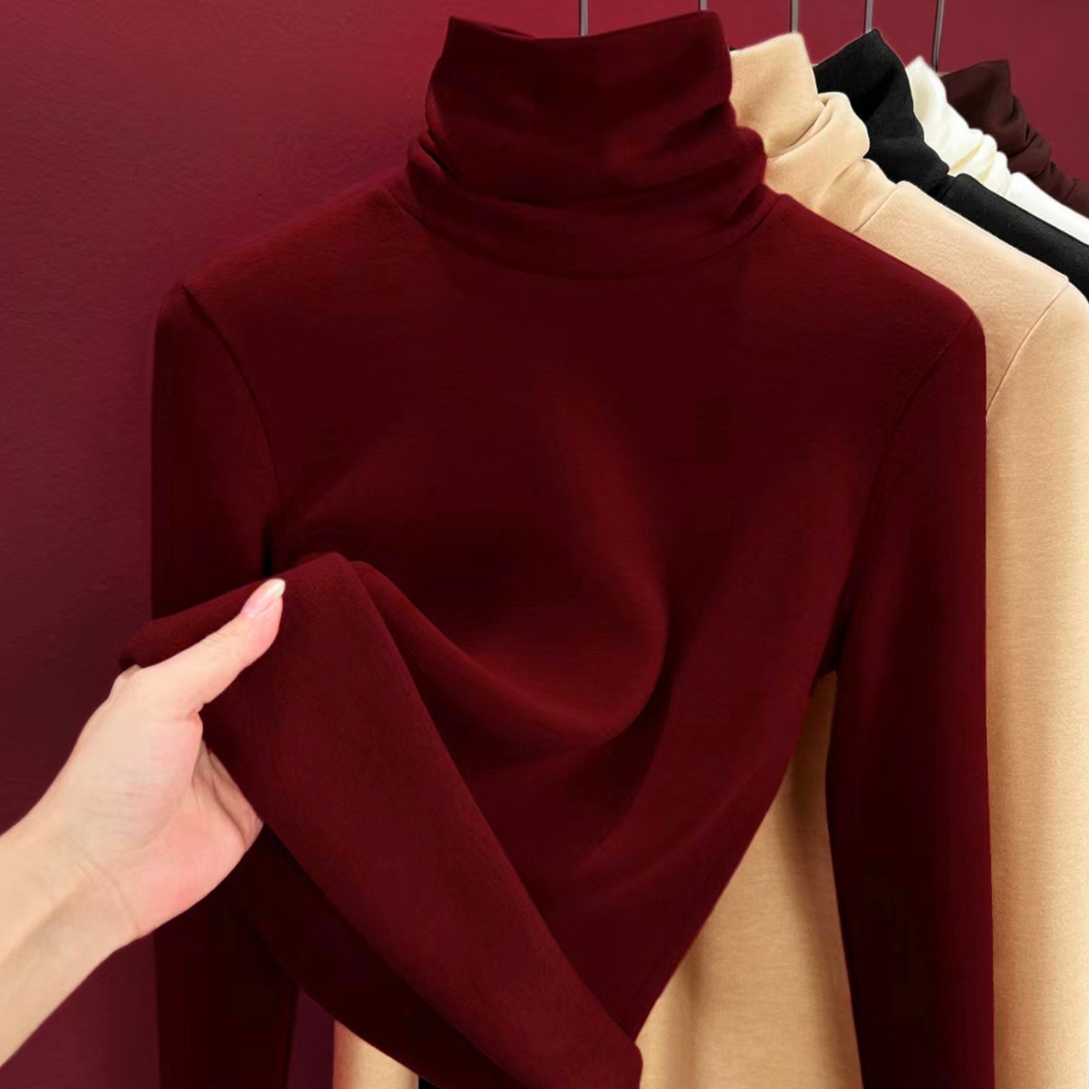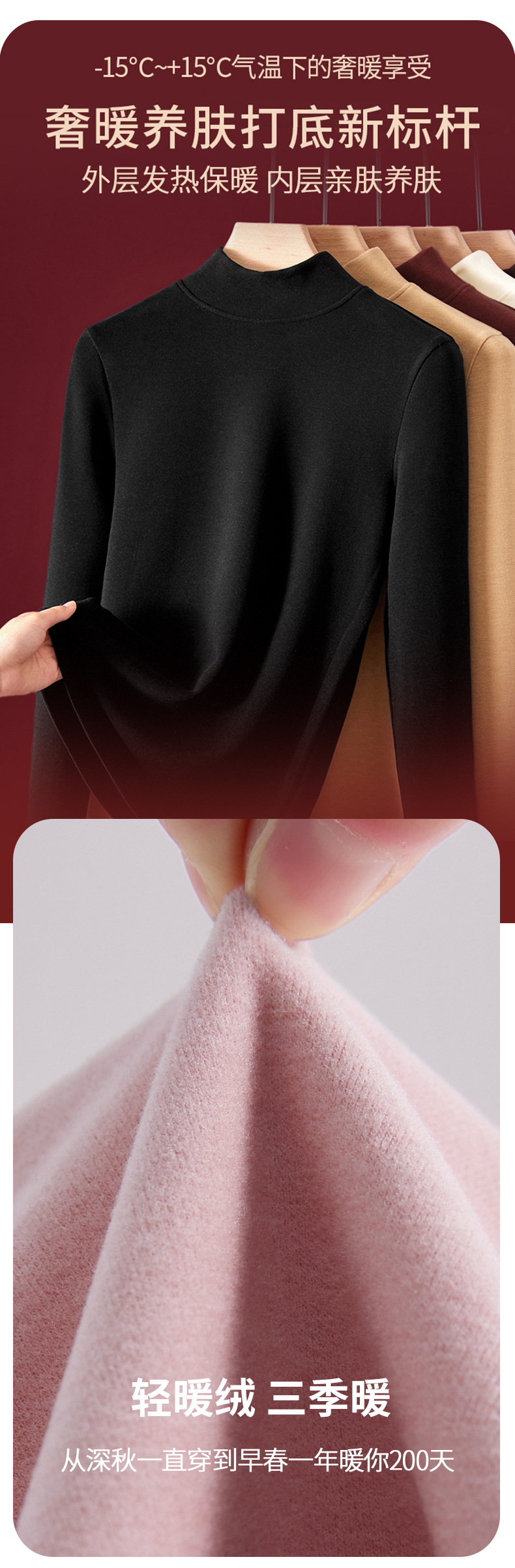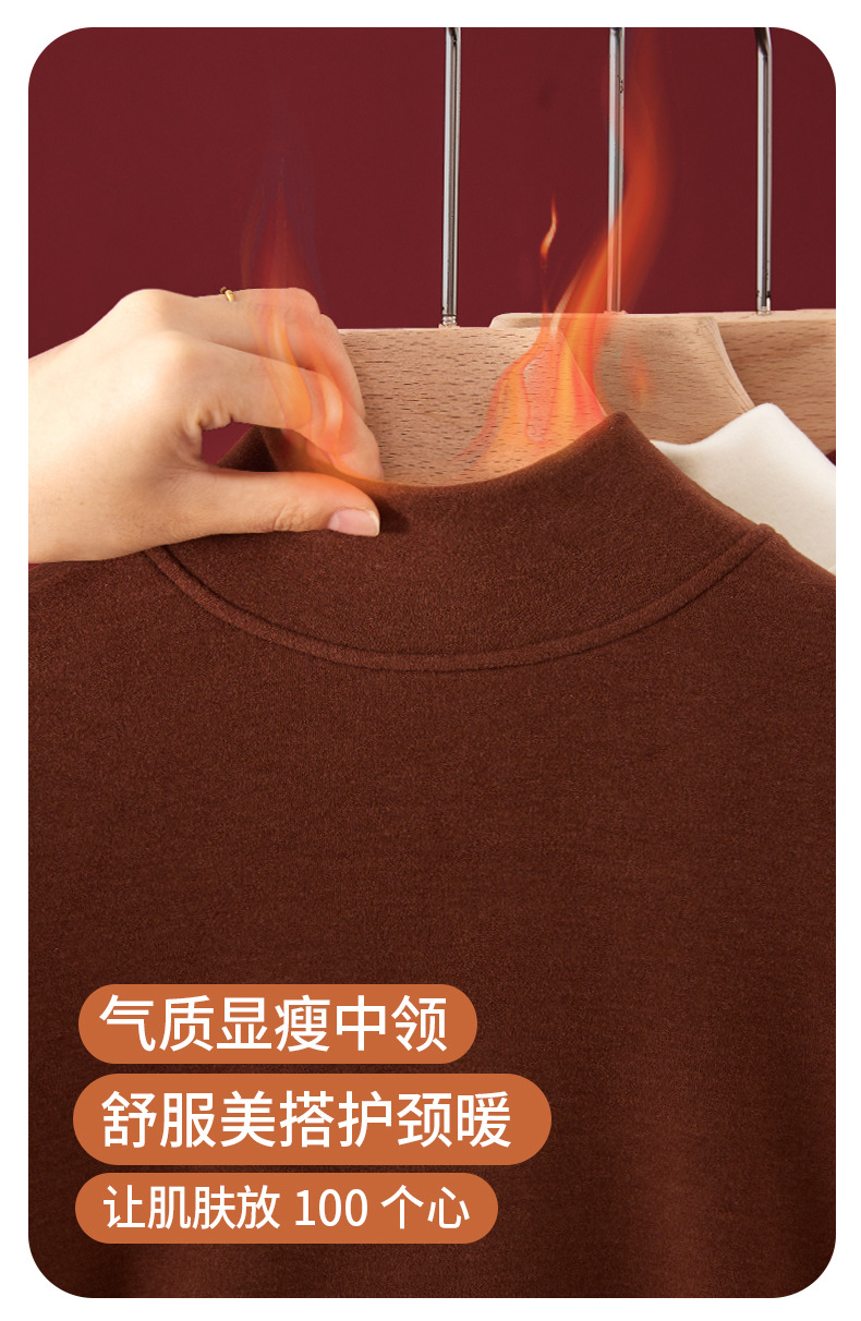 반하이넥 실크 보온 내의 여성용 상의, 양털 안감으로 두꺼워진 이너웨어, 울 혼방 기모 내의, 발열 기능성 가을/겨울 옷스토어 가기