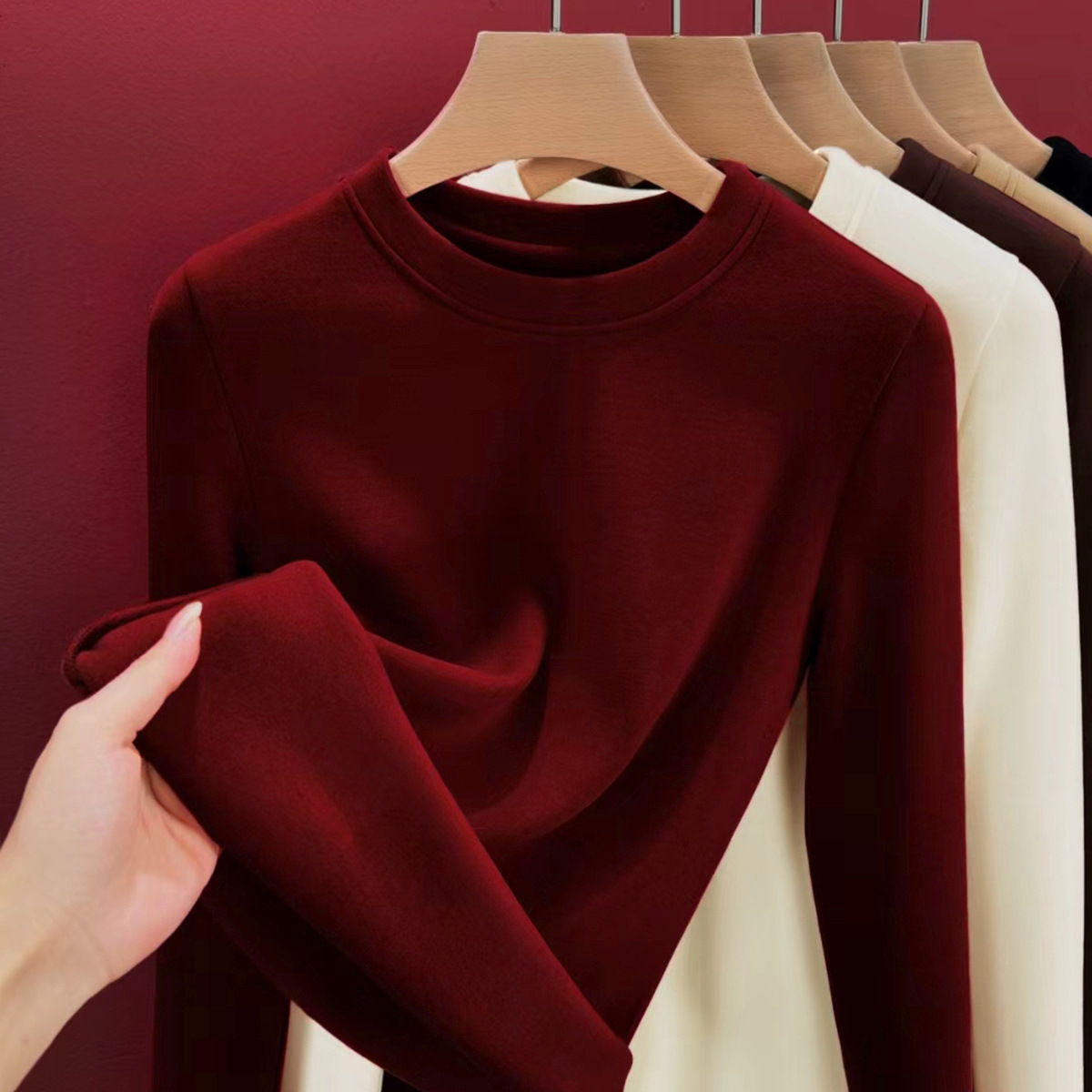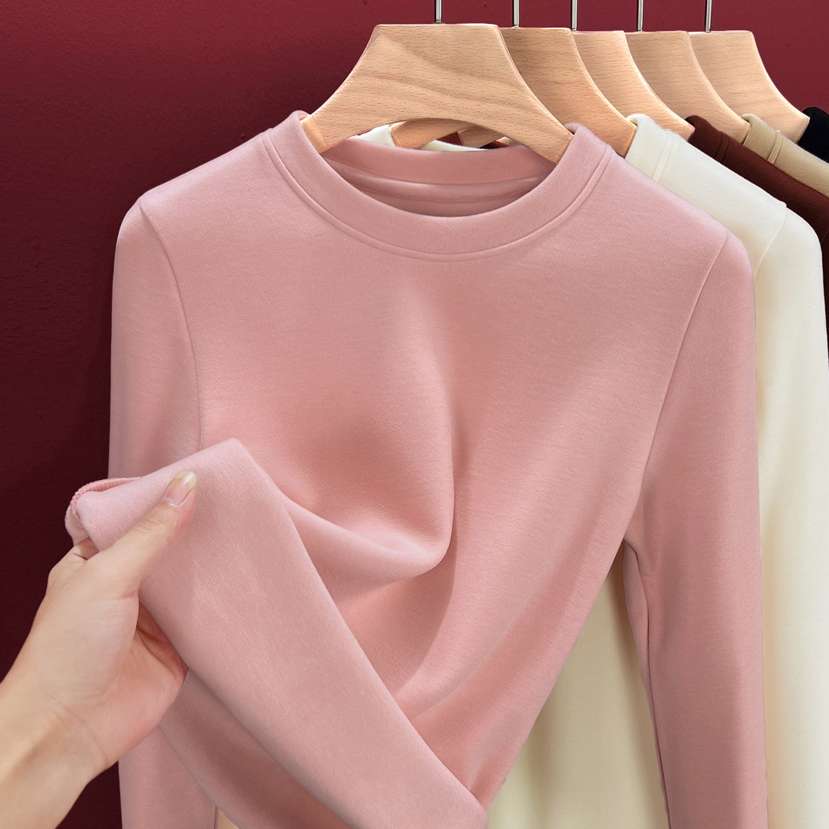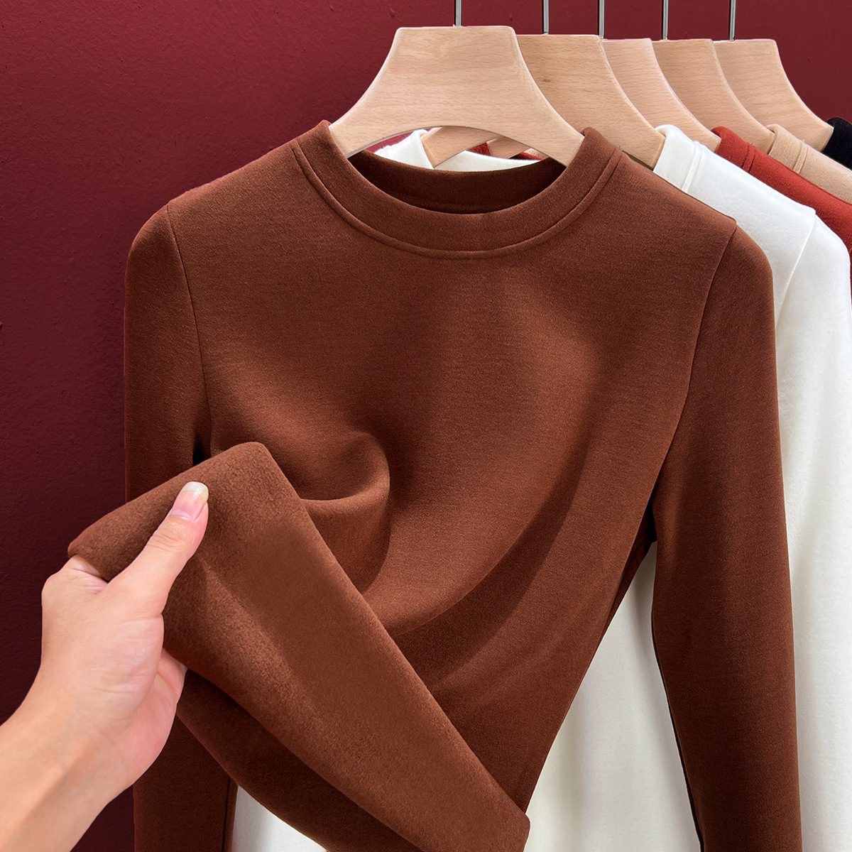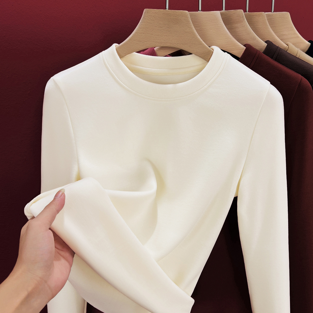 반하이넥 실크 보온 내의 여성용 상의, 양털 안감으로 두꺼워진 이너웨어, 울 혼방 기모 내의, 발열 기능성 가을/겨울 옷스토어 가기
