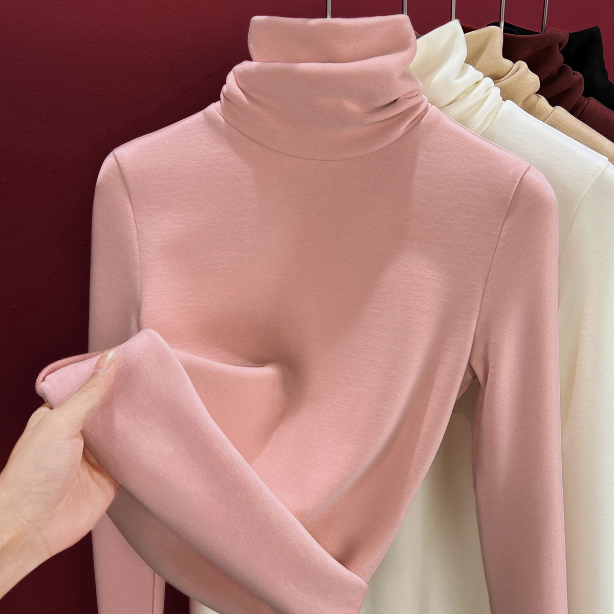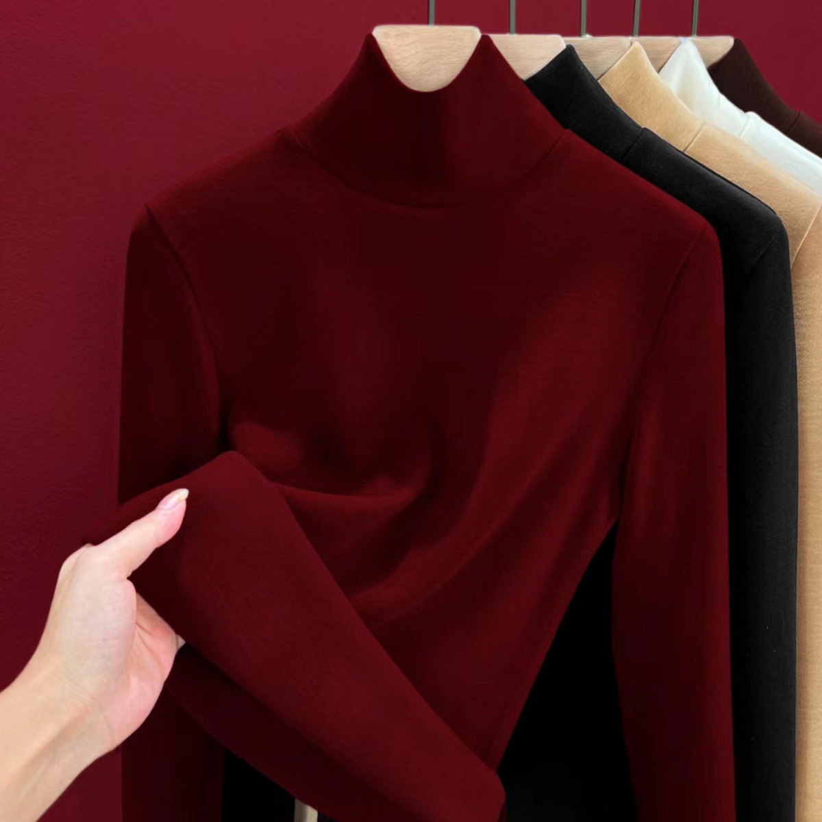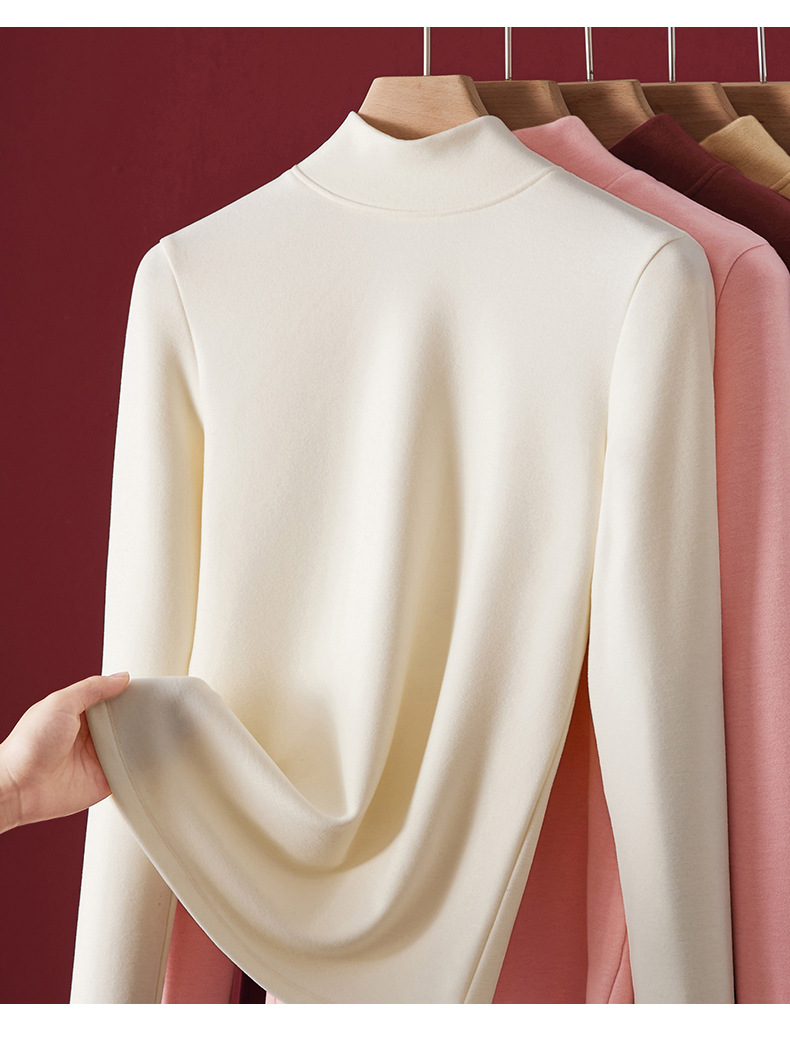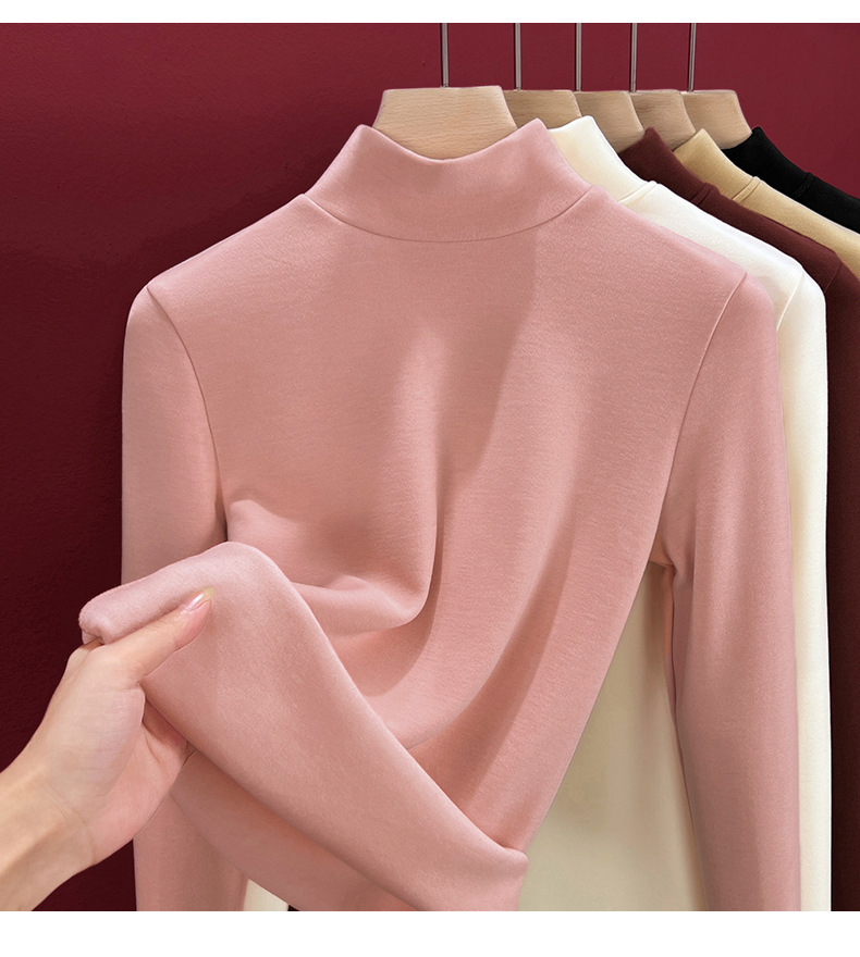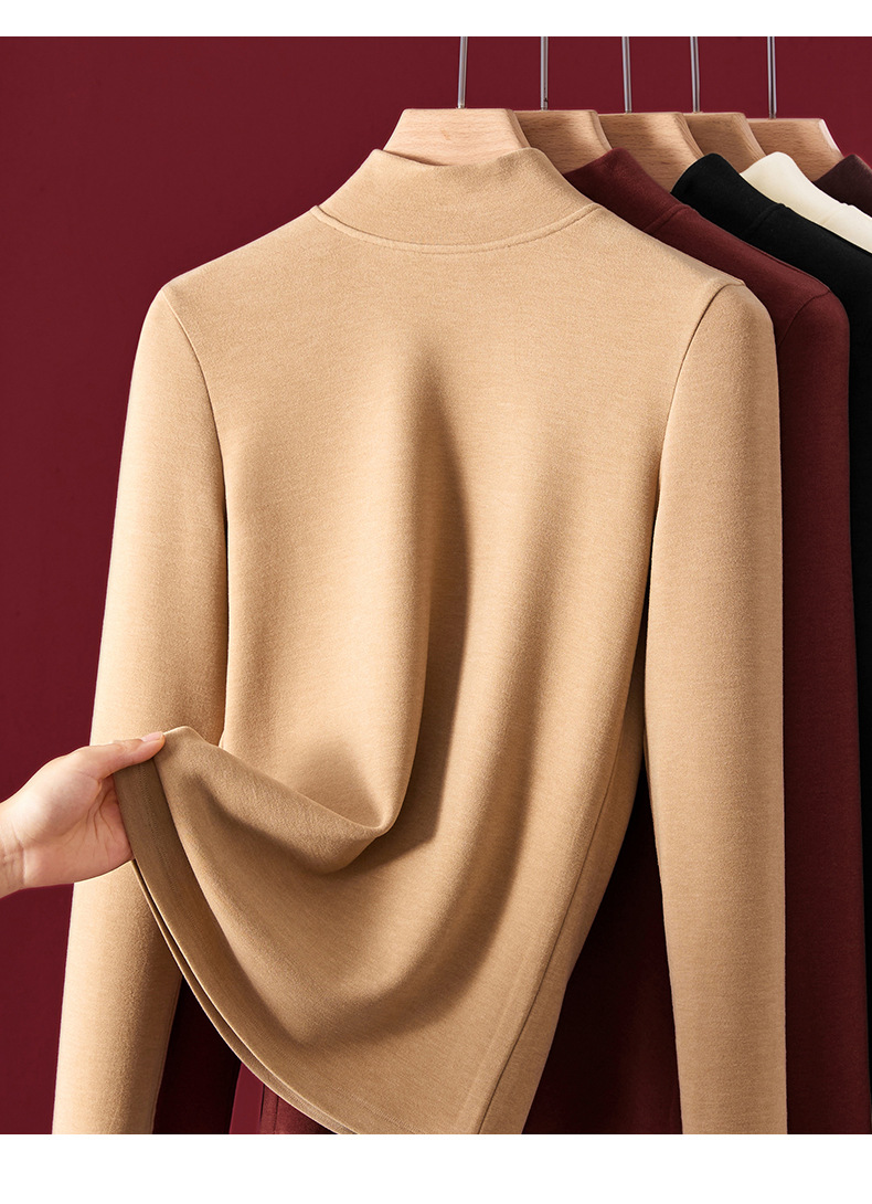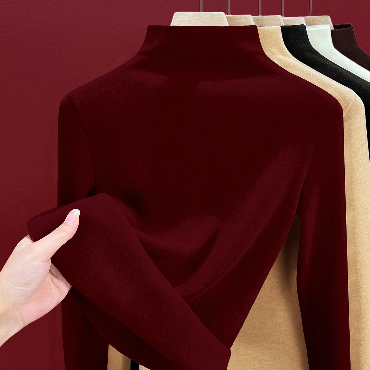 반하이넥 실크 보온 내의 여성용 상의, 양털 안감으로 두꺼워진 이너웨어, 울 혼방 기모 내의, 발열 기능성 가을/겨울 옷