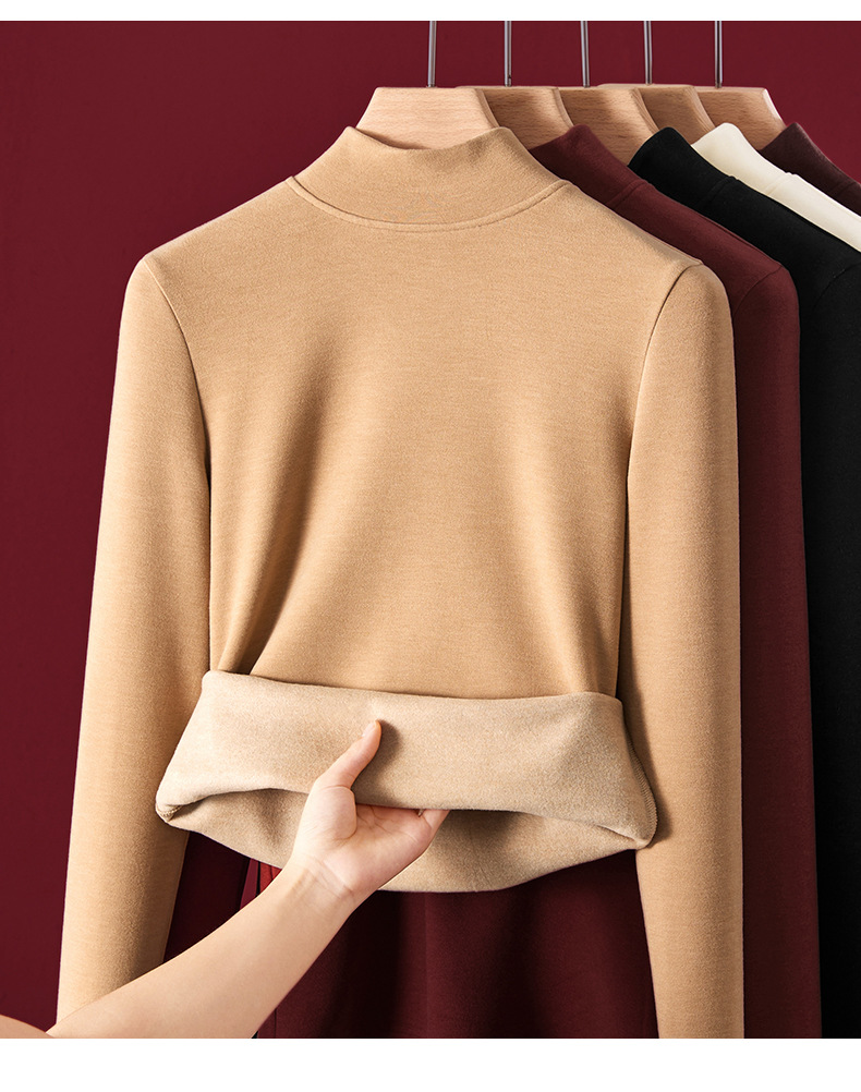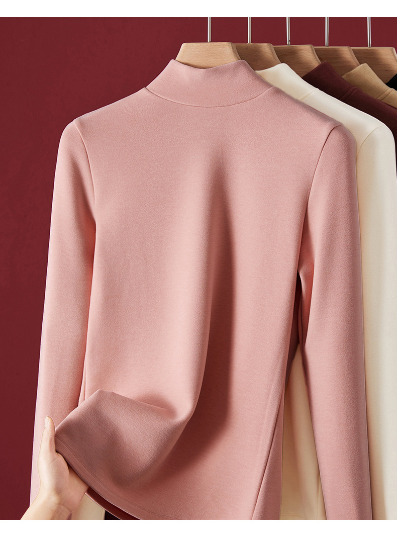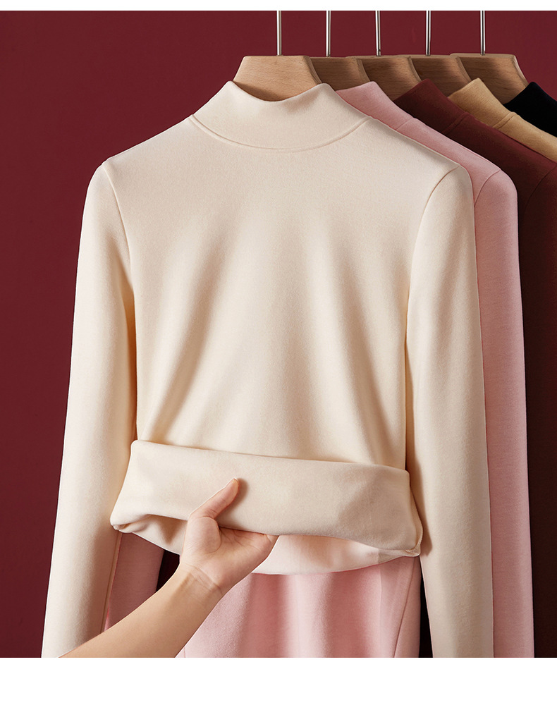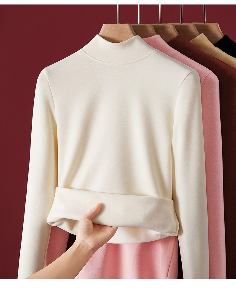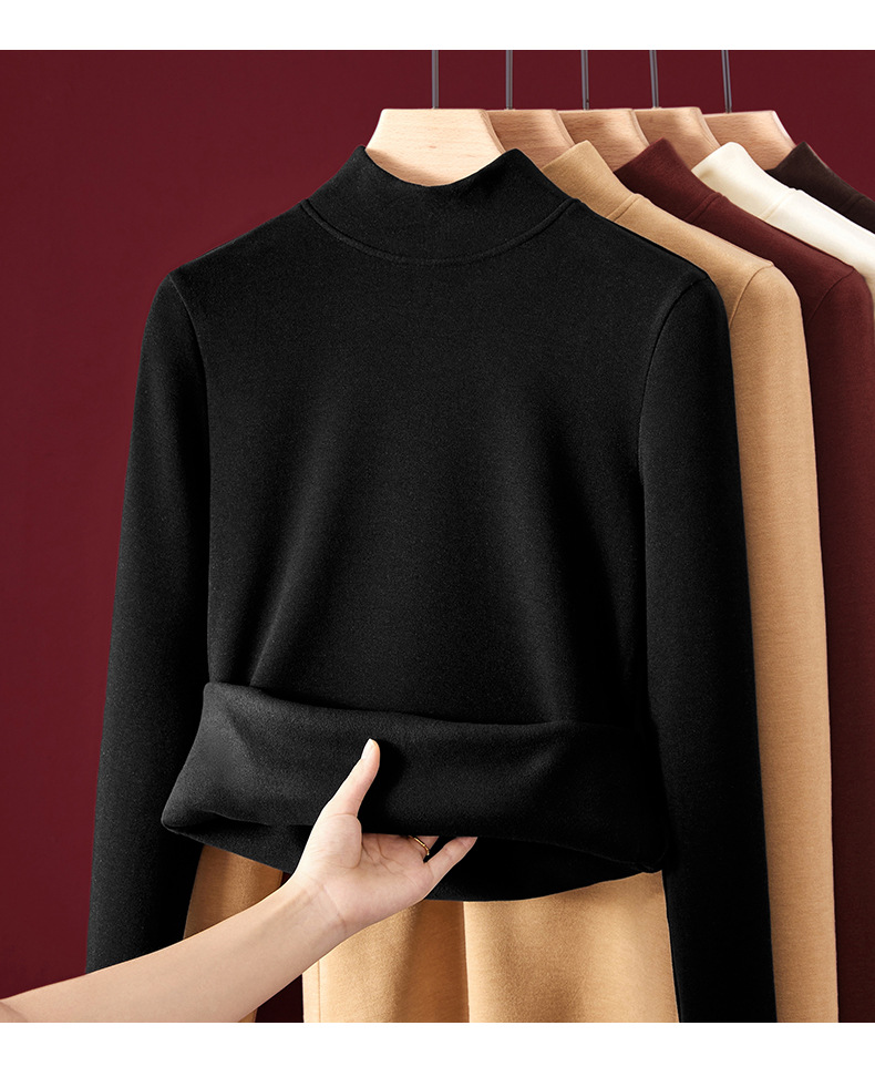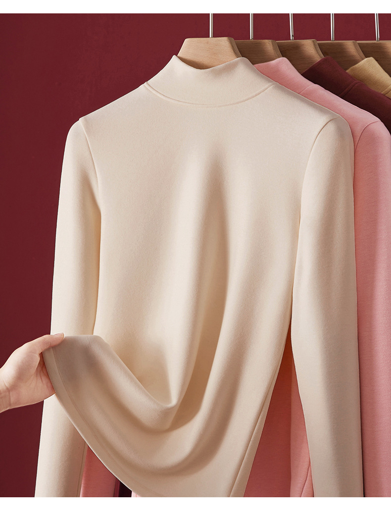 반하이넥 실크 보온 내의 여성용 상의, 양털 안감으로 두꺼워진 이너웨어, 울 혼방 기모 내의, 발열 기능성 가을/겨울 옷
