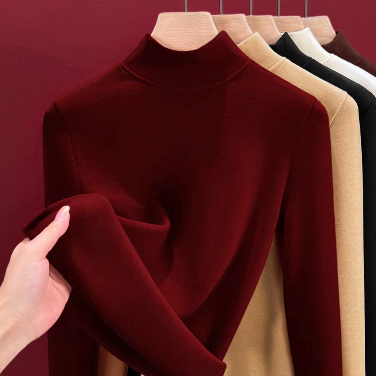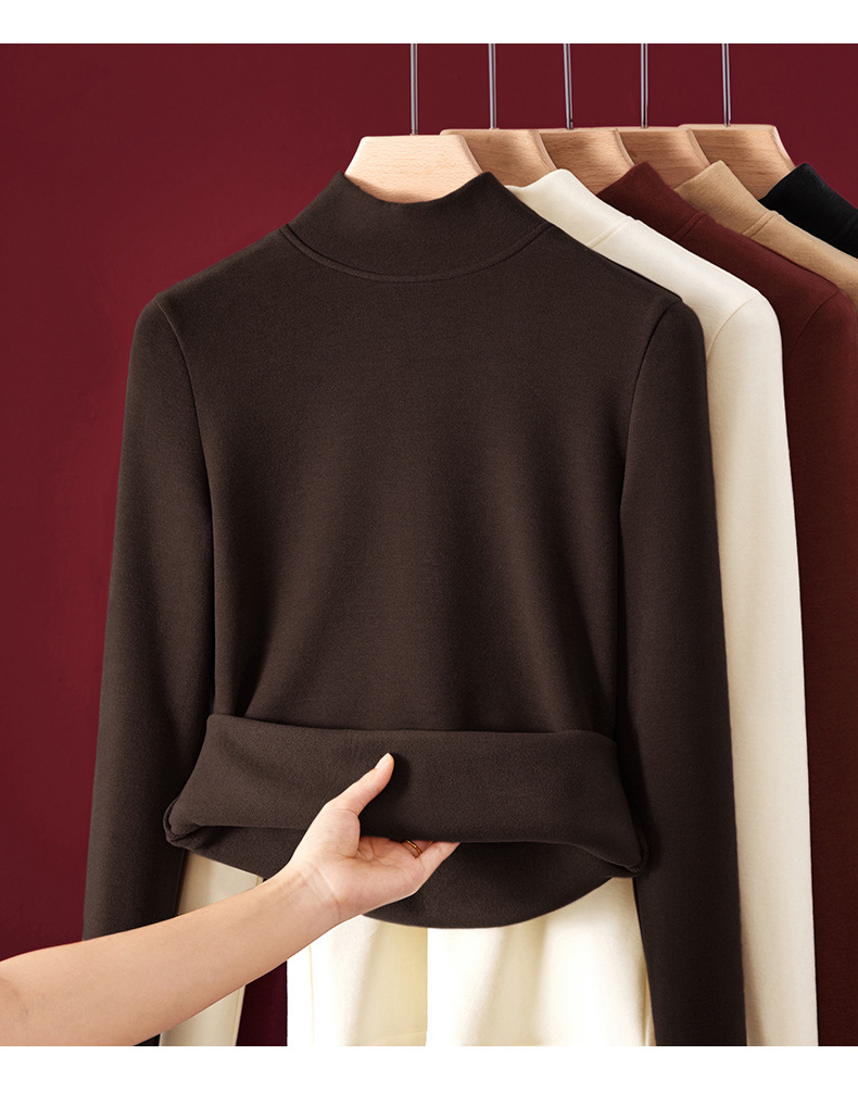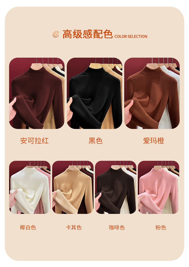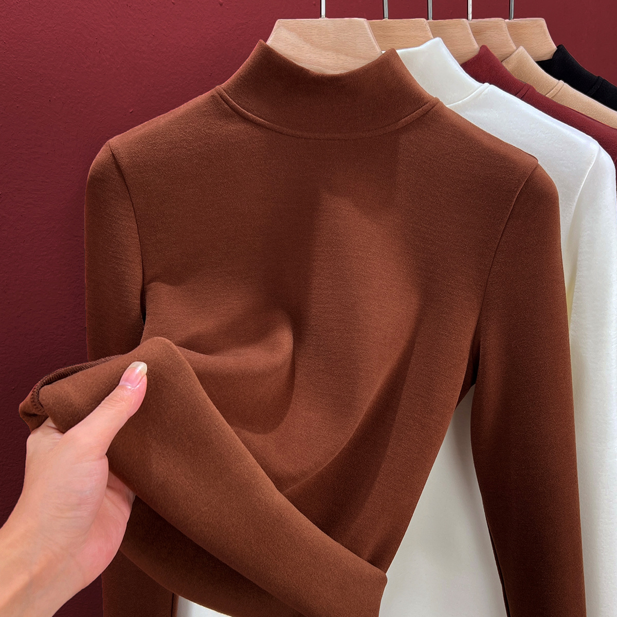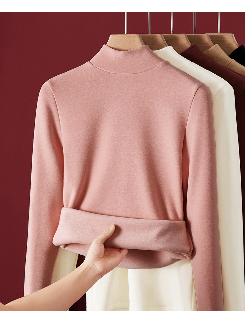 반하이넥 실크 보온 내의 여성용 상의, 양털 안감으로 두꺼워진 이너웨어, 울 혼방 기모 내의, 발열 기능성 가을/겨울 옷