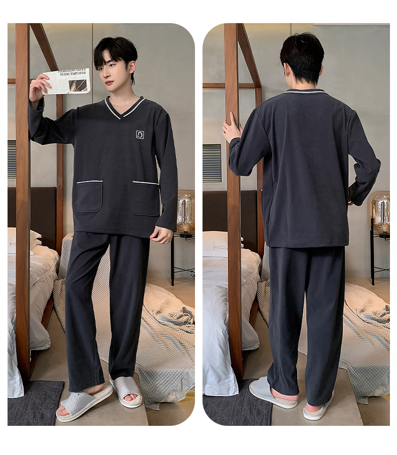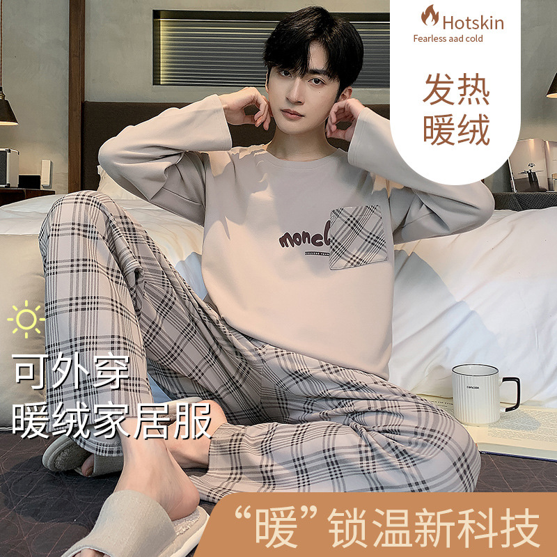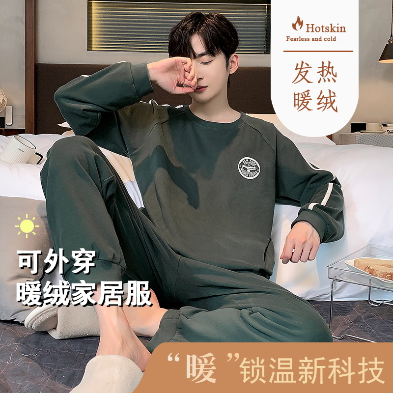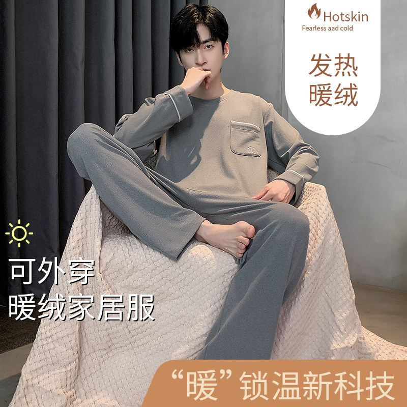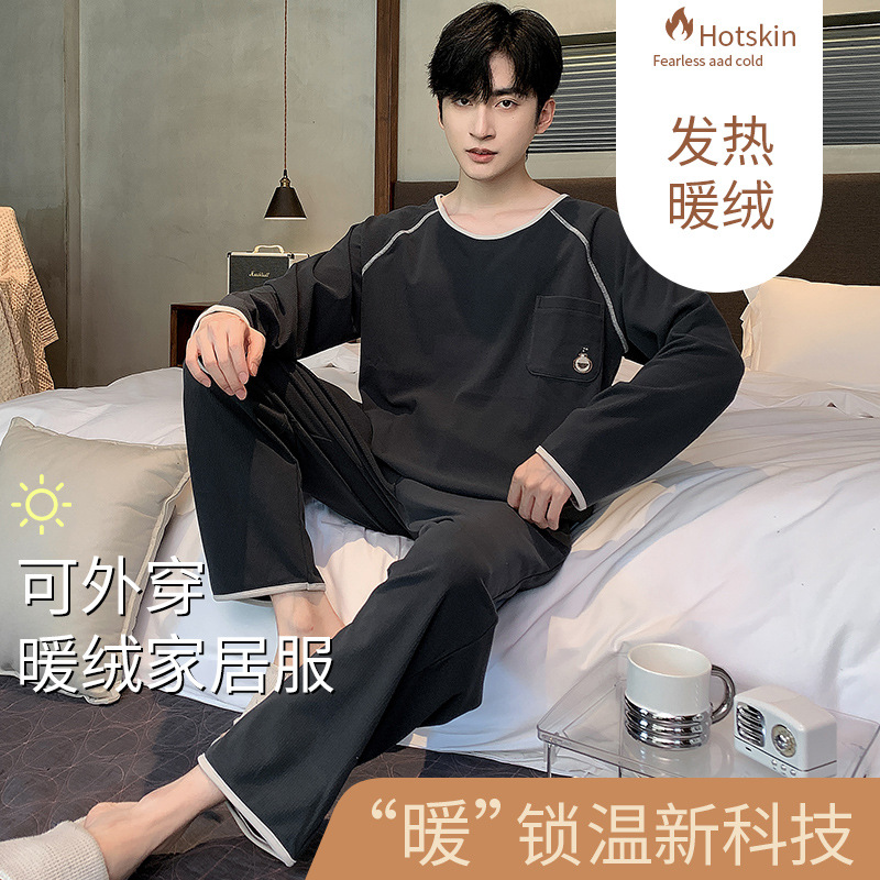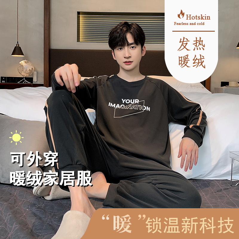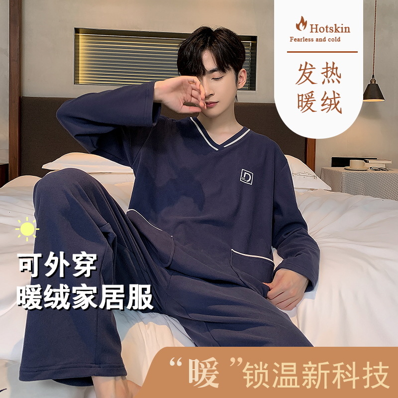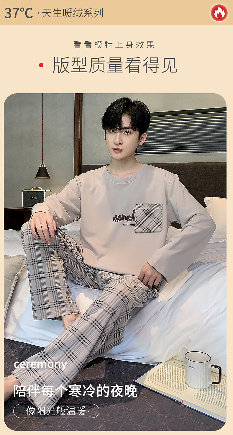 Yingzitong 가을 겨울 기모 두꺼운 벨벳 남성 잠옷 세트 한국 스타일 캐주얼 따뜻한 집 옷스토어 가기