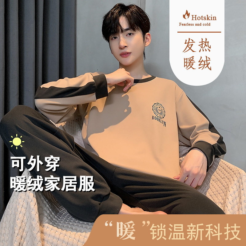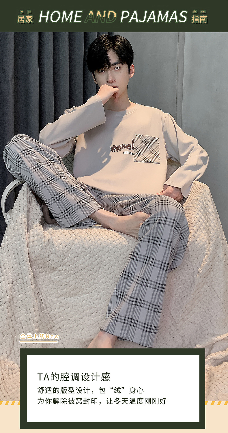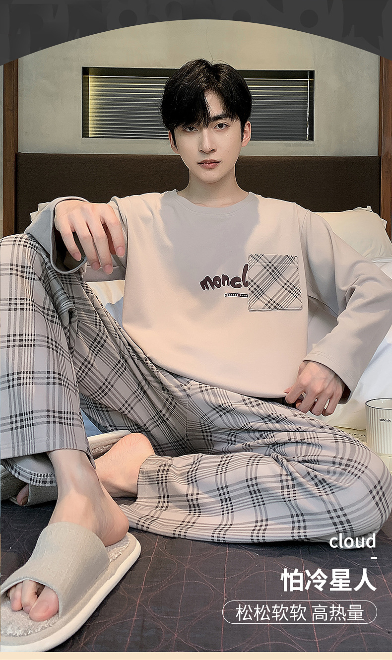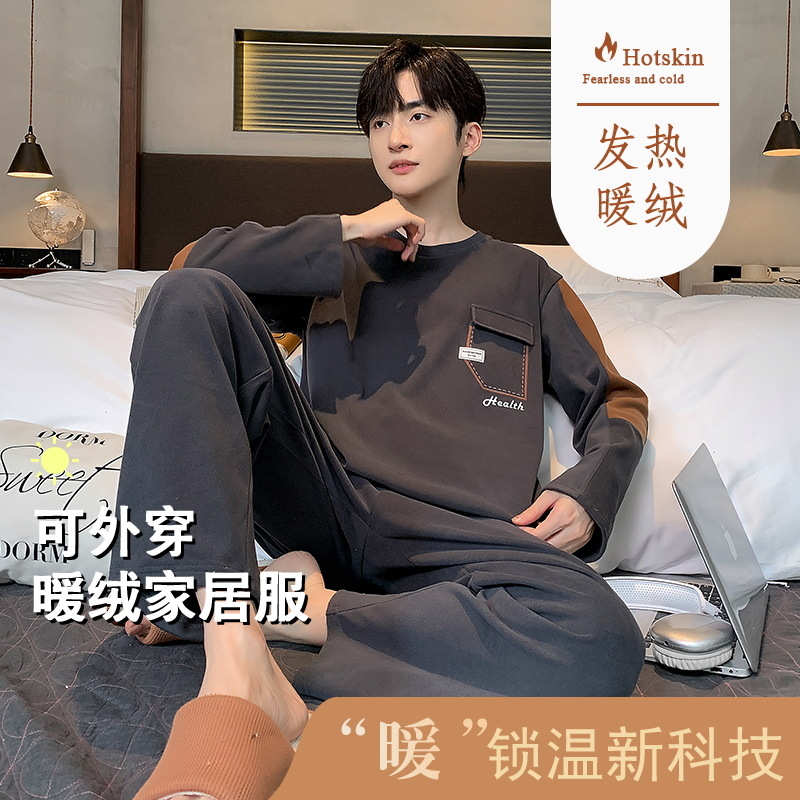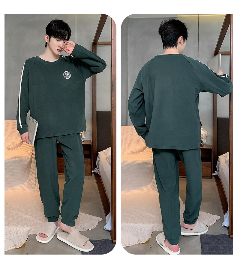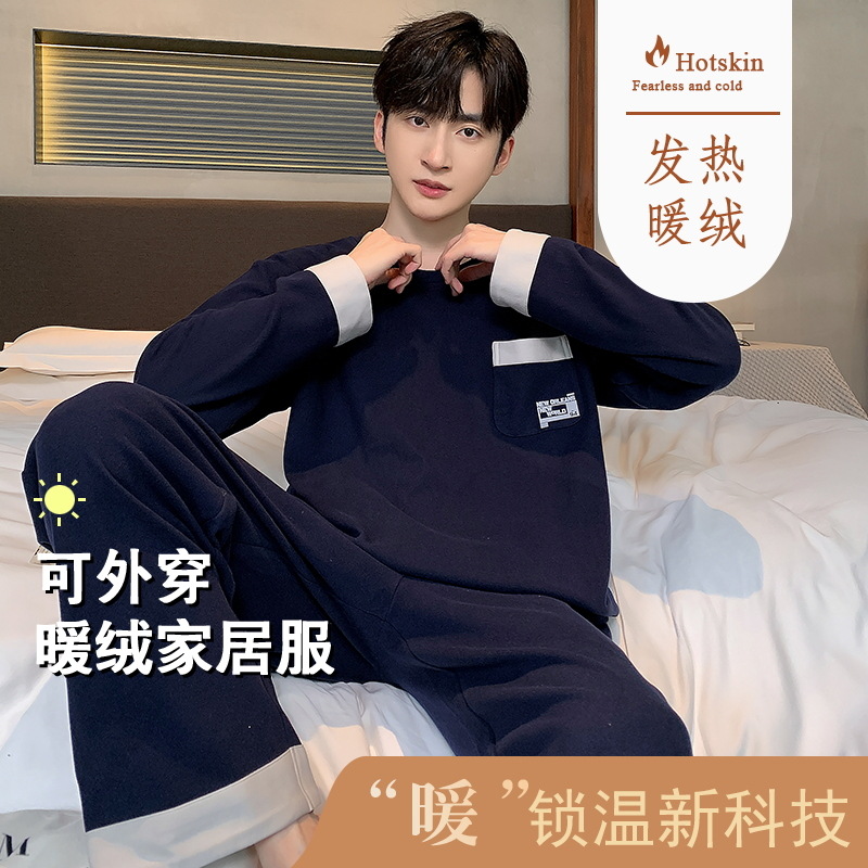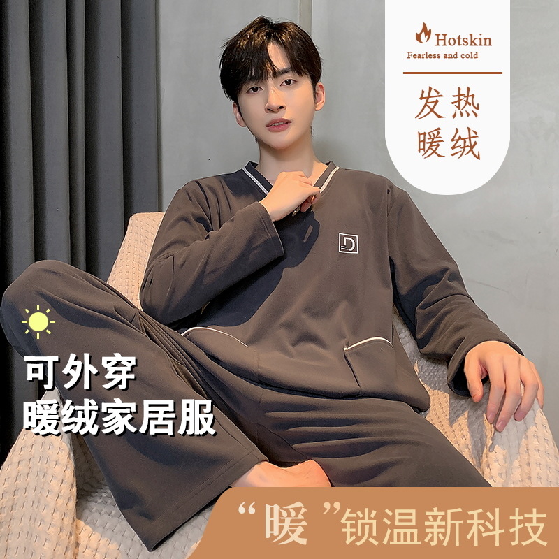 Yingzitong 가을 겨울 기모 두꺼운 벨벳 남성 잠옷 세트 한국 스타일 캐주얼 따뜻한 집 옷스토어 가기