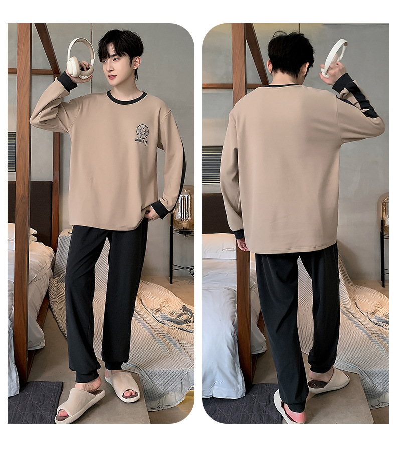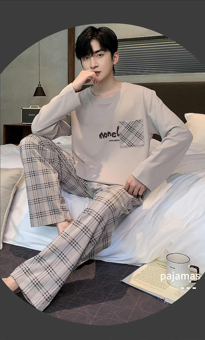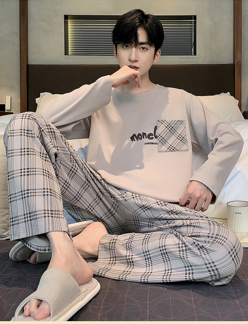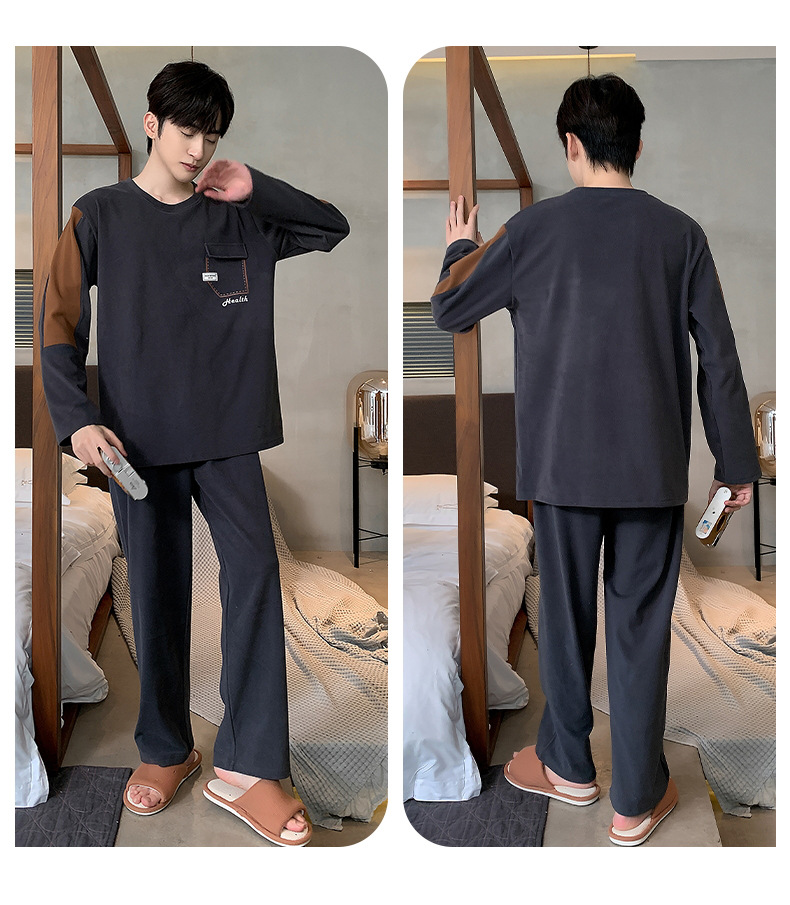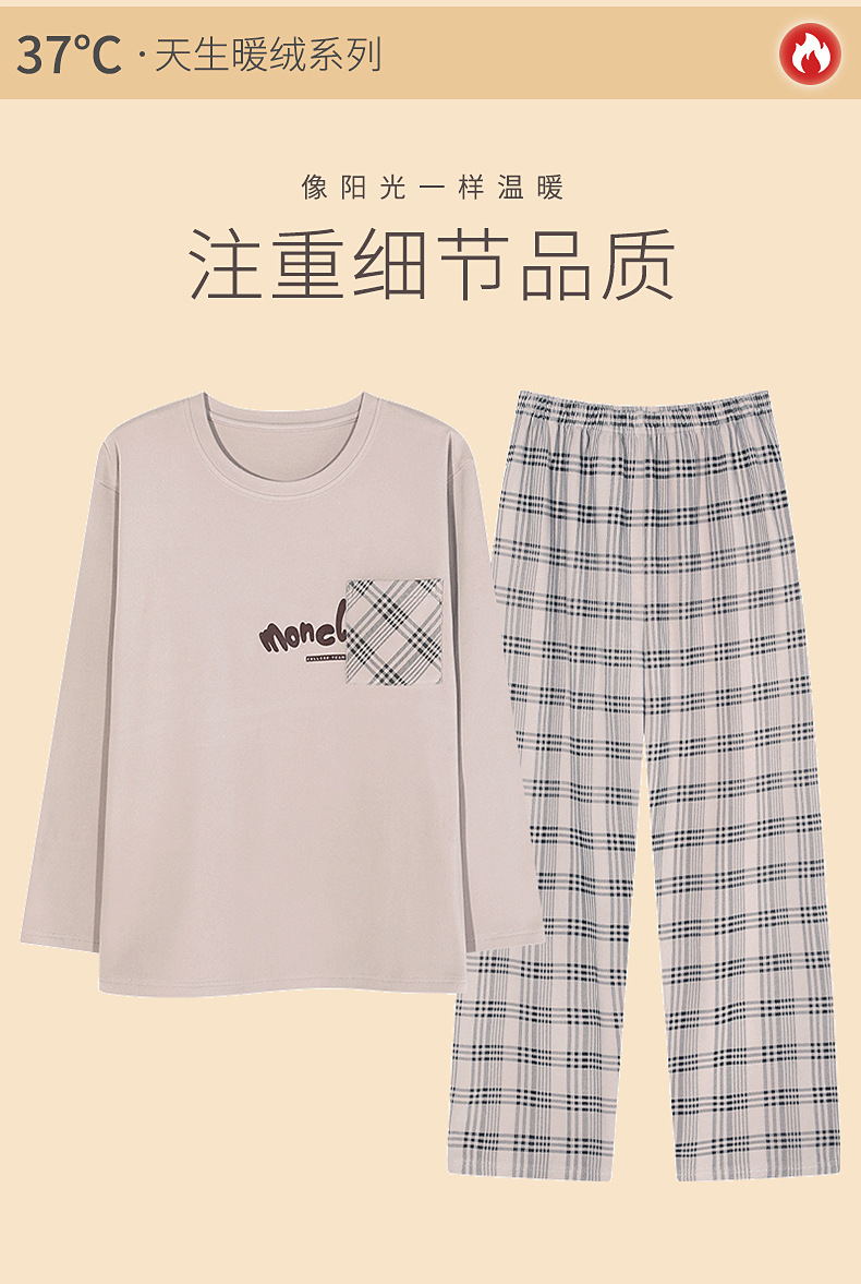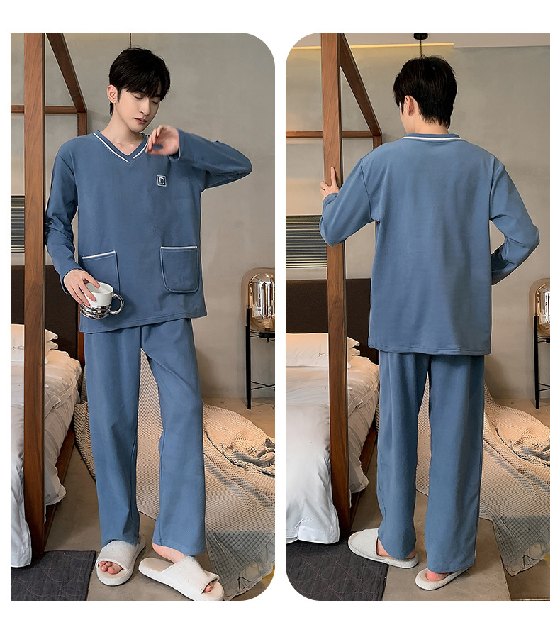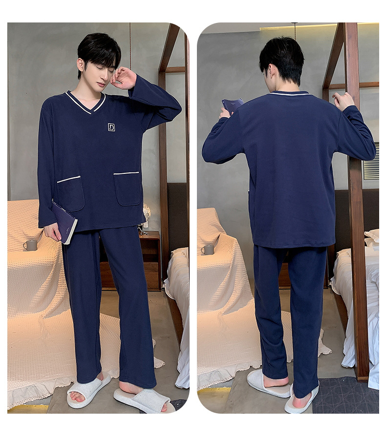 Yingzitong 가을 겨울 기모 두꺼운 벨벳 남성 잠옷 세트 한국 스타일 캐주얼 따뜻한 집 옷스토어 가기